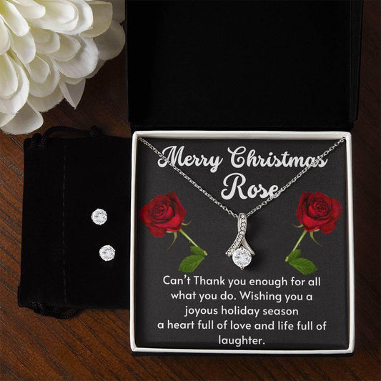 Personalized Merry Christmas Rose Alluring Beauty Necklace Set