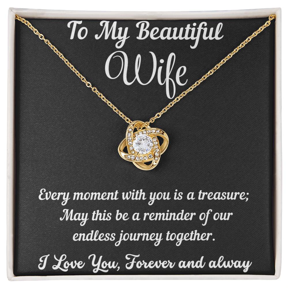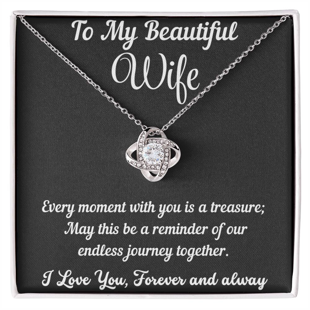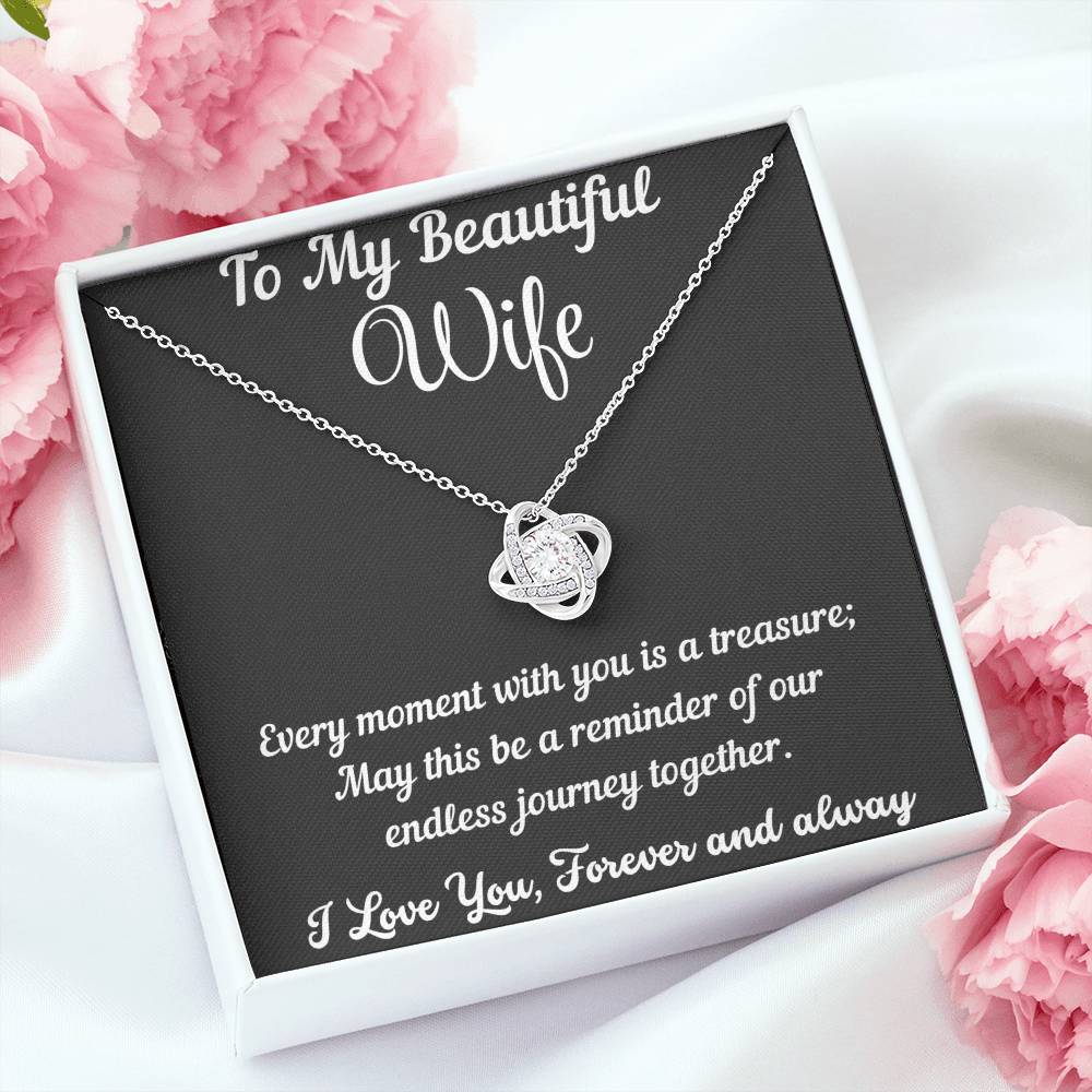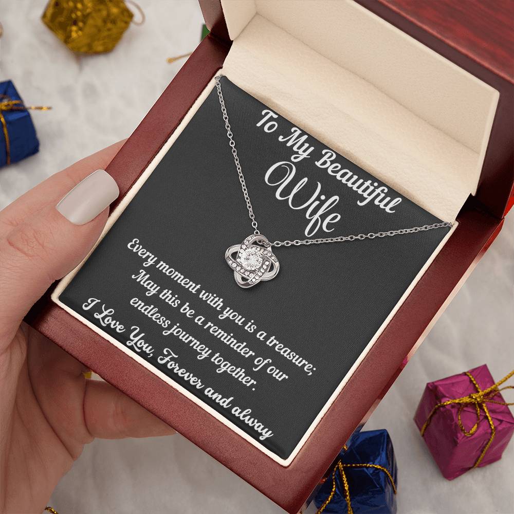 Imagine her reaction receiving this beautiful Love Knot Necklace. Representing an unbreakable bond between two souls, this piece features a beautiful pendant embellished with premium cubic zirconia crystals. Surprise your loved one with this gorgeous gift today!