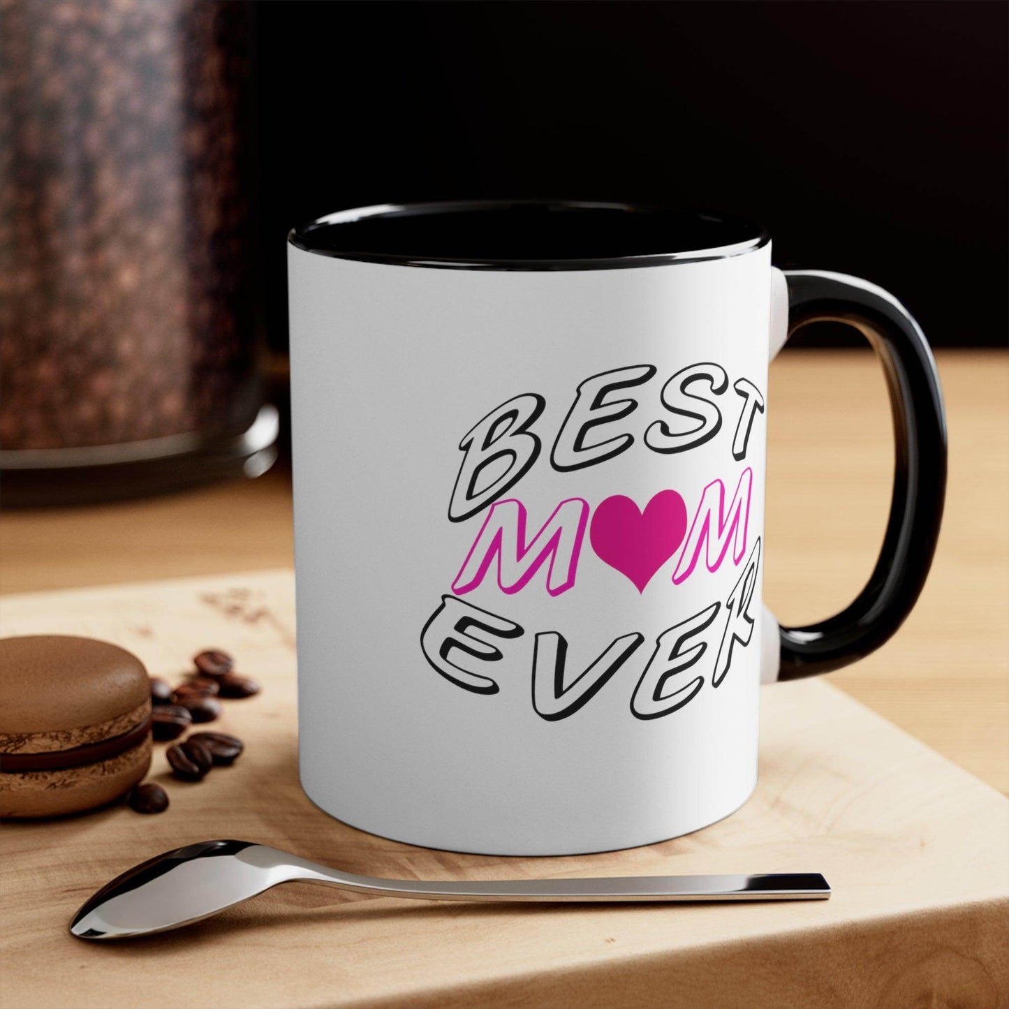 Best Mom Ever Accent Coffee Mug, 11oz, Add some color to your routine with this two-tone, custom accent coffee mug. This 11oz mug features an accented C-Handle that is comfortable to use, as well as an accented interior to add more contrast and character. With your design on this mug, you get an instant winner of a product.
