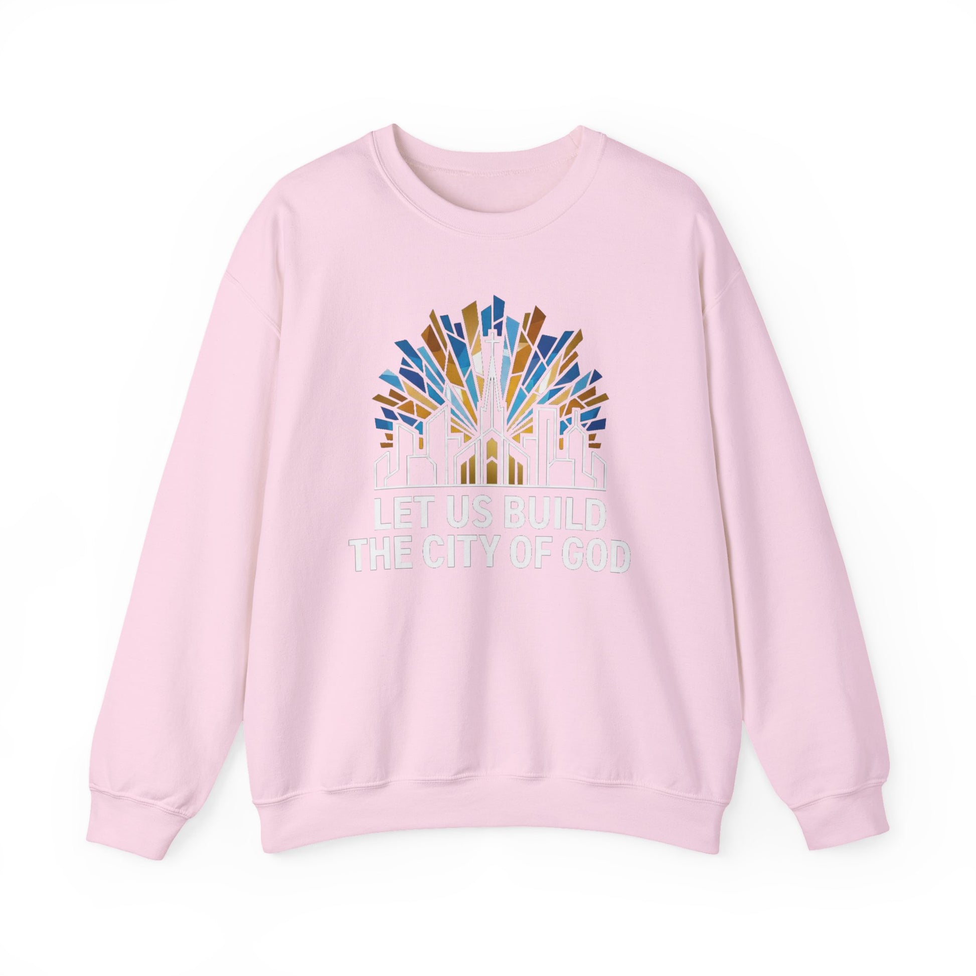 This crewneck sweatshirt carries a quiet, grounded message — Let Us Build the City of God — stitched with care to sit comfortably in everyday life. It feels substantial without being bulky: the medium-heavy cotton-poly blend holds shape, the ribbed collar and double-needle stitching stand up to repeated wear, and the tubular knit construction keeps lines clean. Choose embroidered placement on chest or wrists for a tactile, heirloom-like accent, or go with printed interior labels and wrist prints for a modern, low-profile touch. It settles into routines — morning coffee, evening neighborhood walks, community meetings — and becomes a subtle statement of faith and commitment rather than loud proclamation. For those who value durability, responsible sourcing, and thoughtful detail, this sweatshirt bridges reverence and real life.