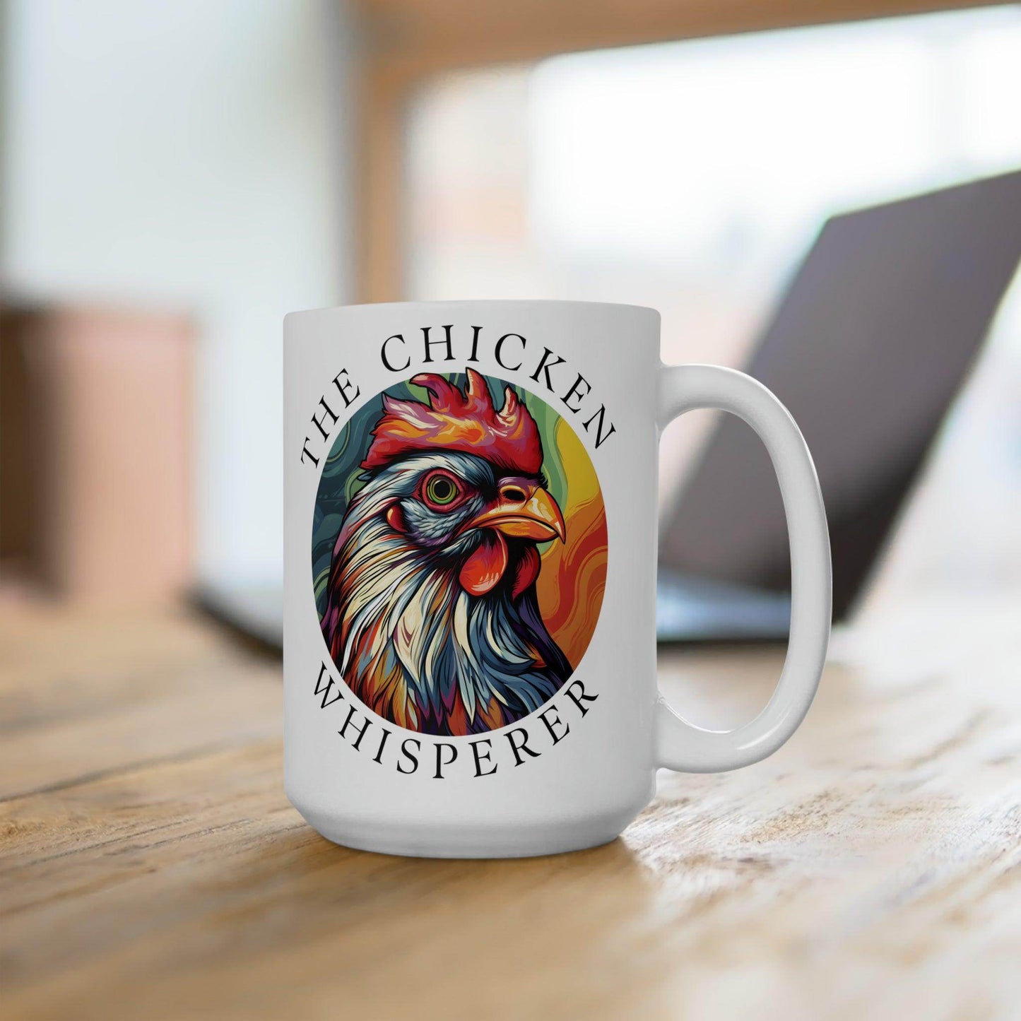 The Chicken Whisperer Mug This funny and unique mug is perfect for any chicken lover. It features a cartoon illustration of a chicken clucking, along with the text "The Chicken Whisperer". The mug is made of high-quality ceramic and is dishwasher and microwave safe. It's also available in a variety of colors to fit your personality. Whether you're a backyard chicken farmer, a poultry enthusiast, or just a fan of chickens in general, this mug is sure to make you smile. Every time you take a sip of your favorite beverage, you'll be reminded of your love of chickens. Features: Ceramic mug Dishwasher and microwave safe Funny and unique design Perfect for any chicken lover It’s microwave-safe, and can be washed in dishwasher or easily cleaned with a mild detergent. .: White ceramic .: 15 oz (0.44 l) .: Rounded corners .: C-handle .: Lead and BPA-free