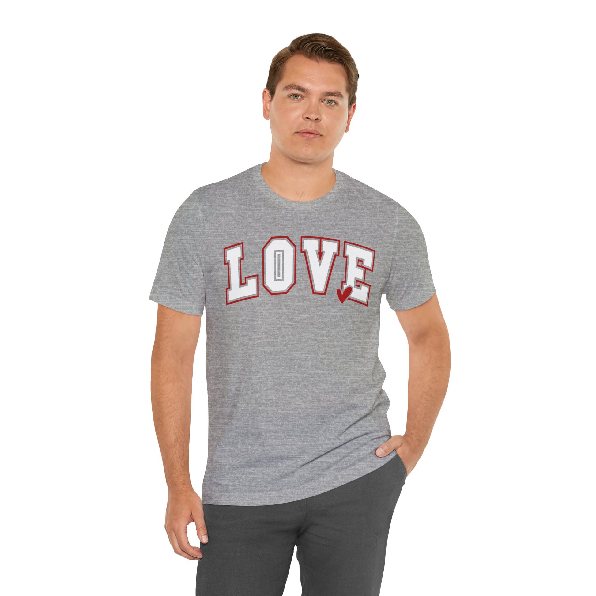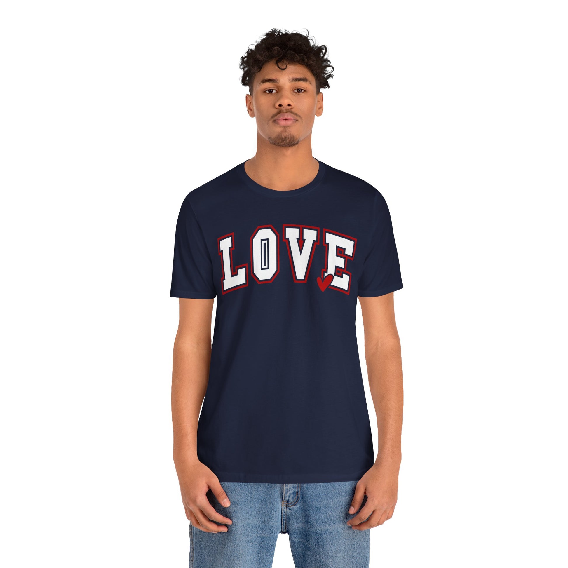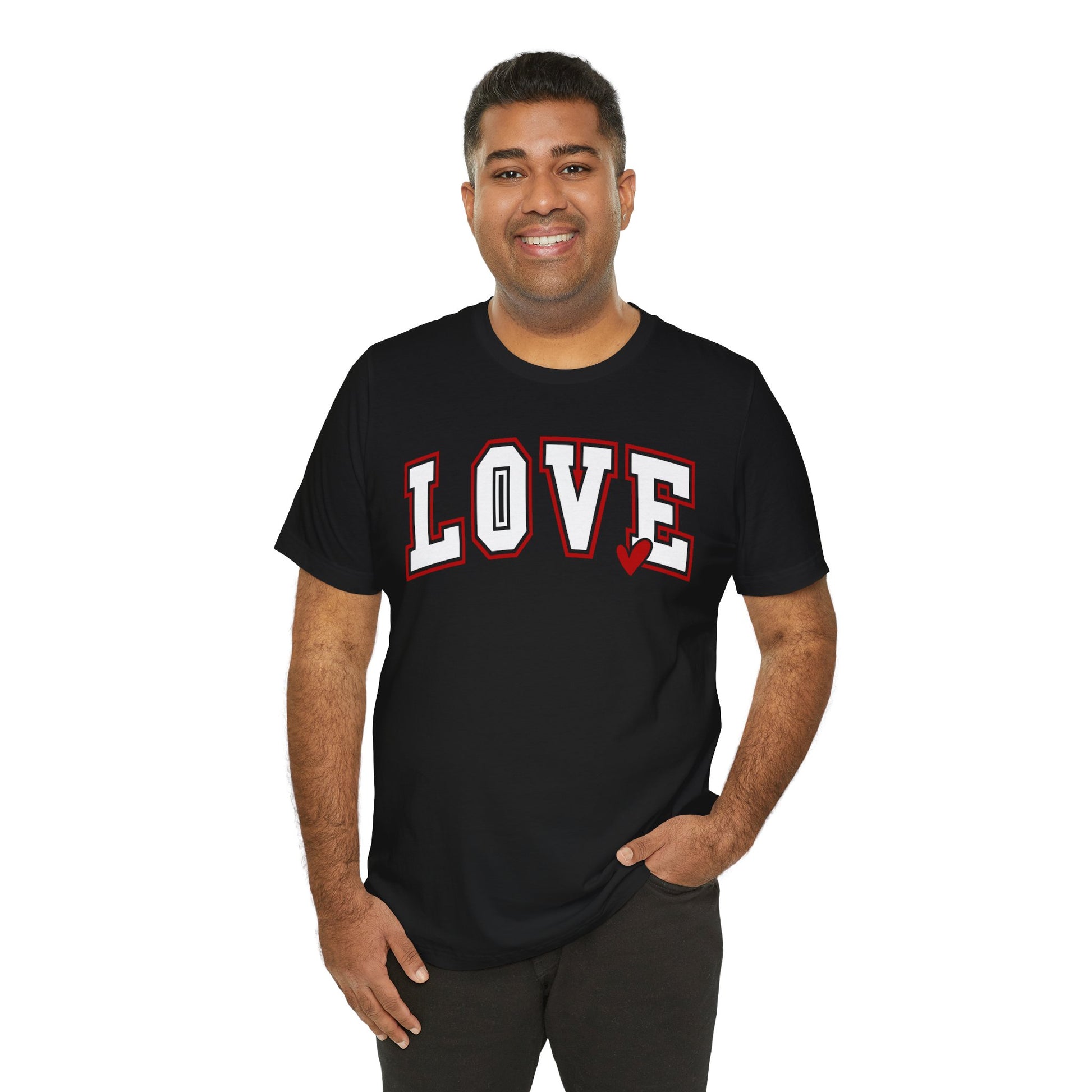 A love-themed t-shirt that exudes a romantic vibe, perfect for casual outings or lounging at home. Ideal for those looking to express affection or celebrate love during Valentine's Day, anniversaries, or date nights.
