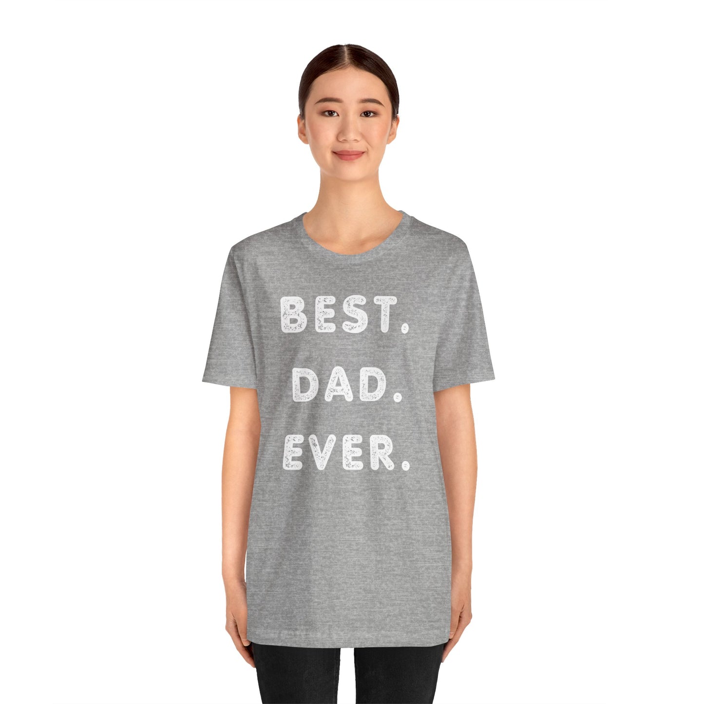 The "Best Dad Ever" shirt is the perfect gift for any occasion to celebrate the most important man in your life. This funny dad t-shirt features bold, black lettering against a white cotton background, making it a versatile addition to any wardrobe. Whether you're looking for a dad birthday gift, a funny fathers gift, or a gift for Father's Day, this dad shirt is sure to please. Show your appreciation for the man who has been there for you through thick and thin with this husband gift that he will wear with pride. This dad gift is sure to become a cherished memento for years to come.