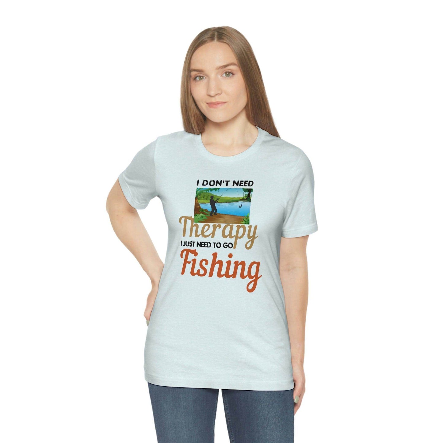 Fishing T-shirt dad shirt dad gift outdoor lover gift - fishing gift nature lover shirt I don't need therapy I just need to go Fishing shirt. This classic unisex jersey short sleeve tee fits like a well-loved favorite. Soft cotton and quality print make users fall in love with it over and over again. These t-shirts have-ribbed knit collars to bolster shaping. The shoulders have taping for better fit over time. Dual side seams hold the garment's shape for longer. .: 100% Airlume combed and ringspun cotton (fiber content may vary for different colors) .: Light fabric (4.2 oz/yd² (142 g/m²)) .: Retail fit .: Tear away label .: Runs true to size