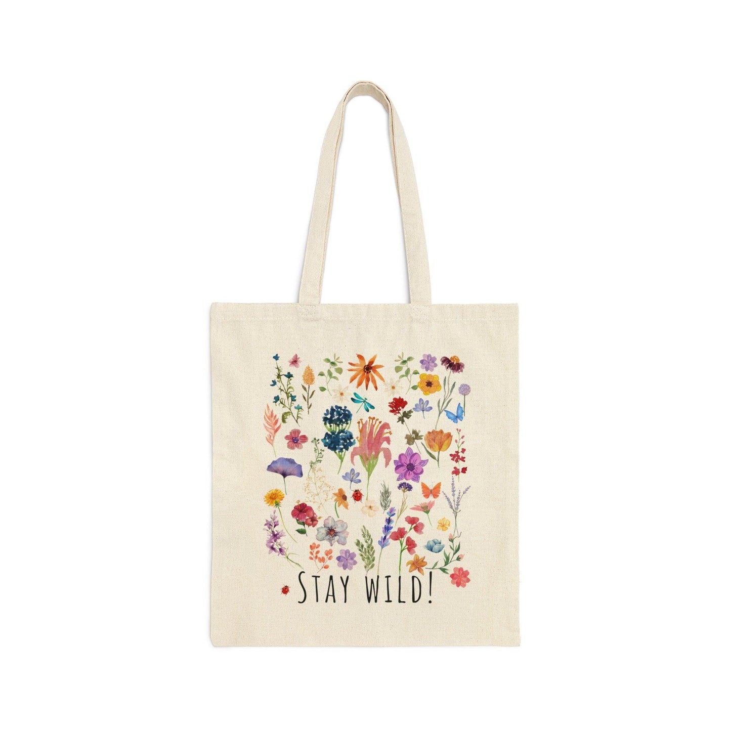 Floral Tote Bag Wildflower Totes Canvas Tote Bag Shopping Bag Gift For Women Totes Birthday Gift Bag Bridal Gift Tote Bag Library Bag