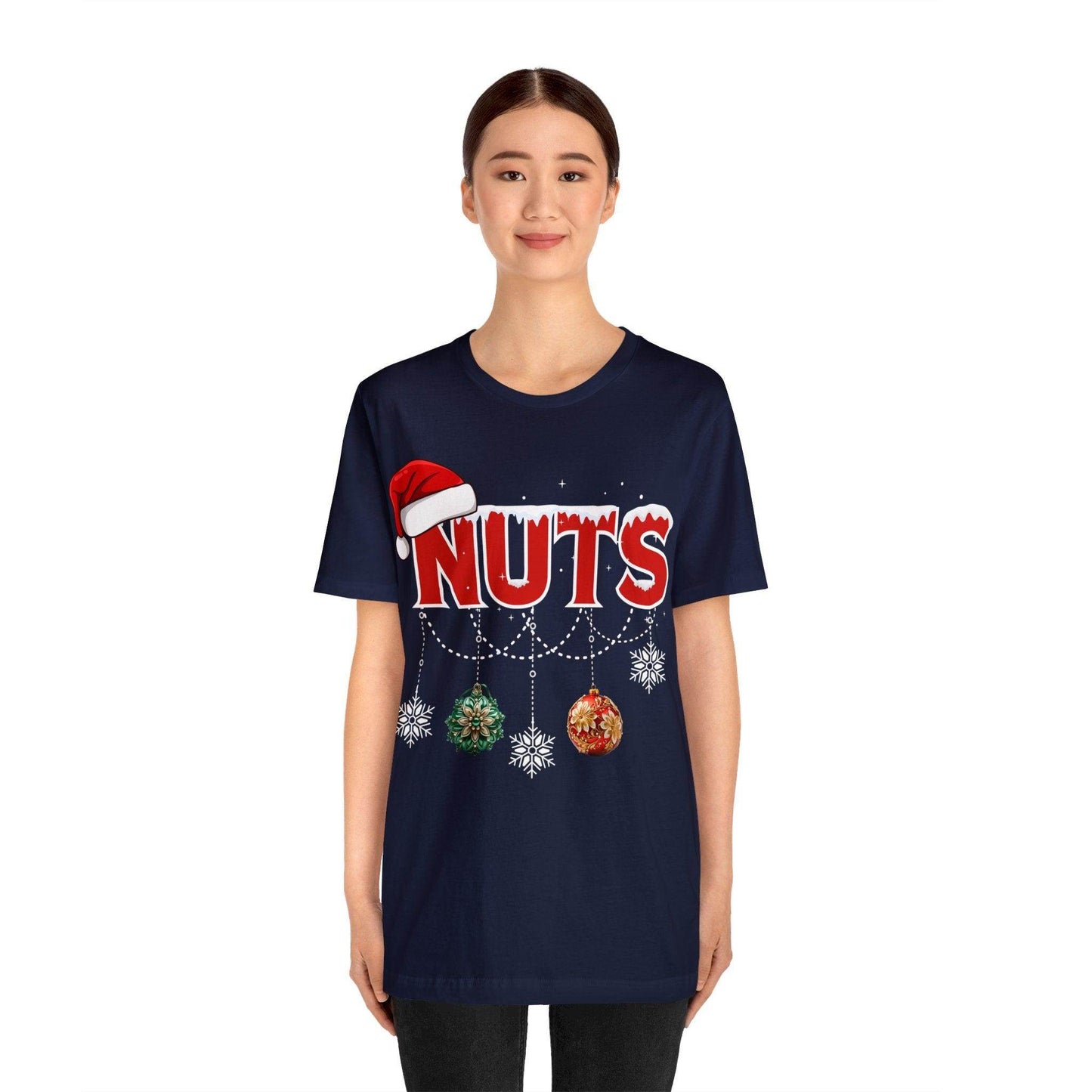 "Chest Nuts" guarantees a laugh with every wear. This cleverly designed shirt adds humor and charm to your holiday wardrobe, making it a conversation starter at any Christmas gathering.