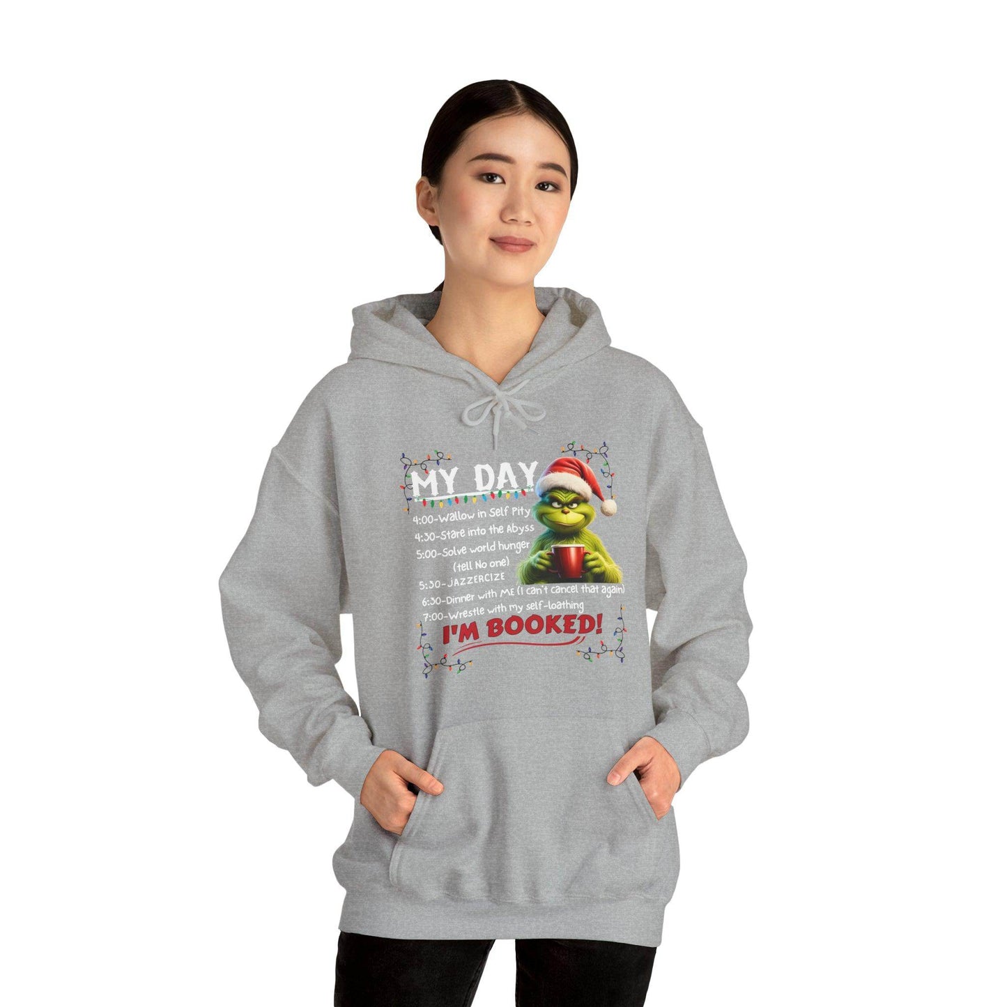 Funny Grinch Hooded Sweatshirt My Day Schedule I'M Booked Sweatshirt Christmas Sweater