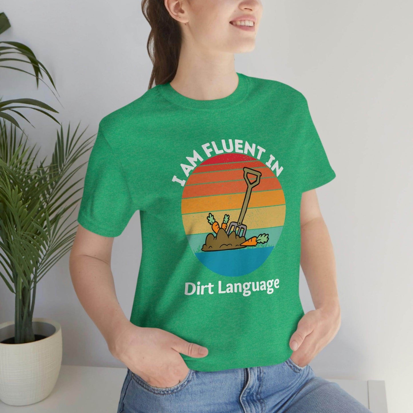 I am fluent in dirt language, Gardener Shirt, Plant Lover Shirt, Gardener Gift, Garden Shirt, Looking for the perfect t-shirt to wear while tending to your garden or doing other Daily activities? Look no further than our gorgeous garden t-shirt!