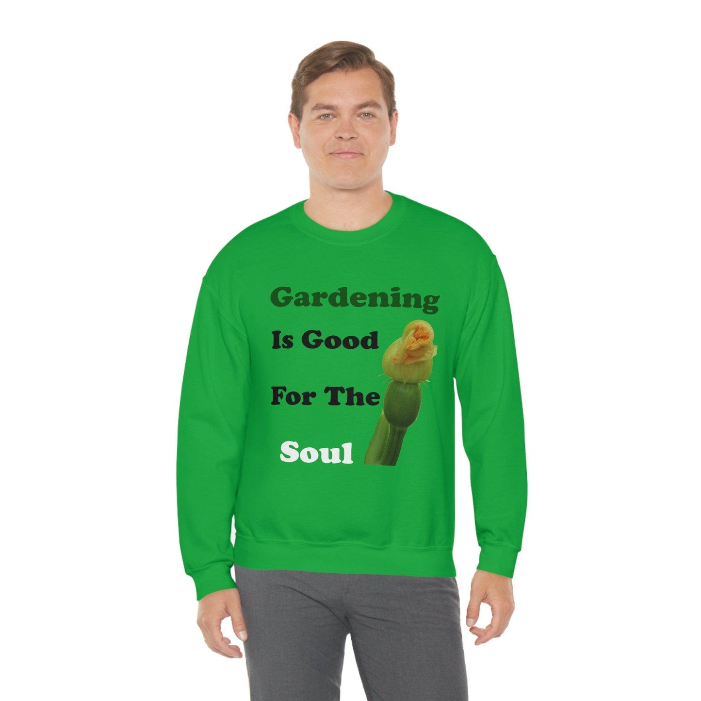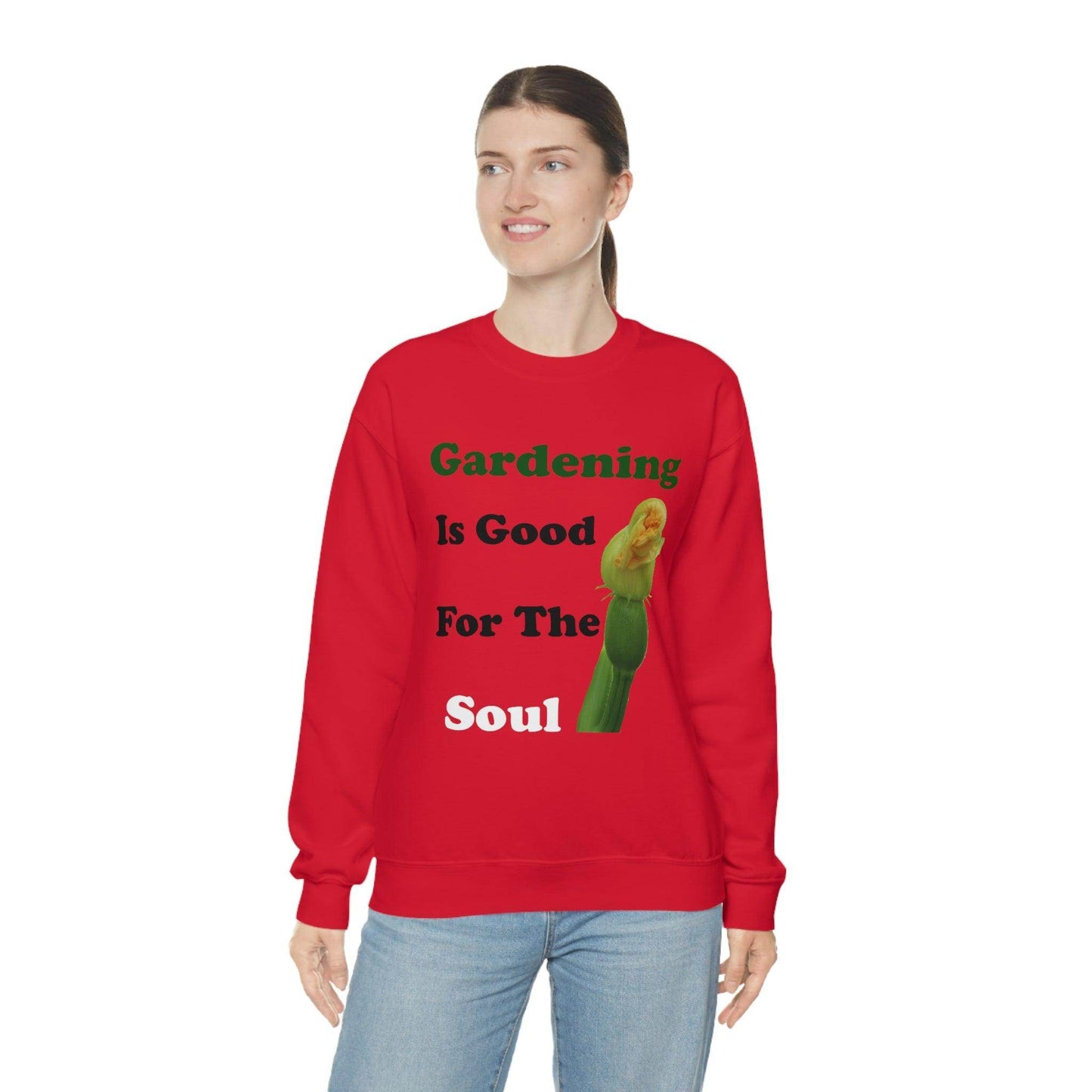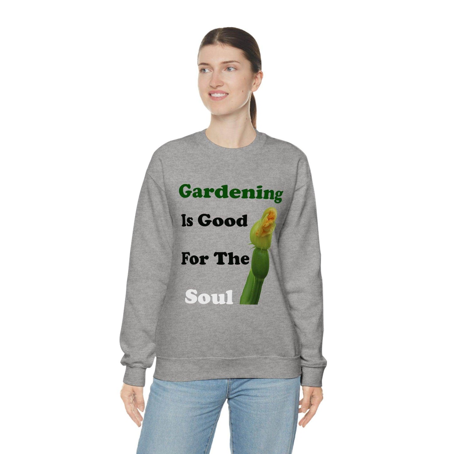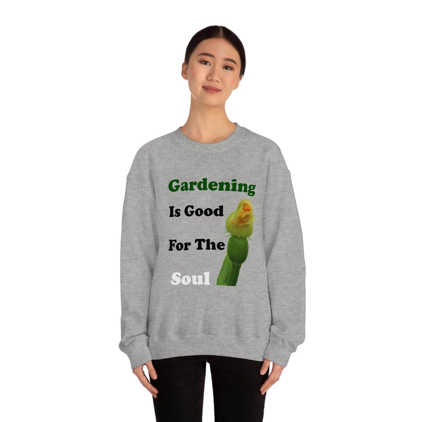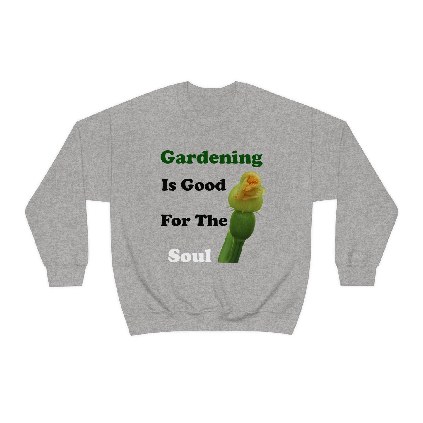 Gardening is good for the soul, Ideal for any situation, a unisex heavy blend crewneck sweatshirt is pure comfort. These garments are made from polyester and cotton. This combination helps designs come out looking fresh and beautiful. The collar is ribbed knit, so it retains its shape even after washing. There are no itchy side seams on these sweaters.