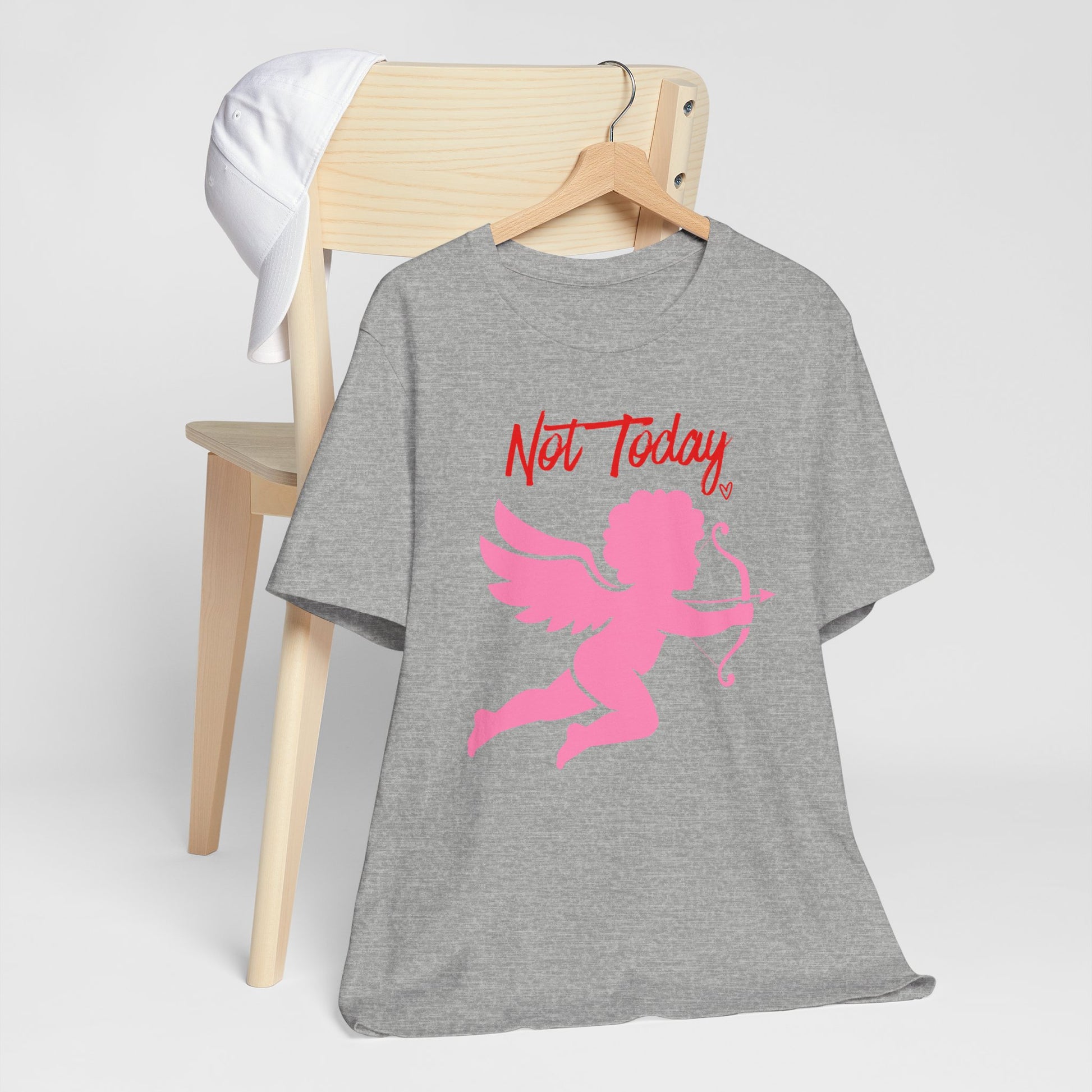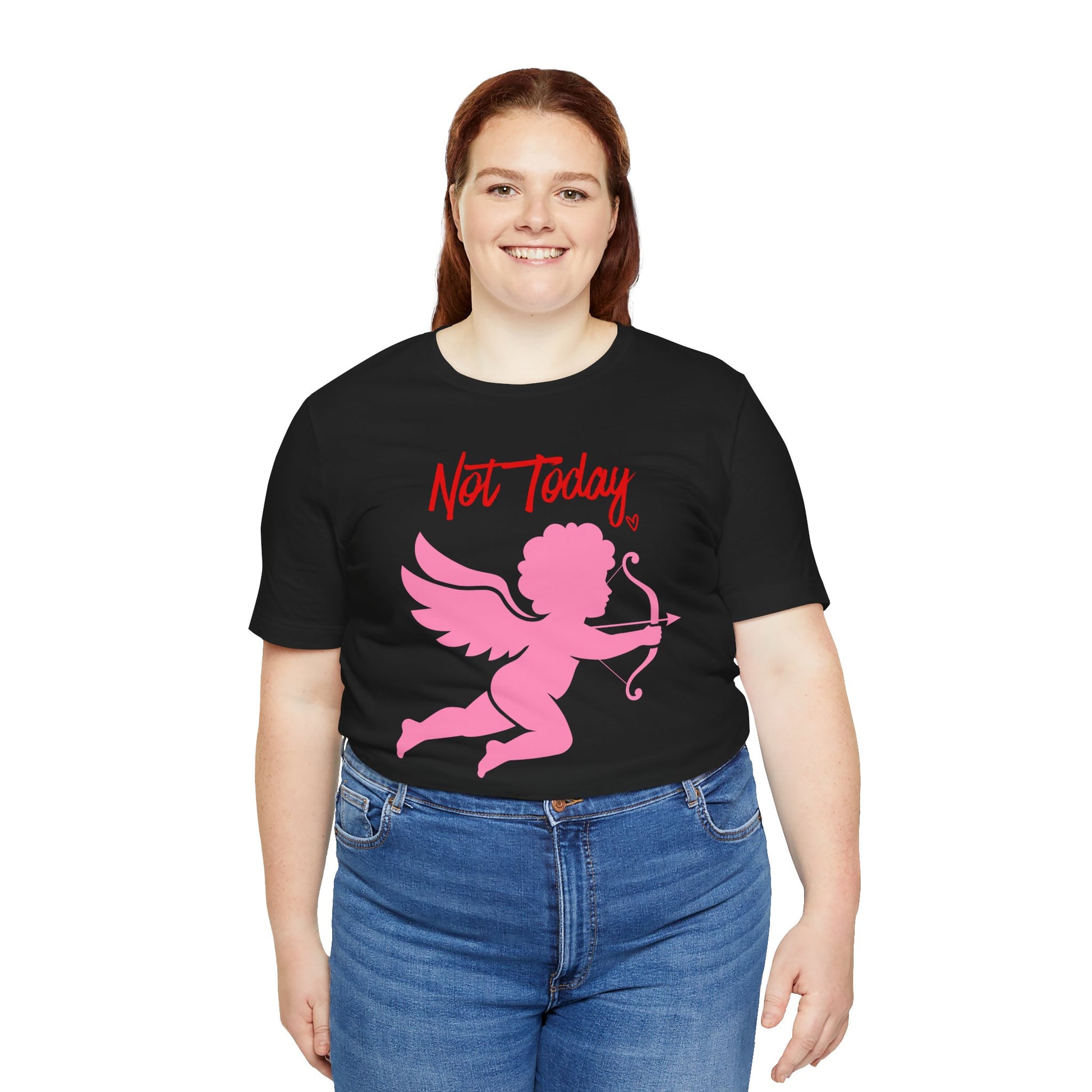 A fun and sassy T-Shirt with the design 'Not Today Cupid', perfect for those who want to show off their sense of humor and attitude. This tee is great for casual wear or as a statement piece for special occasions like Valentine's Day.