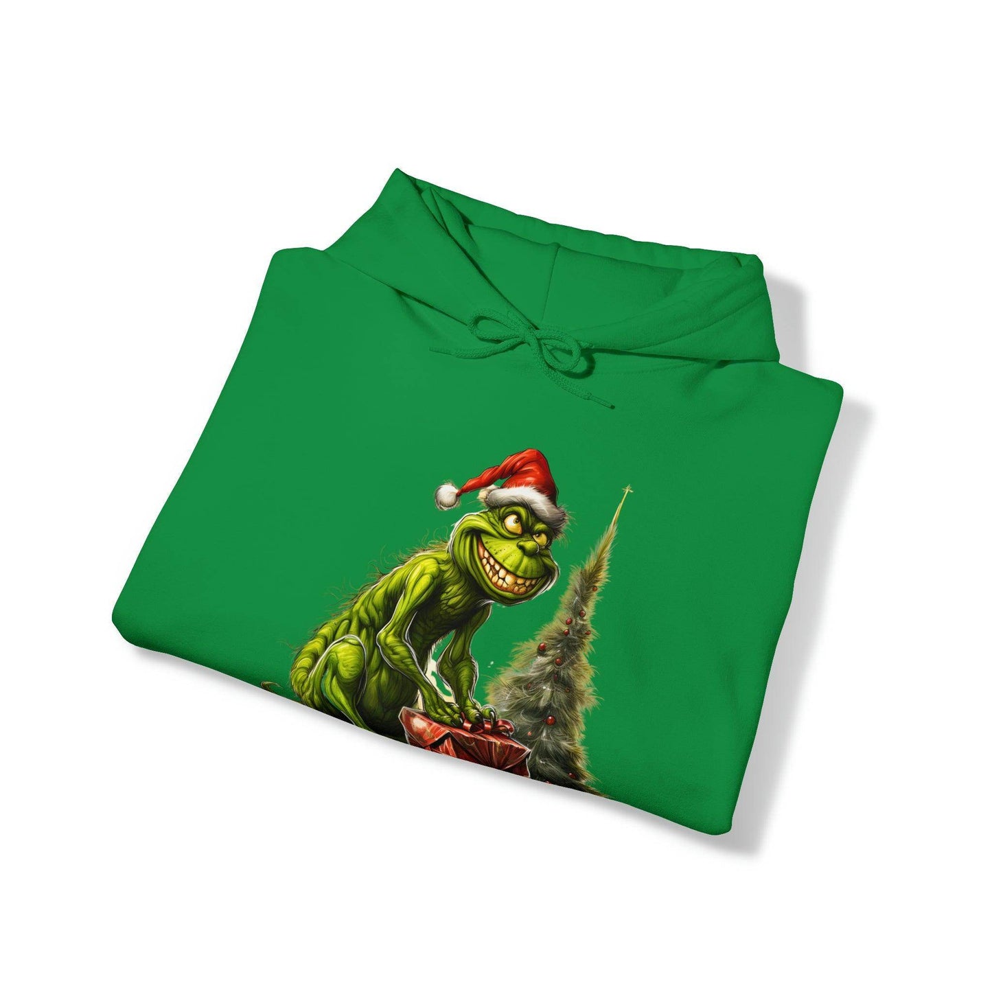 In summary, the "Grinch Hooded Sweatshirt" is more than just clothing; it's a cozy and playful way to celebrate the humorous side of the holiday season, bringing joy, charm, and fashion to your celebrations. Join those who have already chosen this sweatshirt and create memorable moments of Grinch-inspired merriment and style.This unisex heavy blend hooded sweatshirt is relaxation itself. Made with a thick blend of cotton and polyester, it feels plush, soft and warm, a perfect choice for any cold day. In the front, the spacious kangaroo pocket adds daily practicality while the hood's drawstring is the same color as the base sweater for extra style points.