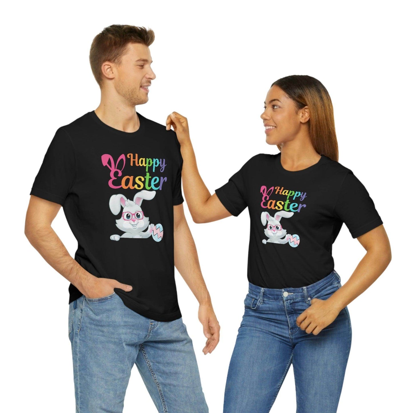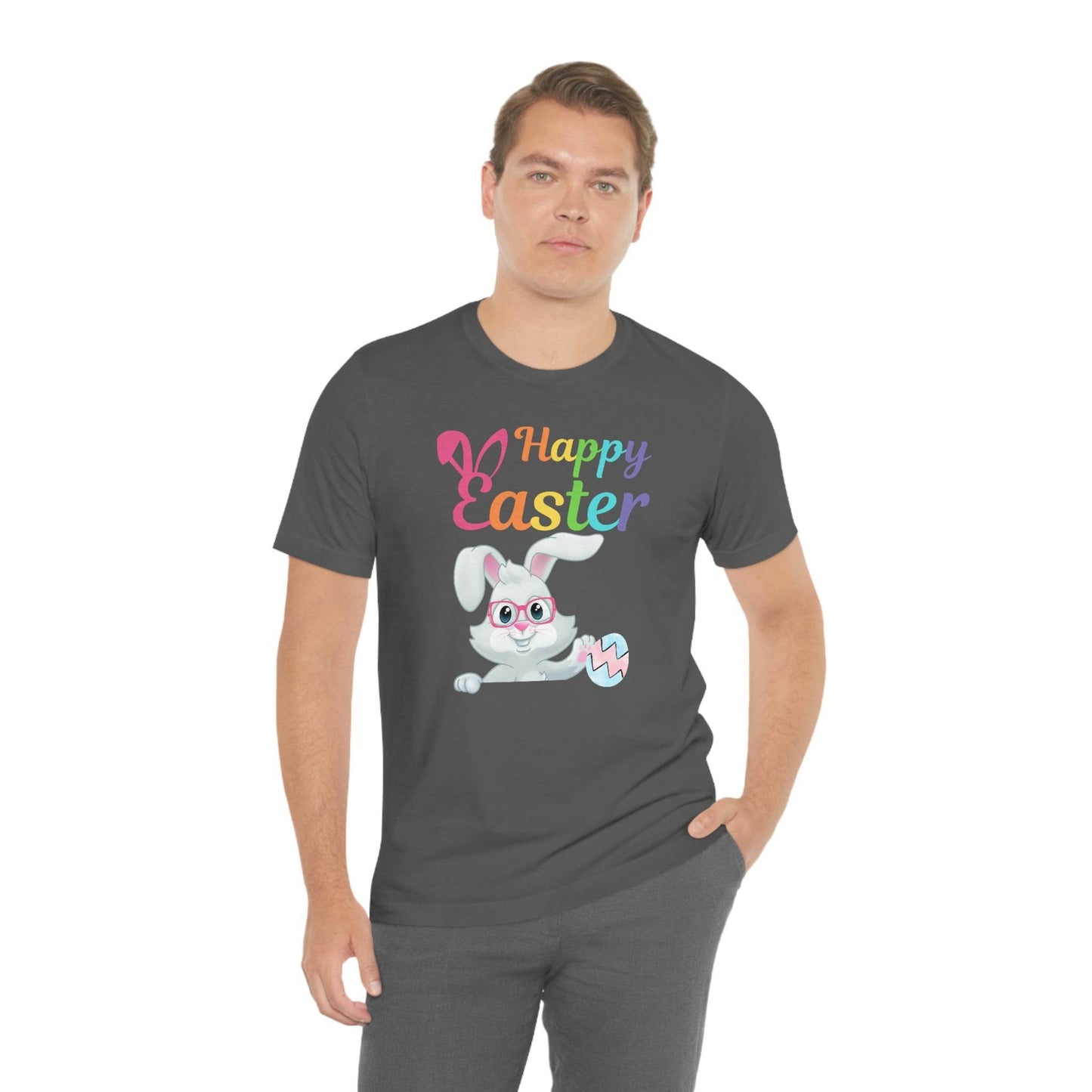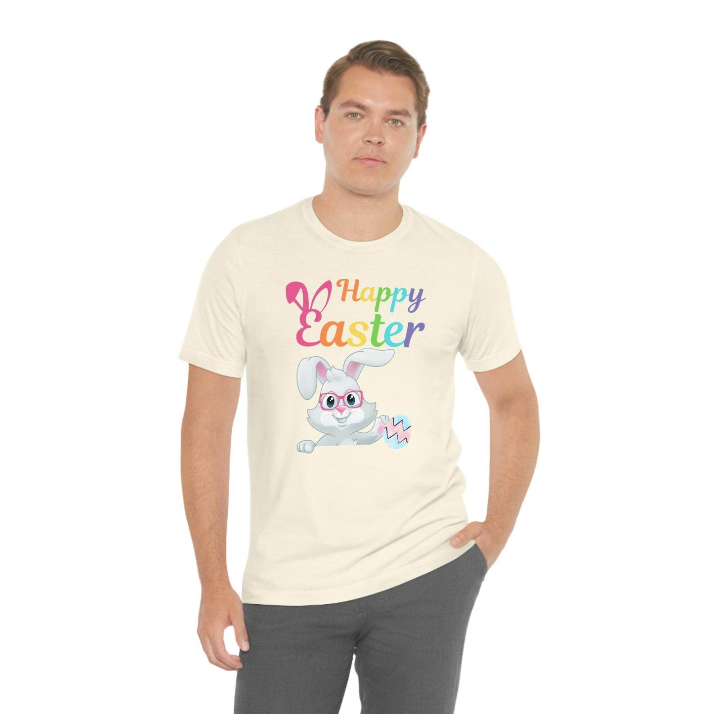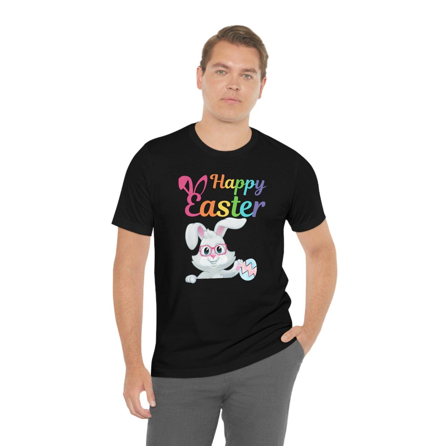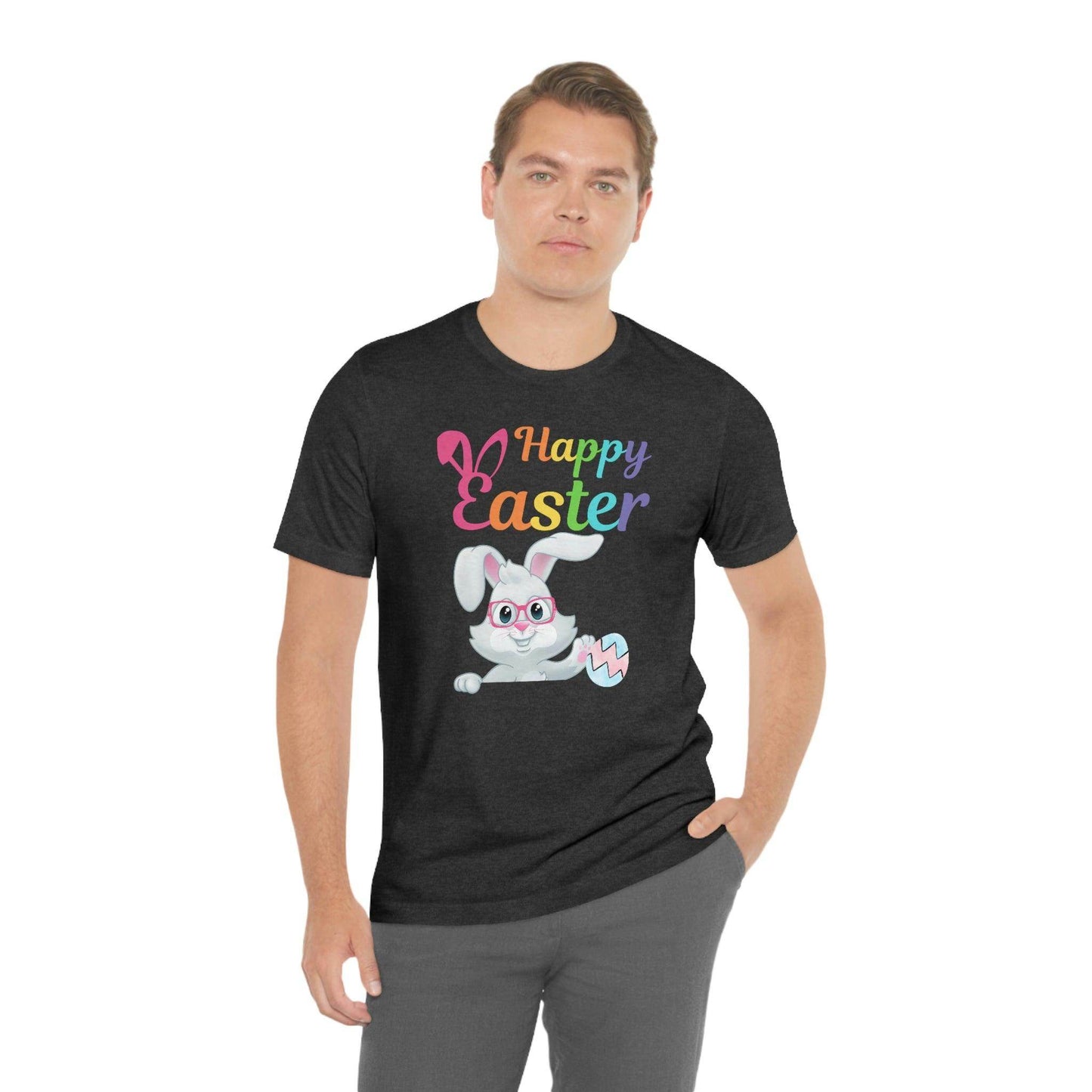 Looking for a great outfit for the Easter egg hunt or for the family Easter brunch? Wear this adorable Easter Bunny Shirt for Women and Men and celebrate Easter day in style! Happy Easter Bunny shirt Easter Gift for women and men - Easter Bunny Shirt, This Easter unisex jersey short sleeve tee fits like a well-loved favorite. Soft cotton and quality print make users fall in love with it over and over again.These t-shirts have-ribbed knit collars to bolster shaping. The shoulders have taping for better fit over time. Dual side seams hold the garment's shape for longer. .: 100% Airlume combed and ringspun cotton (fiber content may vary for different colors) .: Light fabric (4.2 oz/yd² (142 g/m²)) .: Retail fit .: Tear away label .: Runs true to size