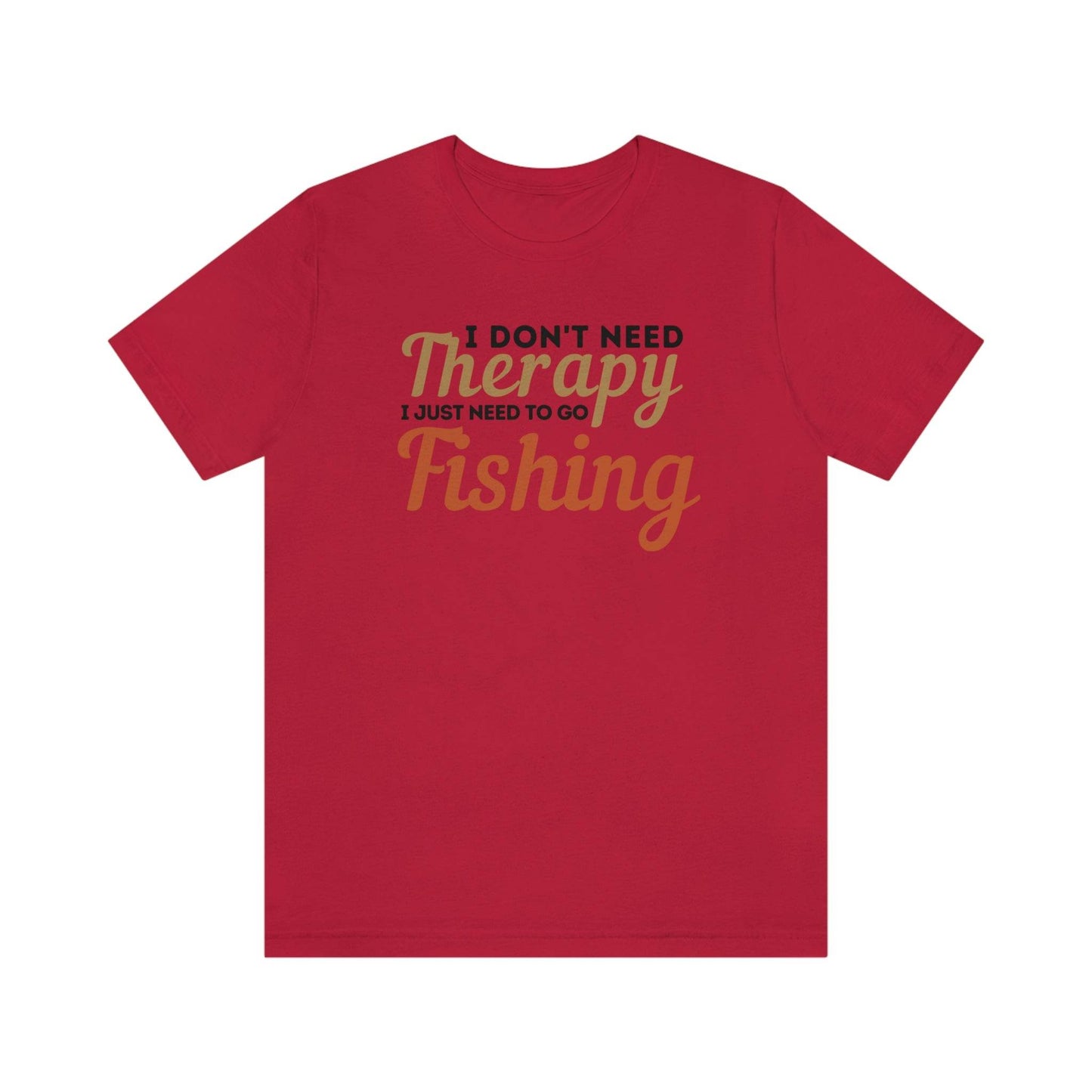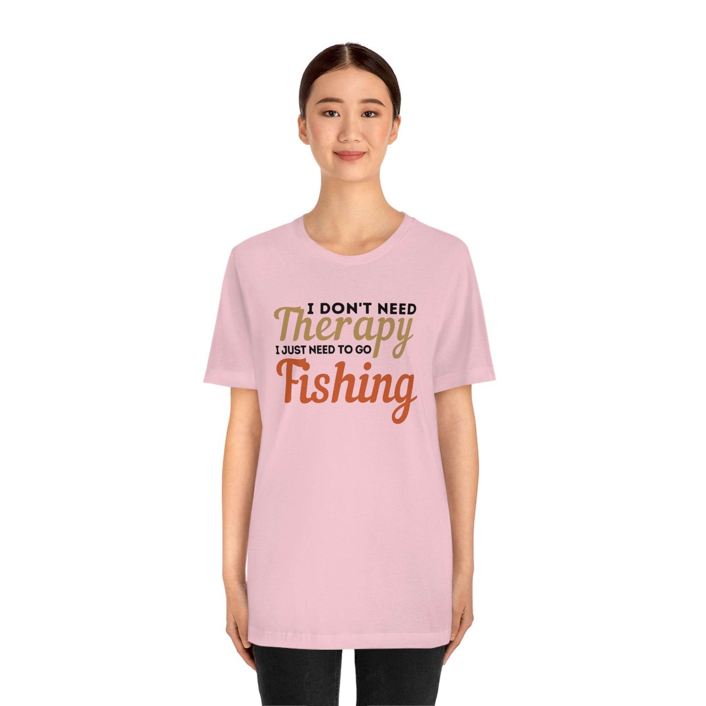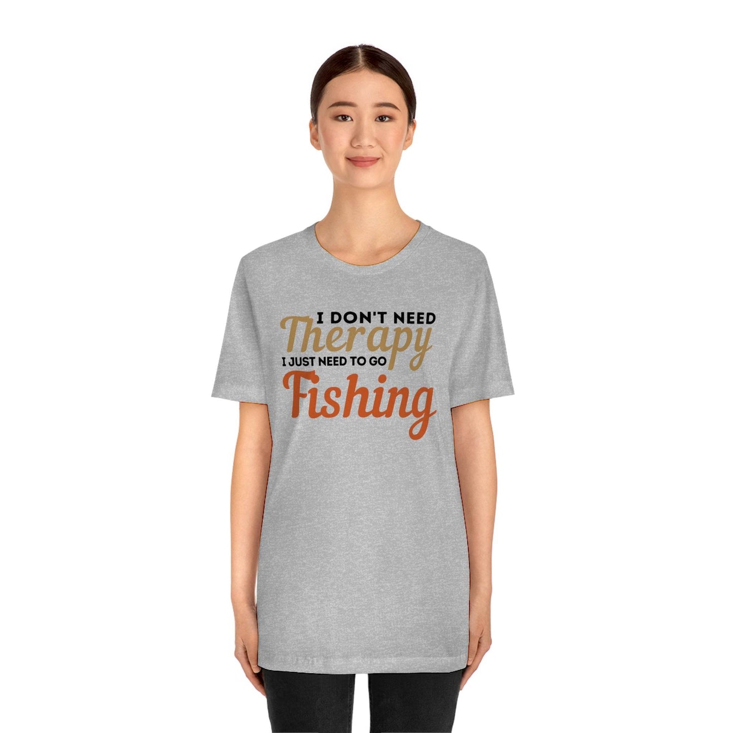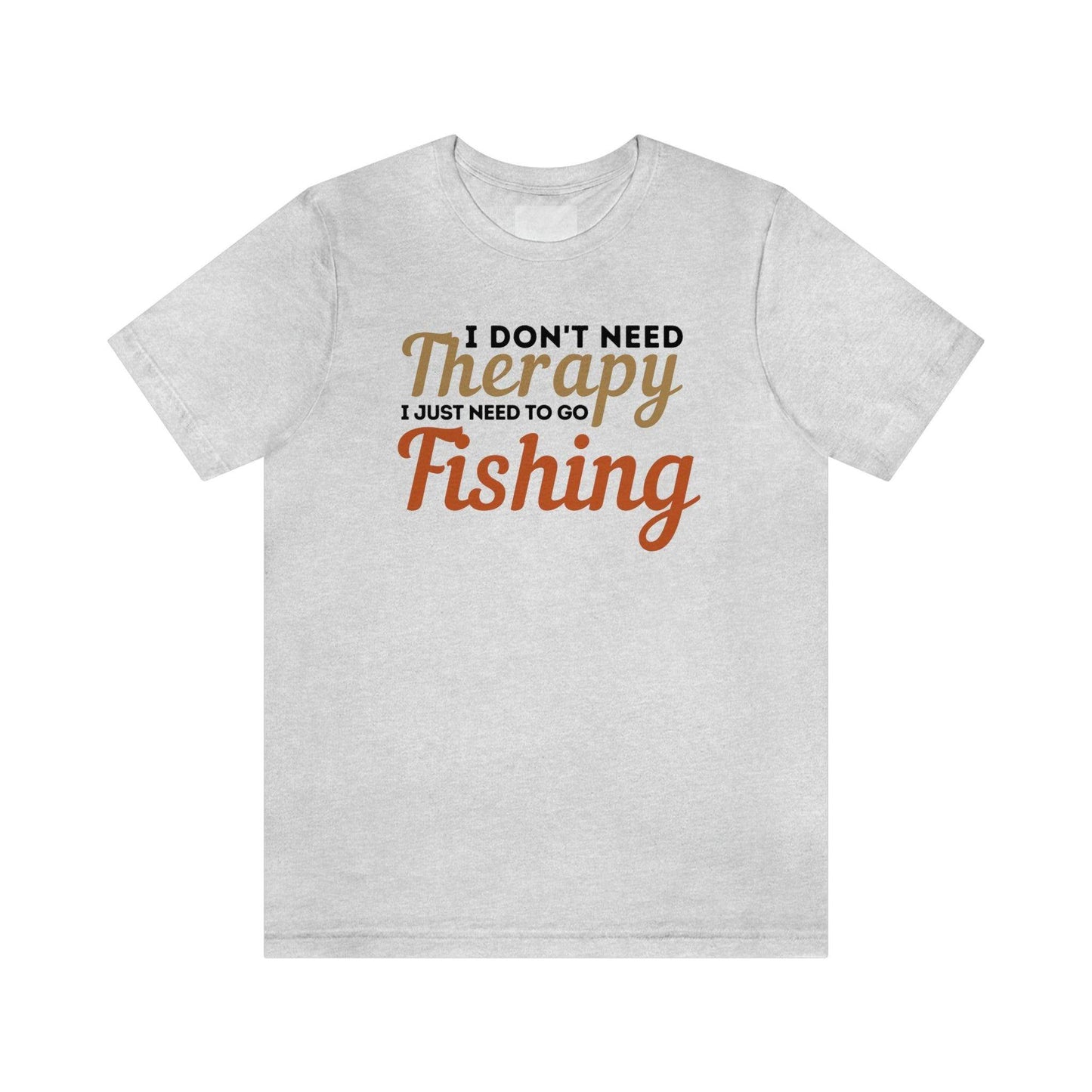 I don't need therapy I just need to go Fishing. This classic unisex jersey short sleeve tee fits like a well-loved favorite. Soft cotton and quality print make users fall in love with it over and over again. These t-shirts have-ribbed knit collars to bolster shaping. The shoulders have taping for better fit over time. Dual side seams hold the garment's shape for longer.