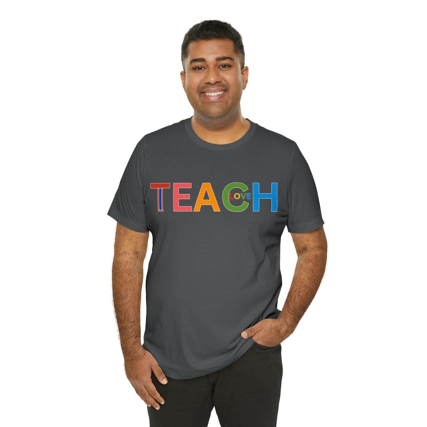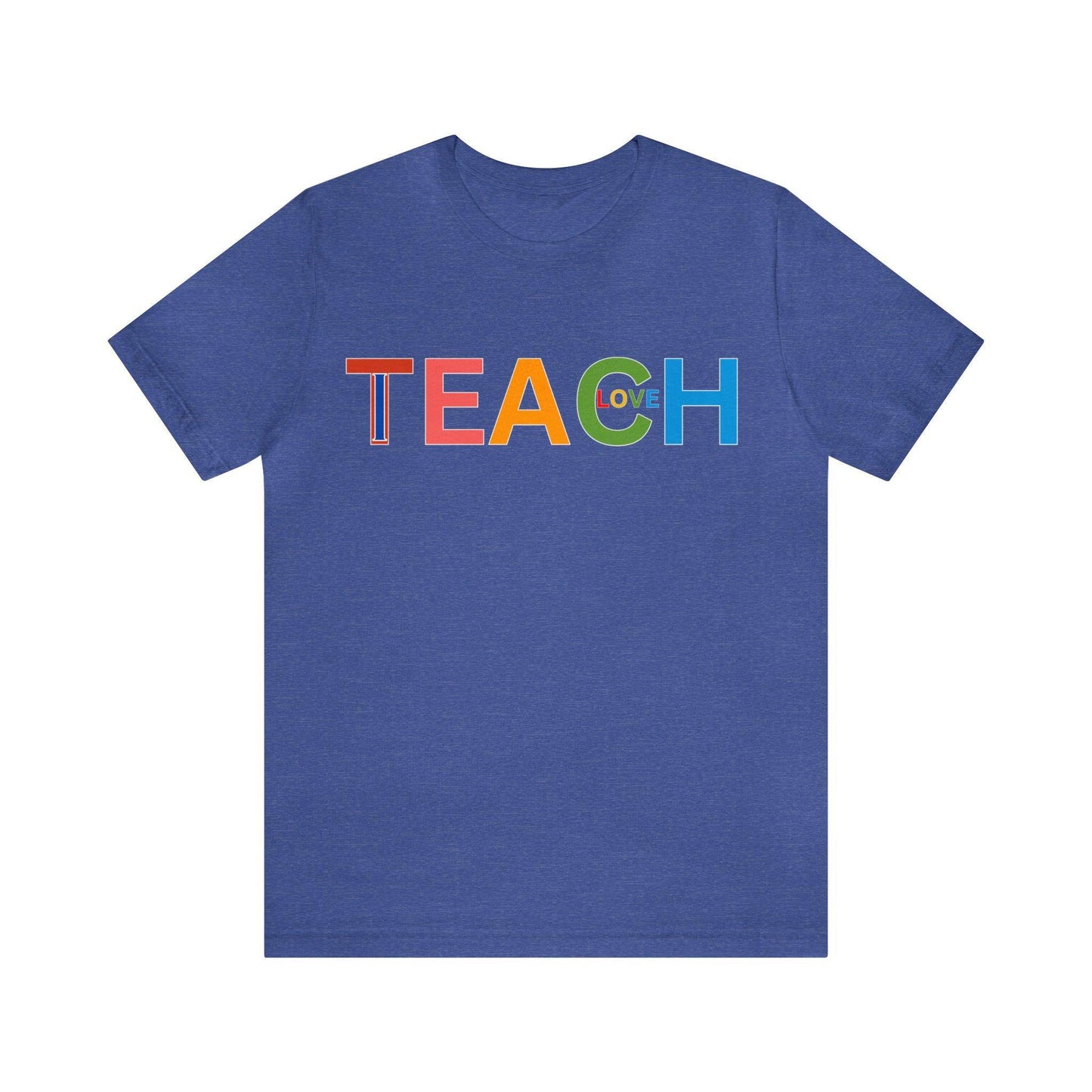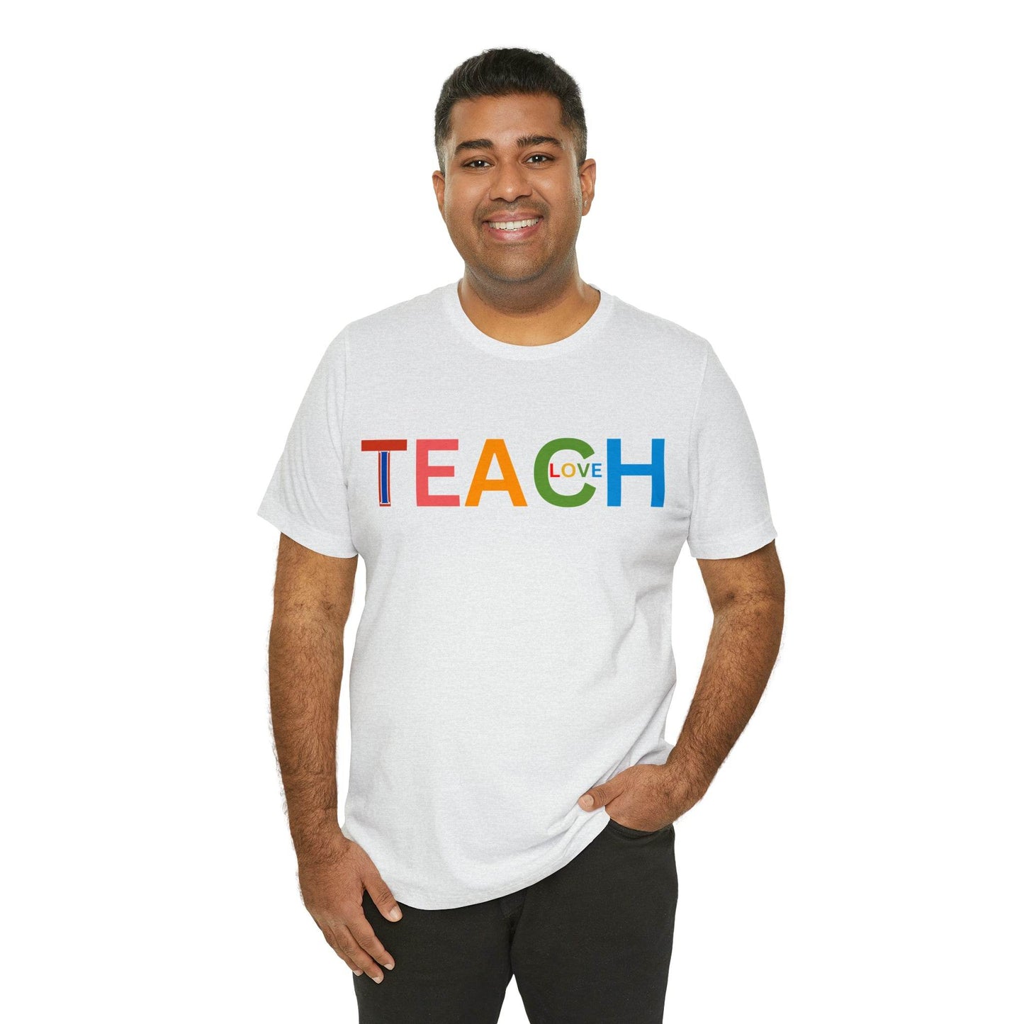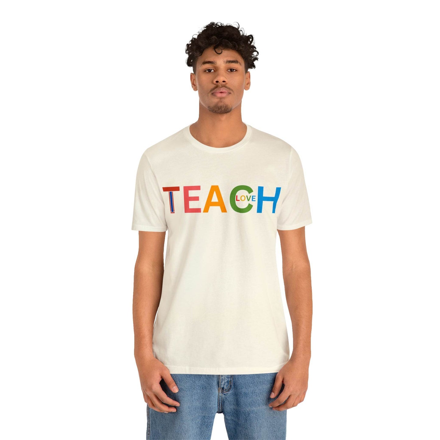 Wearing the "I Teach Love" shirt isn't just about personal style; it's about influencing lives. Each time you put it on, you're telling the world that you're not just teaching subjects, you're teaching love, empathy, and understanding. This shirt becomes a conversation starter, opening doors to discussions about the profound impact educators have on society. It's a statement that transcends fashion, leaving an indelible mark on hearts and minds.These t-shirts have-ribbed knit collars to bolster shaping. The shoulders have taping for better fit over time. Dual side seams hold the garment's shape for longer. .: 100% Airlume combed and ringspun cotton (fiber content may vary for different colors) .: Light fabric (4.2 oz/yd² (142 g/m²)) .: Retail fit .: Tear away label .: Runs true to size