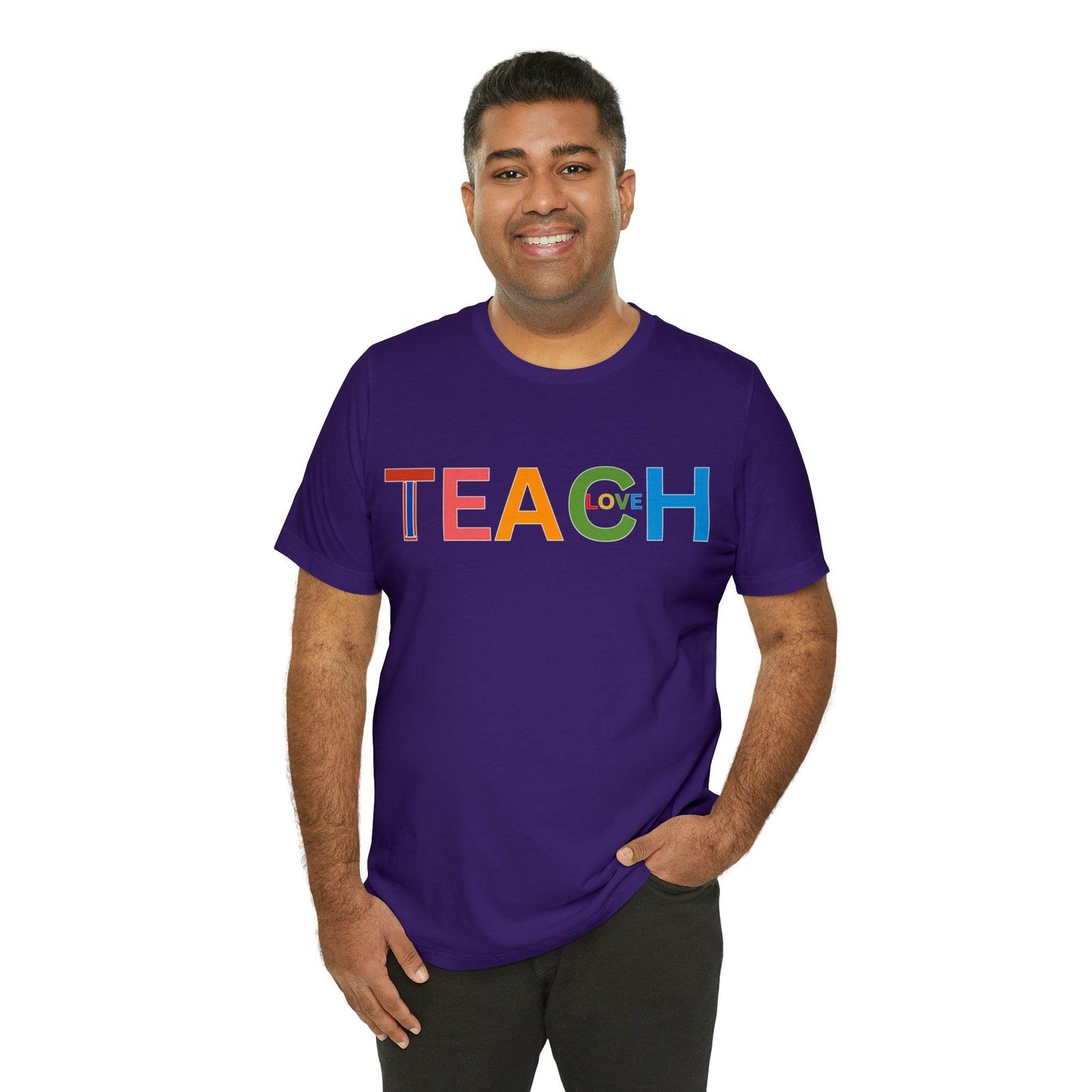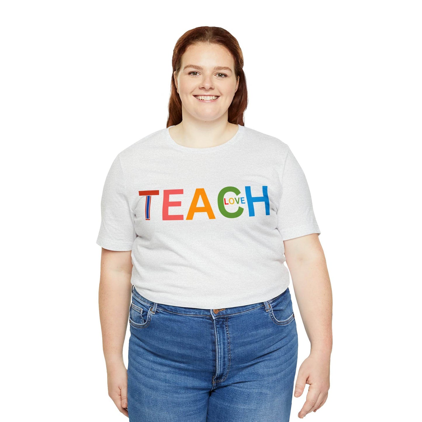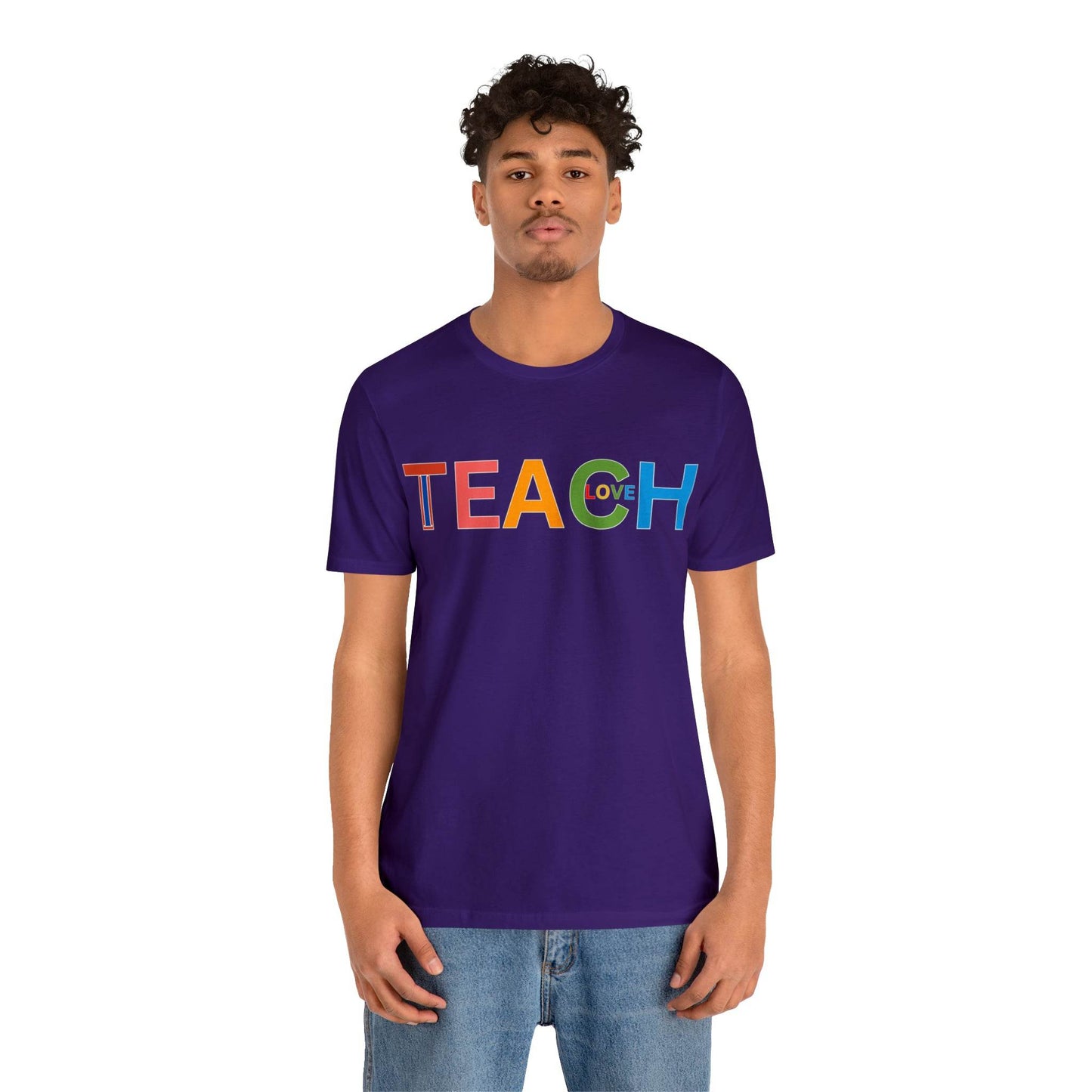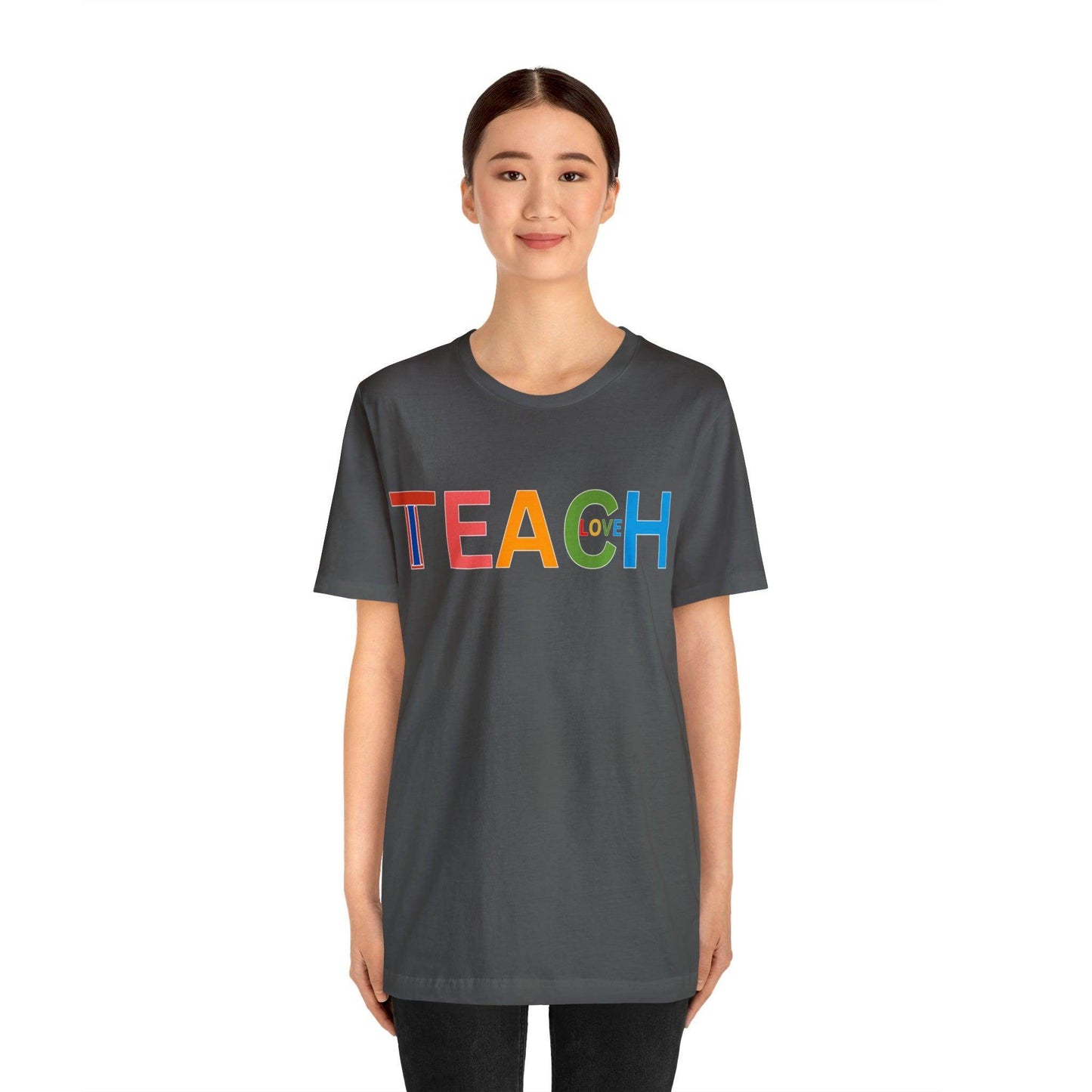 Wearing the "I Teach Love" shirt isn't just about personal style; it's about influencing lives. Each time you put it on, you're telling the world that you're not just teaching subjects, you're teaching love, empathy, and understanding. This shirt becomes a conversation starter, opening doors to discussions about the profound impact educators have on society. It's a statement that transcends fashion, leaving an indelible mark on hearts and minds.These t-shirts have-ribbed knit collars to bolster shaping. The shoulders have taping for better fit over time. Dual side seams hold the garment's shape for longer. .: 100% Airlume combed and ringspun cotton (fiber content may vary for different colors) .: Light fabric (4.2 oz/yd² (142 g/m²)) .: Retail fit .: Tear away label .: Runs true to size