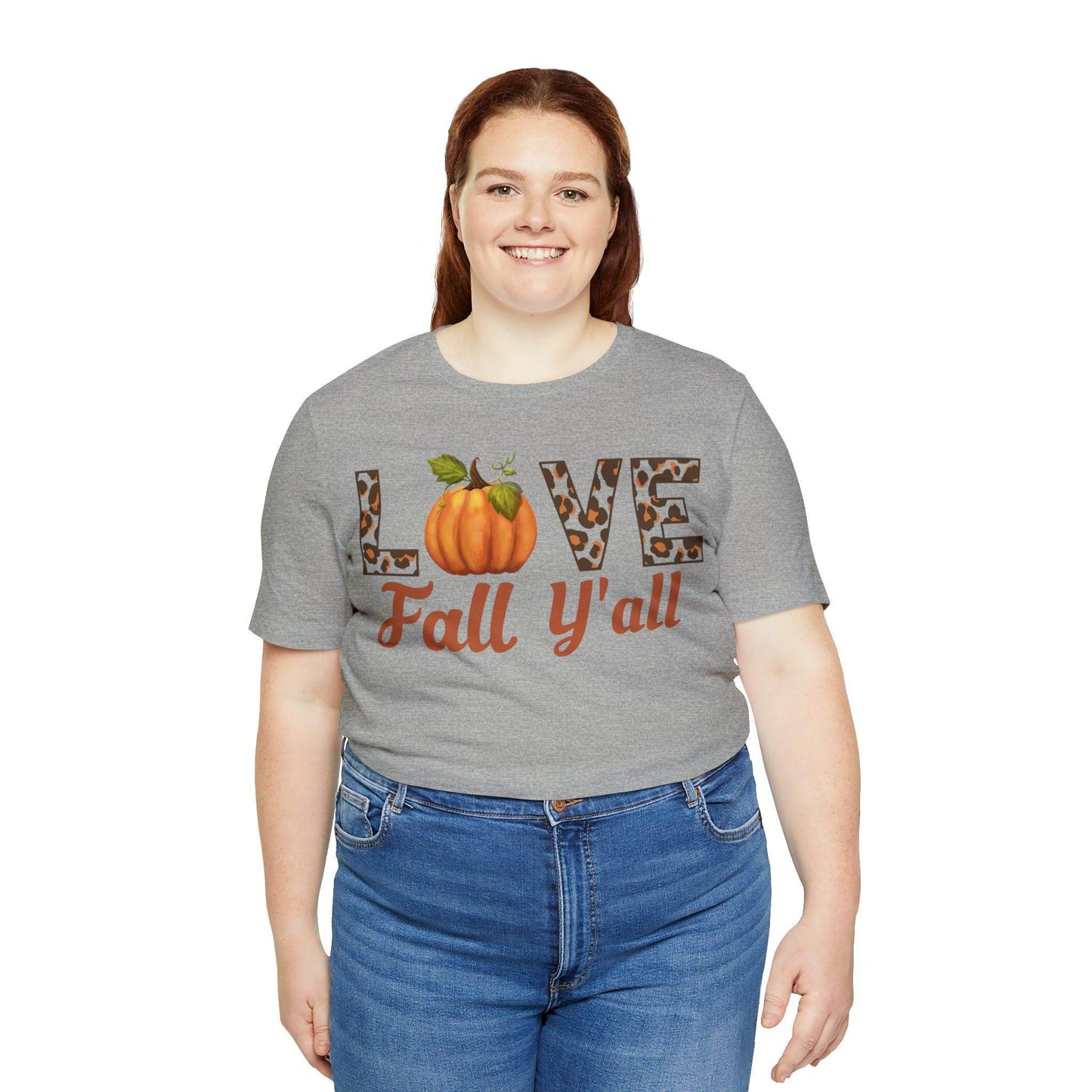 Embrace Autumn Fashion with our Leopard Print Love Fall Y'all Shirt!