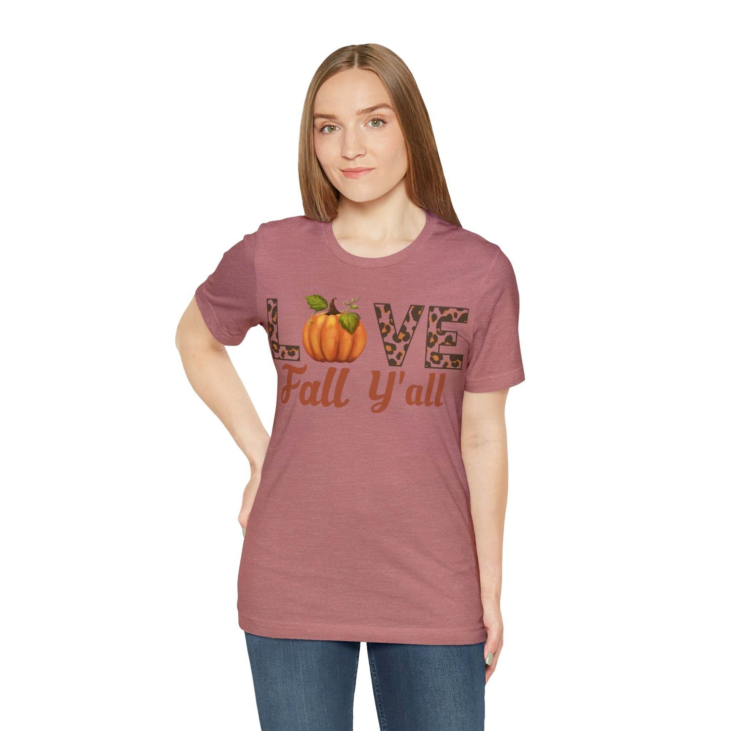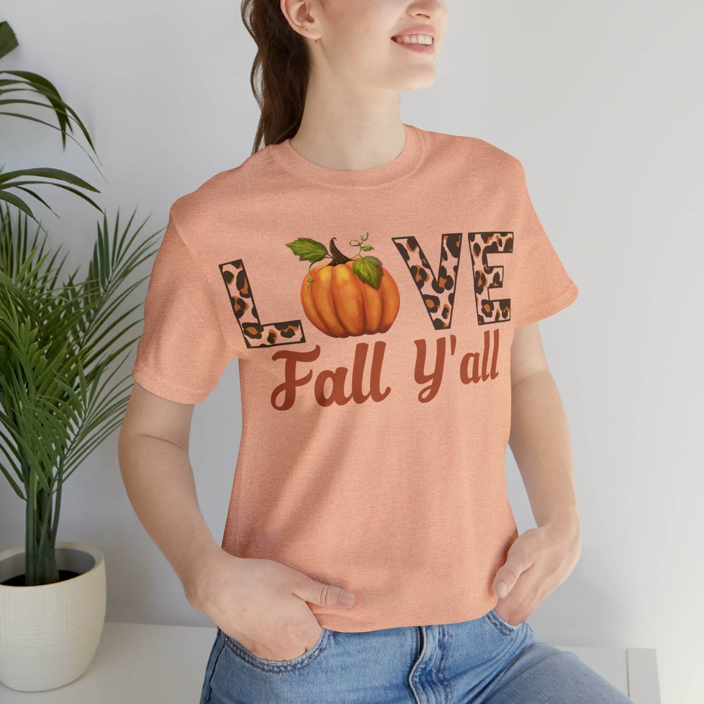 Leopard Print Love Fall Y'all Shirt, Pumpkin Shirt, Fall Shirt for Fall Lover, Fall gift