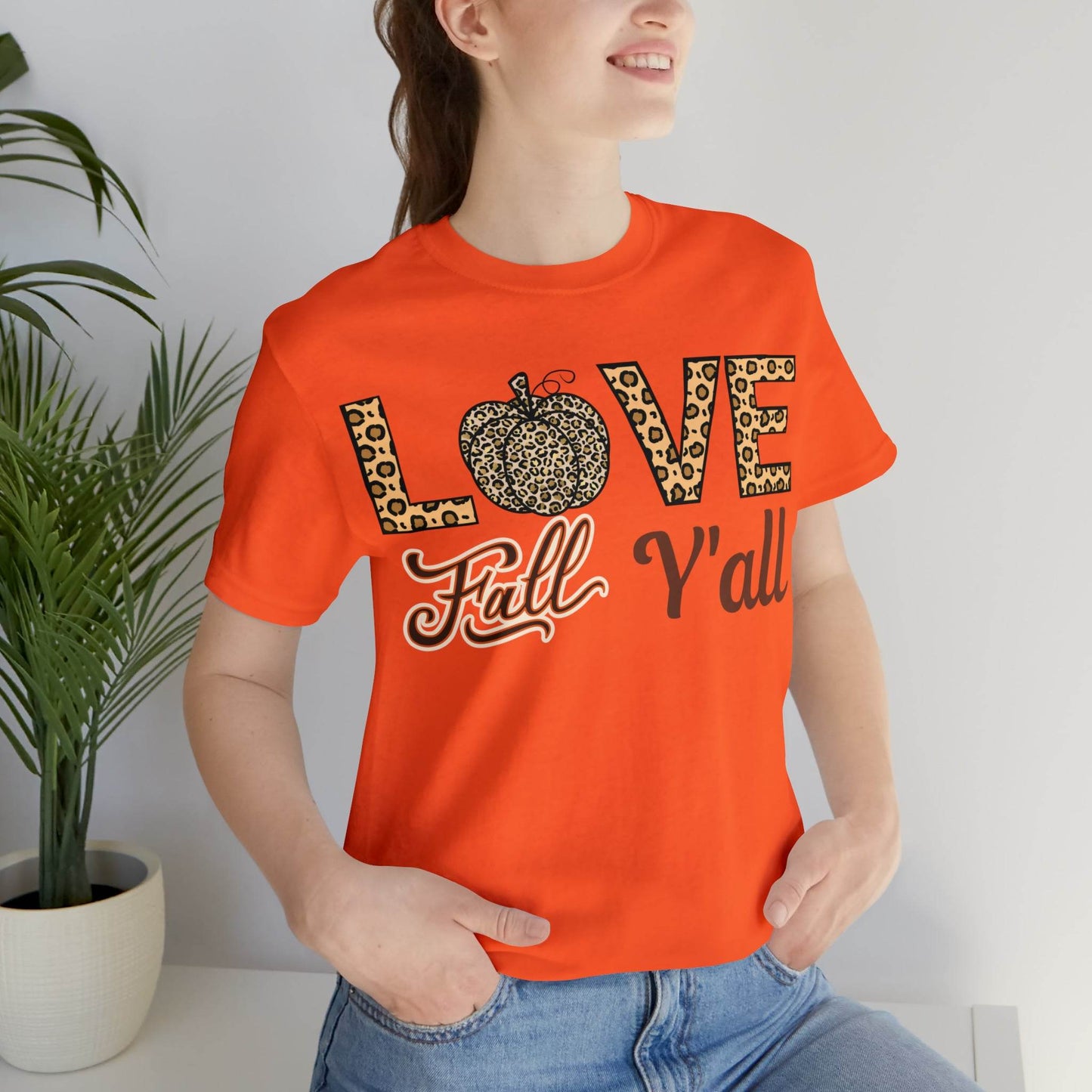 Leopard Print Love Fall Y'all Shirt, Pumpkin Shirt, Fall Shirt for Fall Lovers, Fall Gift