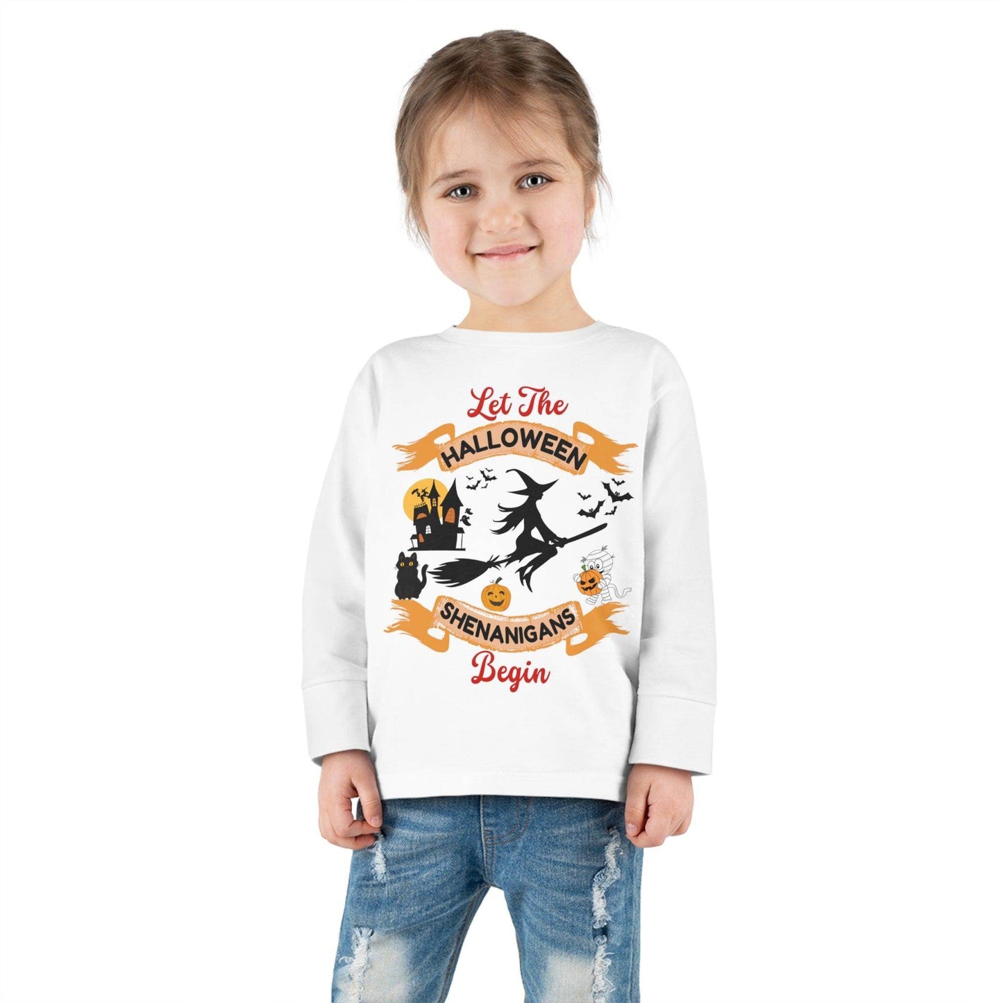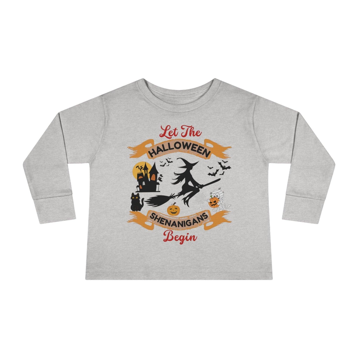 Get your little trick-or-treaters geared up for a hauntingly good time with our "Let the Halloween Shenanigans Begin" Kids Shirt. This adorable shirt is designed to ignite their excitement for the spookiest night of the year, and it's more than just clothing; it's a proclamation of their Halloween spirit.