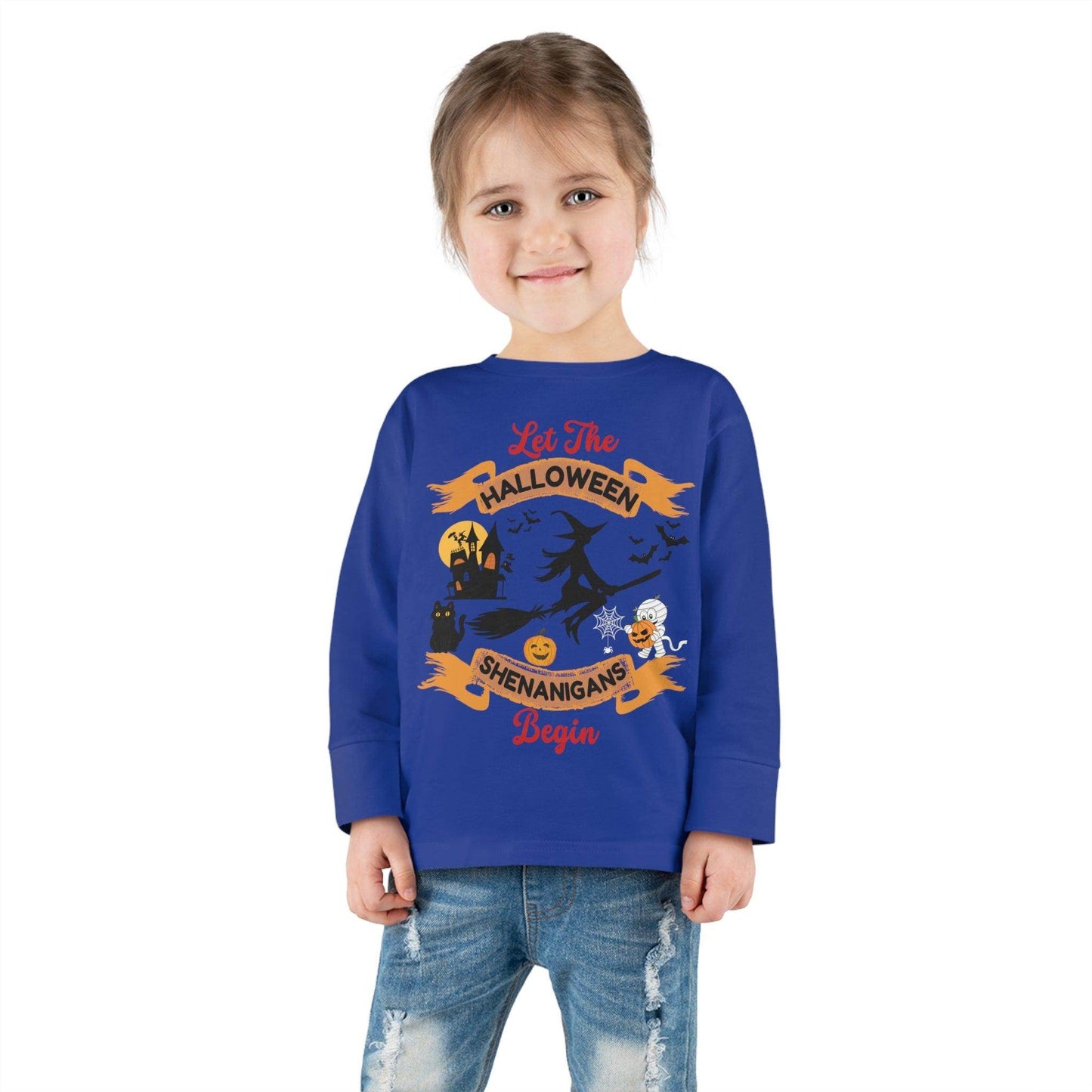 Give the gift of Halloween fun and be remembered as the ultimate Halloween supporter. Let the Halloween shenanigans begin with our Kids Shirt. The custom toddler long-sleeve tee is made from 100% combed ringspun cotton fine jersey. Built to last, the garment features a topstitched ribbed collar and shoulder-to-shoulder self-fabric back-neck taping. These inclusions boost durability, fit, and comfort. The label is EasyTear™, a nice feature for those with sensitive skin. .: 100% combed, ring-spun cotton (fiber content may vary for different colors) .: Light fabric (4.5 oz/yd² (153 g/m²)) .: Toddler unisex fit .: Tear away label