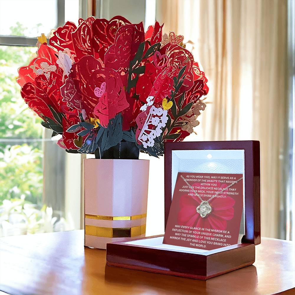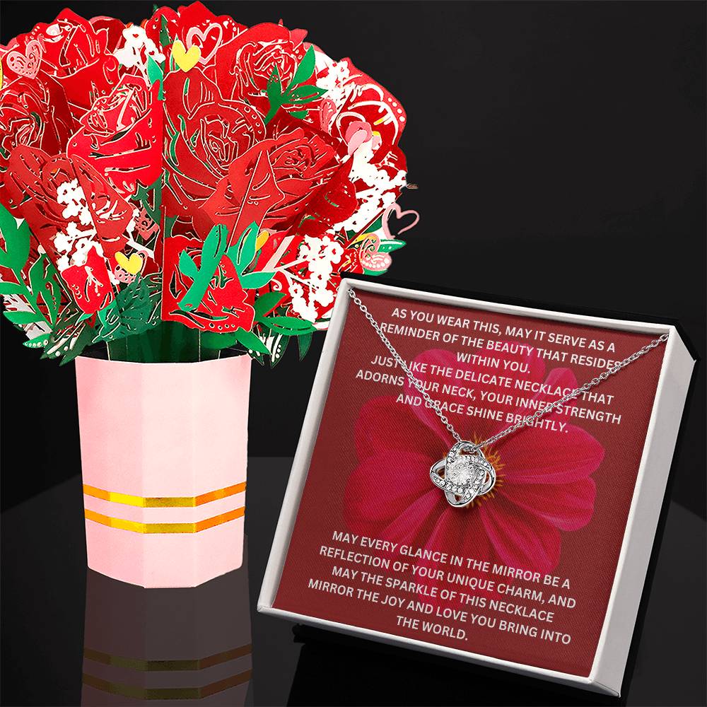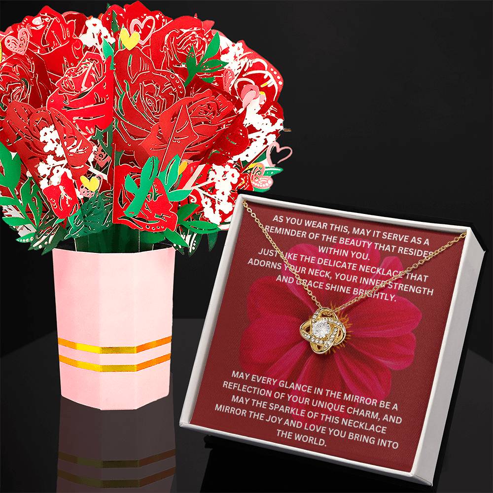 Love Knot Necklace + Flower Bouquet Bundle for Her