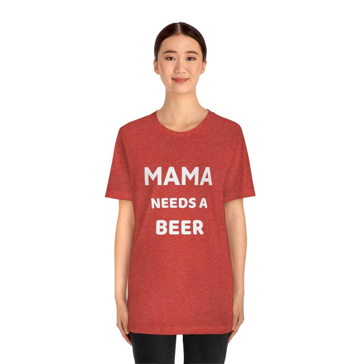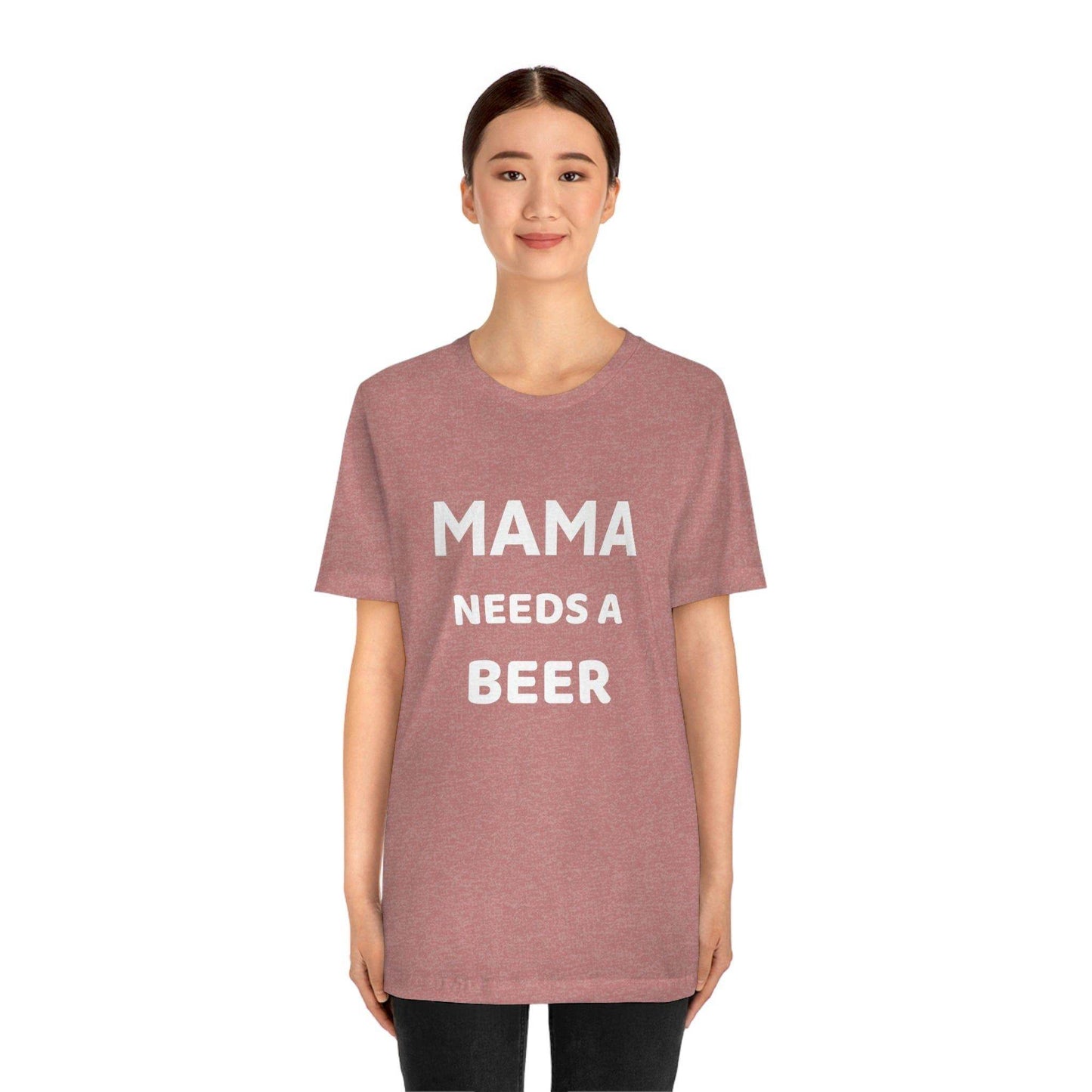 Mama needs a beer - gift for beer lover - Funny beer shirt - Funny shirt. This classic unisex jersey short sleeve tee fits like a well-loved favorite. Soft cotton and quality print make users fall in love with it over and over again. These t-shirts have-ribbed knit collars to bolster shaping. The shoulders have taping for better fit over time. Dual side seams hold the garment's shape for longer. .: 100% Airlume combed and ringspun cotton (fiber content may vary for different colors) .: Light fabric (4.2 oz/yd² (142 g/m²)) .: Retail fit .: Tear away label .: Runs true to size