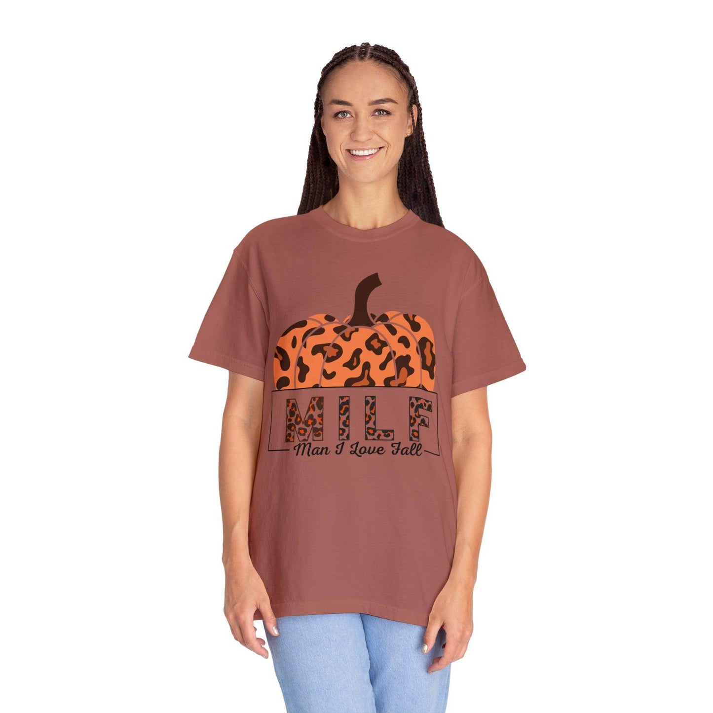 Elevate your fall fashion game with our captivating "Leopard MILF Man I Love Fall" Unisex T-Shirt. Infused with the essence of autumn, this shirt merges the irresistible charm of leopard print with the seasonal spirit. Crafted on a comfortable comfort colors tee, it offers both style and coziness, making it a go-to choice for any fall occasion. The bold t-shirt design, featuring playful elements like pumpkins and fall motifs, is a striking nod to the season's festivities. Get ready to turn heads and share a laugh with this unique and trendy piece.