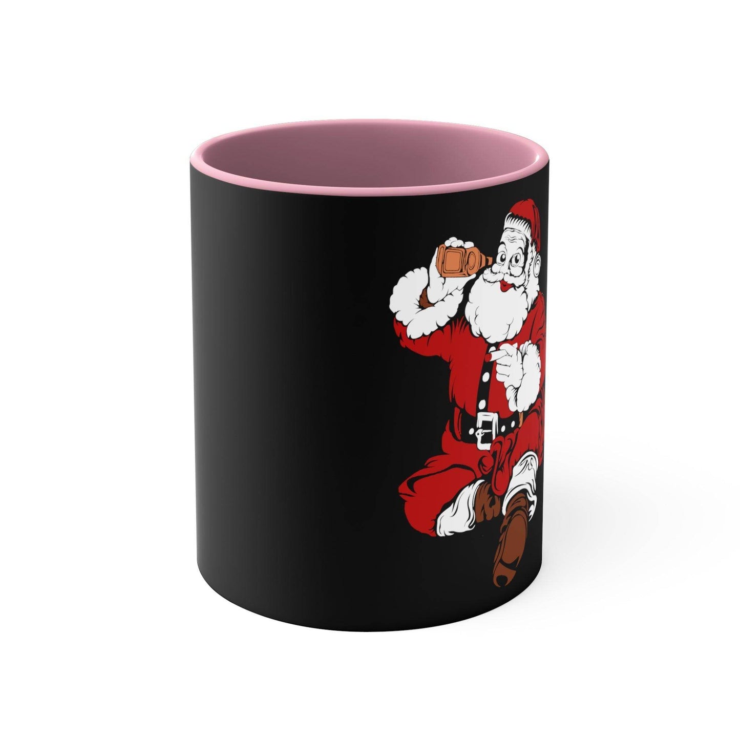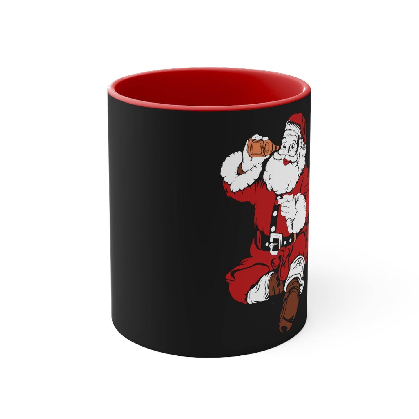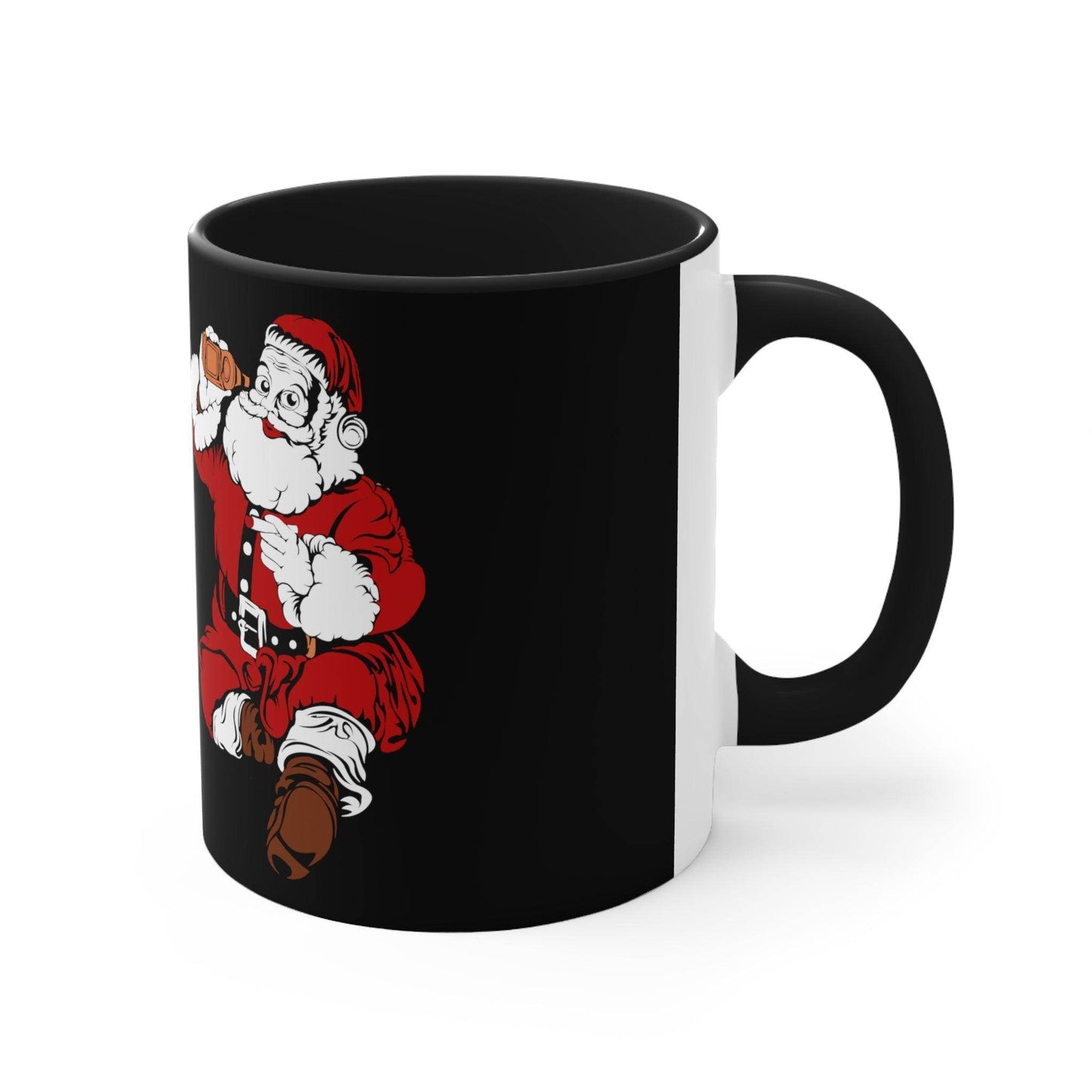 Naughty Santa Coffee Mug, 11oz, Add some color to your routine with this two-tone, custom accent coffee mug. This 11oz mug features an accented C-Handle that is comfortable to use, as well as an accented interior to add more contrast and character. With your design on this mug, you get an instant winner of a product.