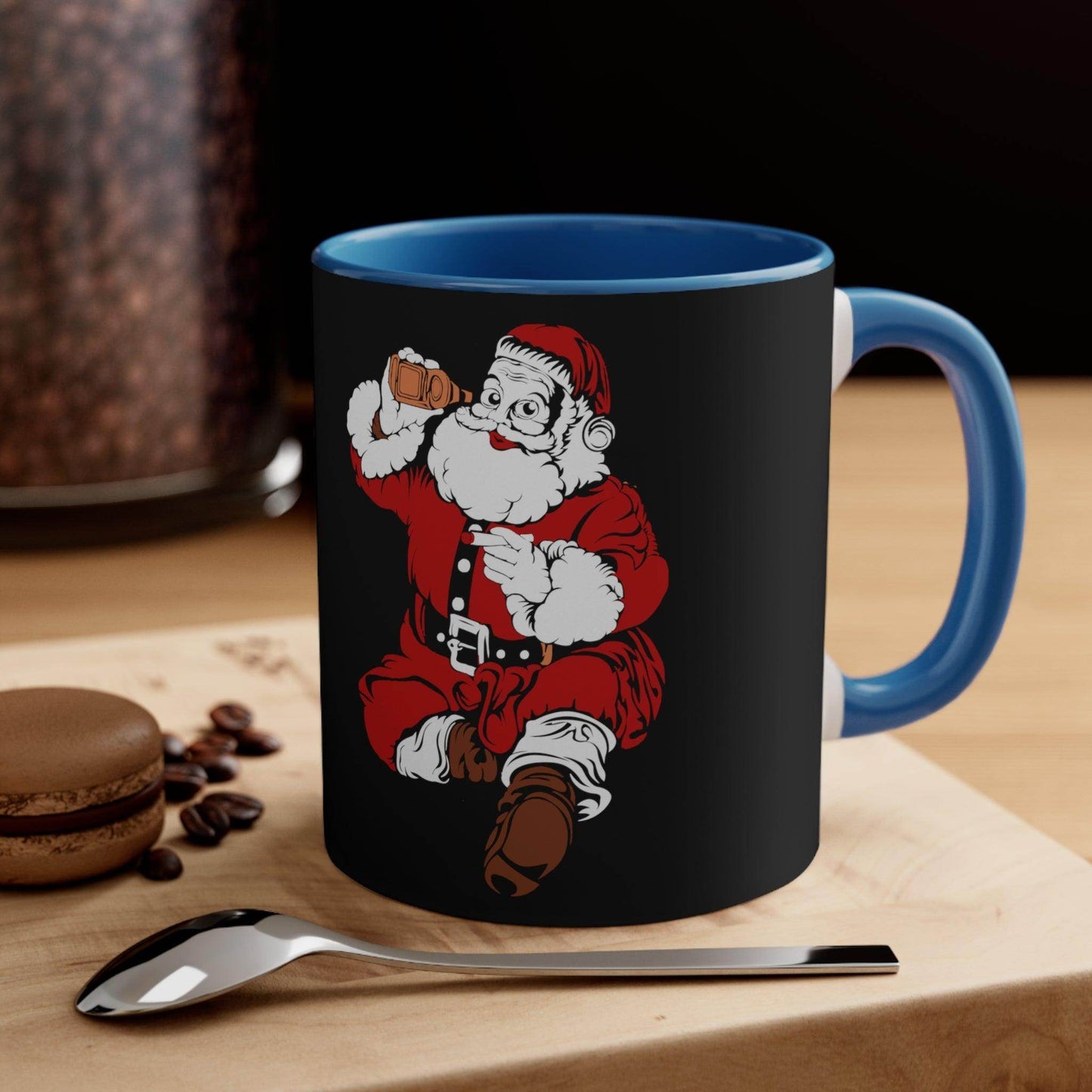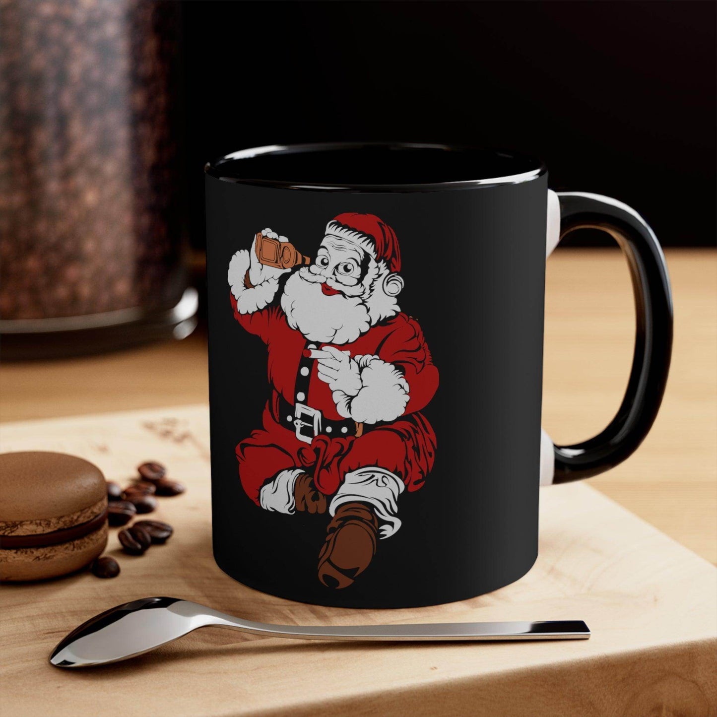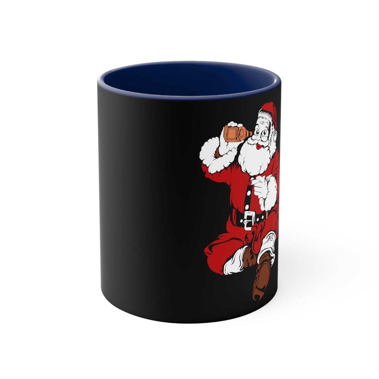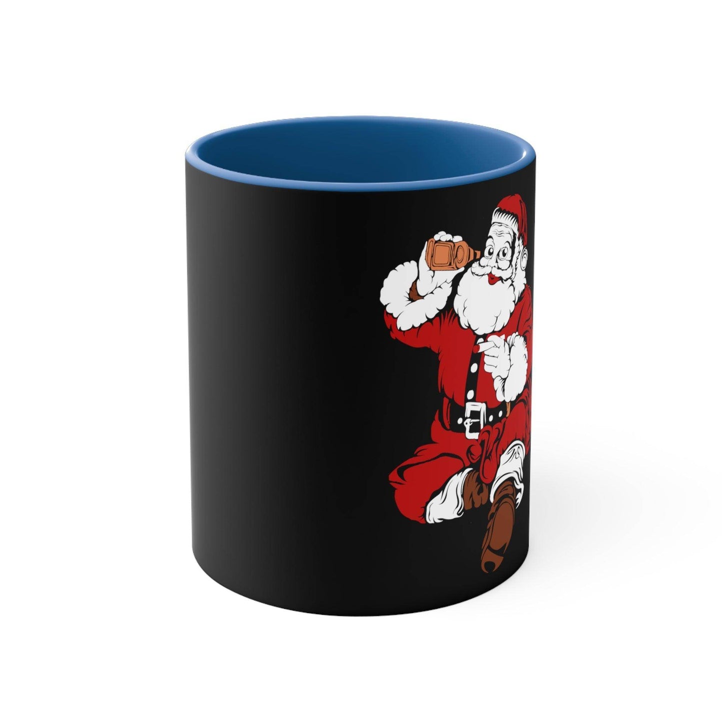Naughty Santa Coffee Mug, 11oz, Add some color to your routine with this two-tone, custom accent coffee mug. This 11oz mug features an accented C-Handle that is comfortable to use, as well as an accented interior to add more contrast and character. With your design on this mug, you get an instant winner of a product.