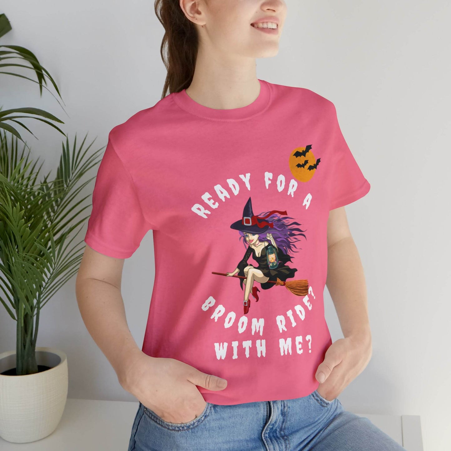 Get Ready for Halloween: Introducing our "Ready for A Broom Ride" Halloween Shirt, the perfect attire for spooky season. Embrace the enchanting spirit of Halloween with this fun and bewitching shirt that will have you ready for all the festive festivities.