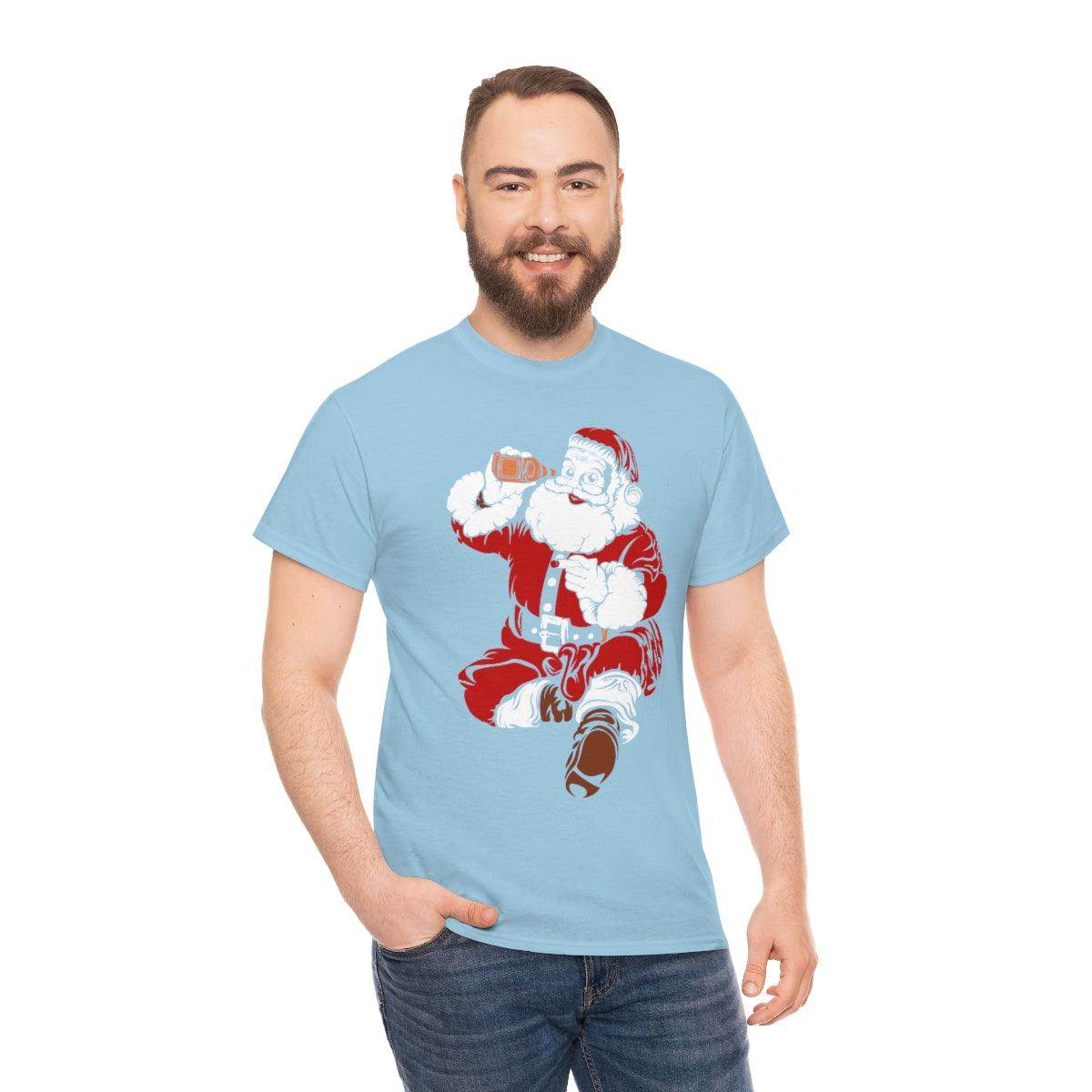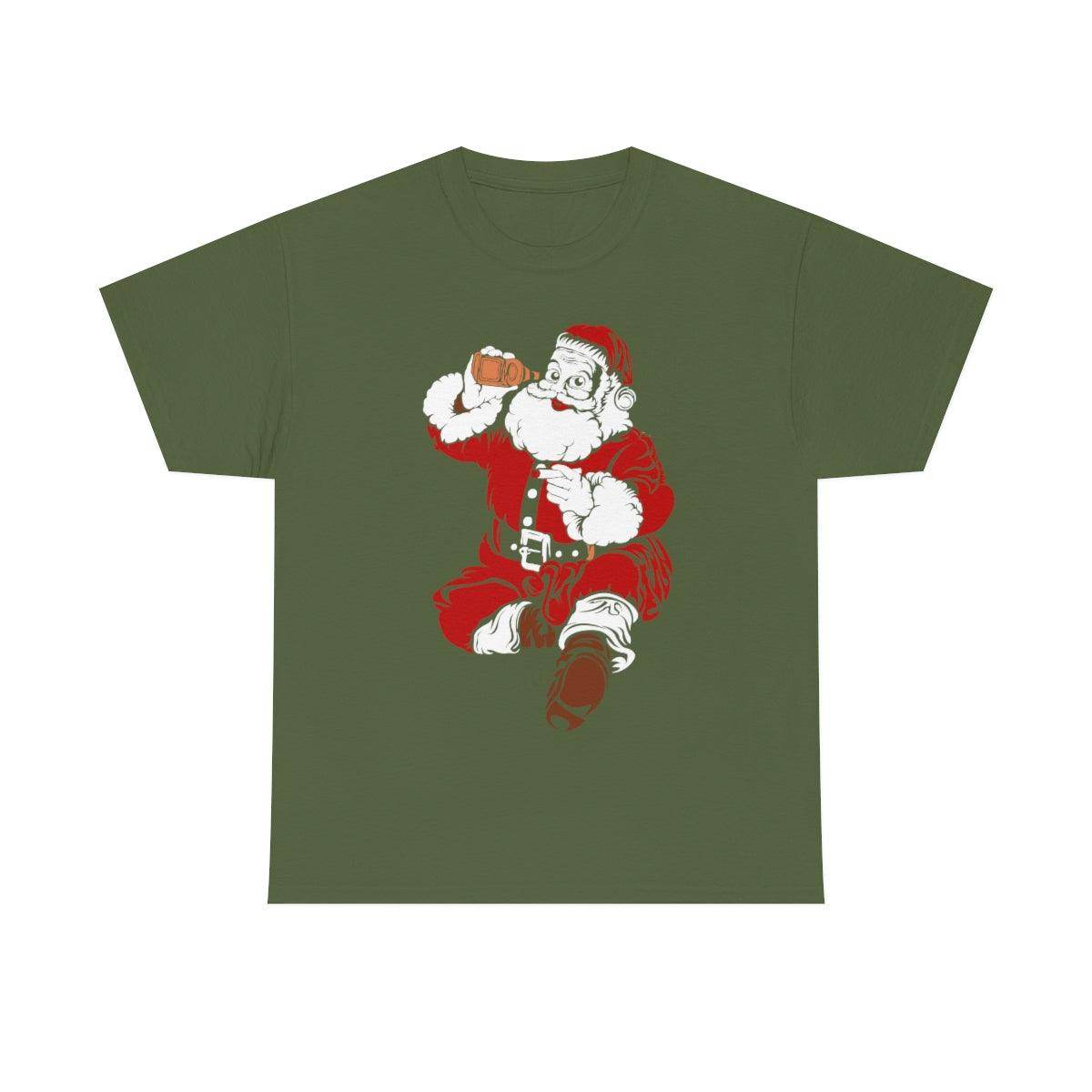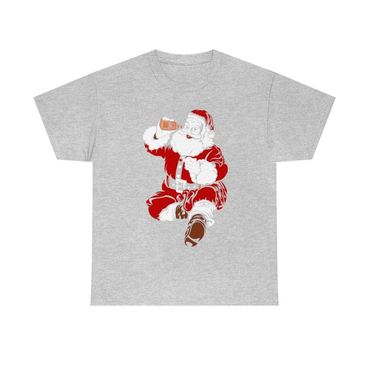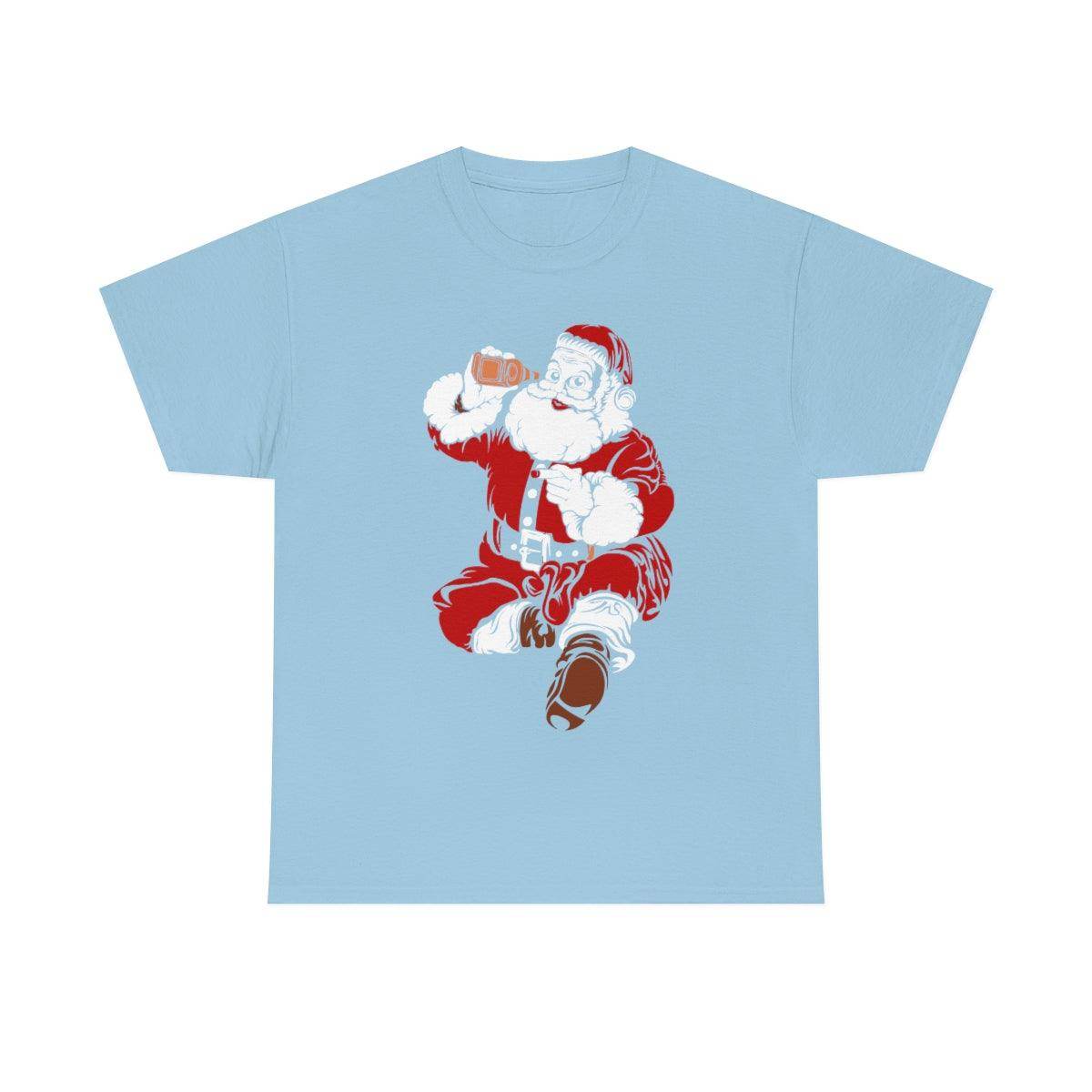 Why settle for a run-of-the-mill holiday outfit when you can have a Santa drinking beer? Make your Christmas celebrations unforgettable with this one-of-a-kind T-shirt. Order yours today and get ready to ho, ho, ho with laughter this holiday season.