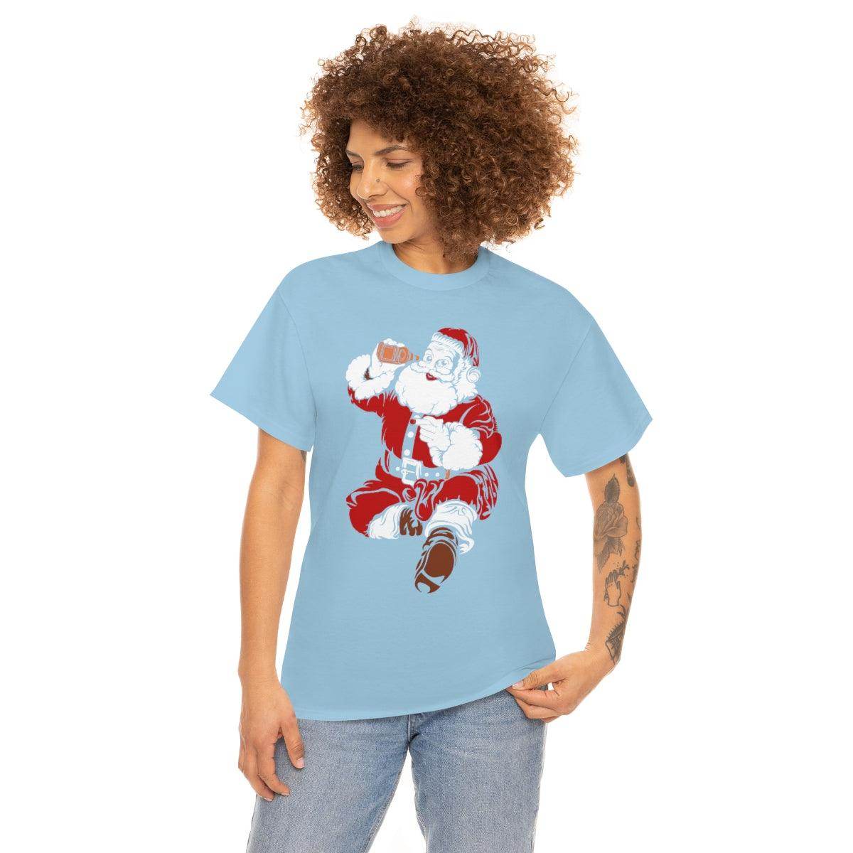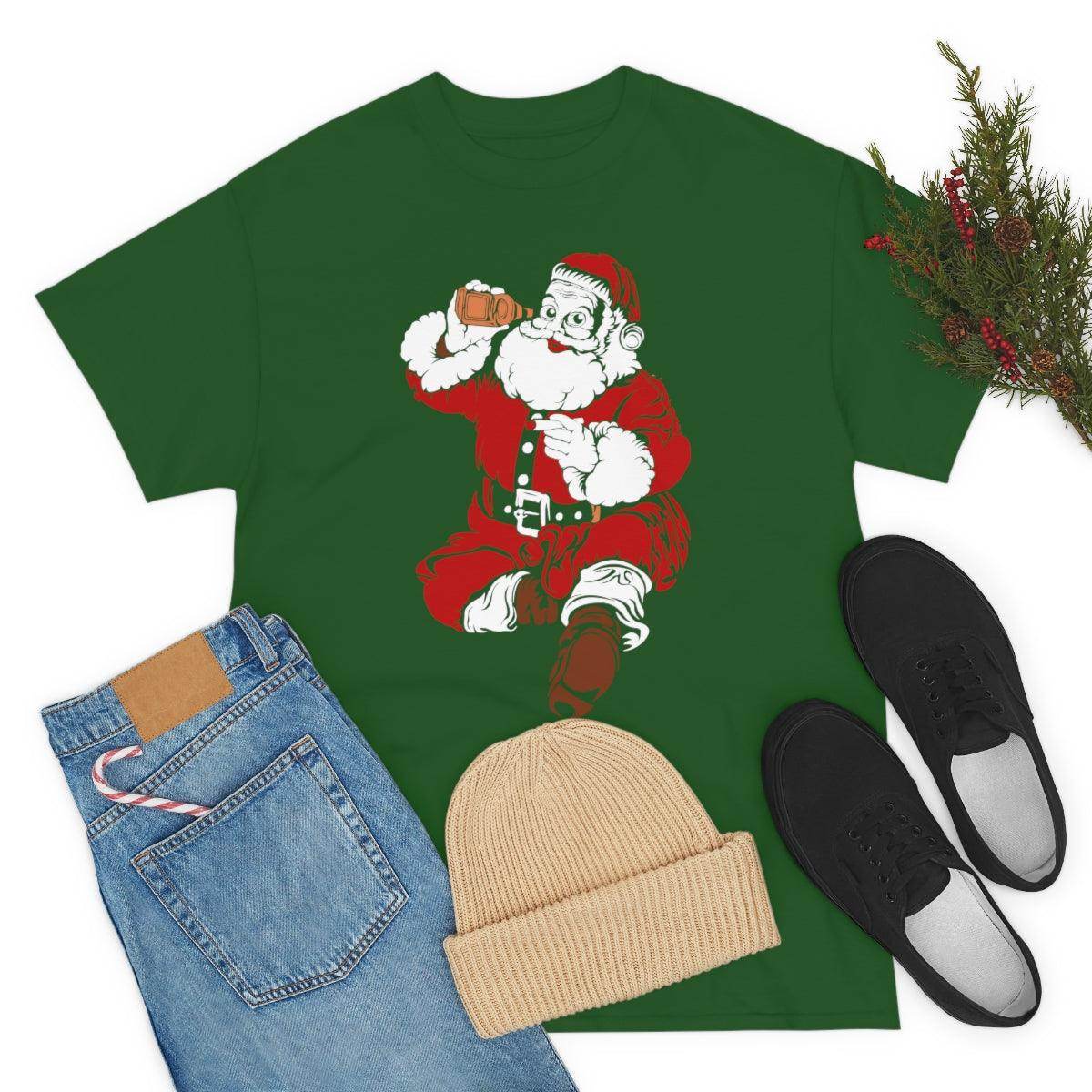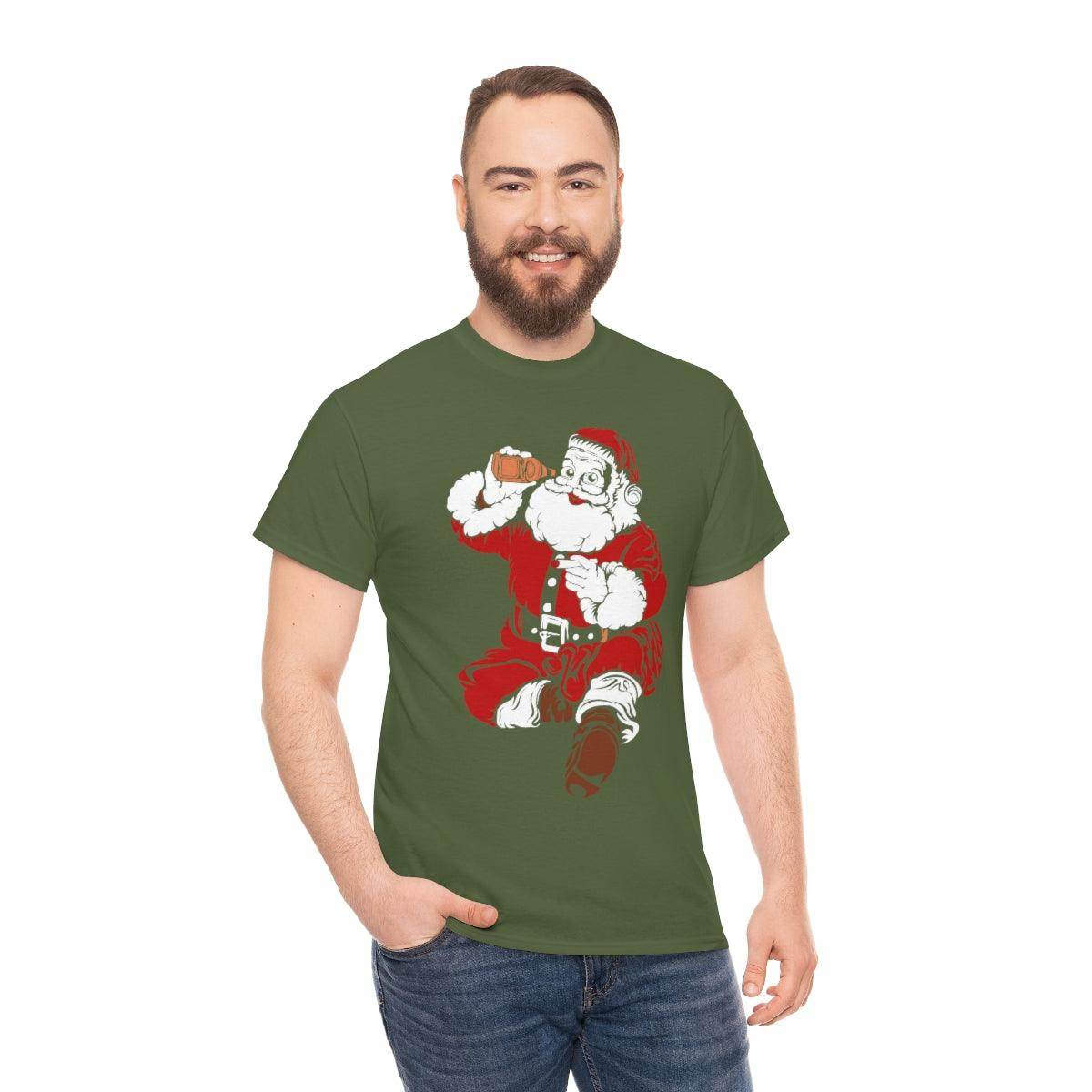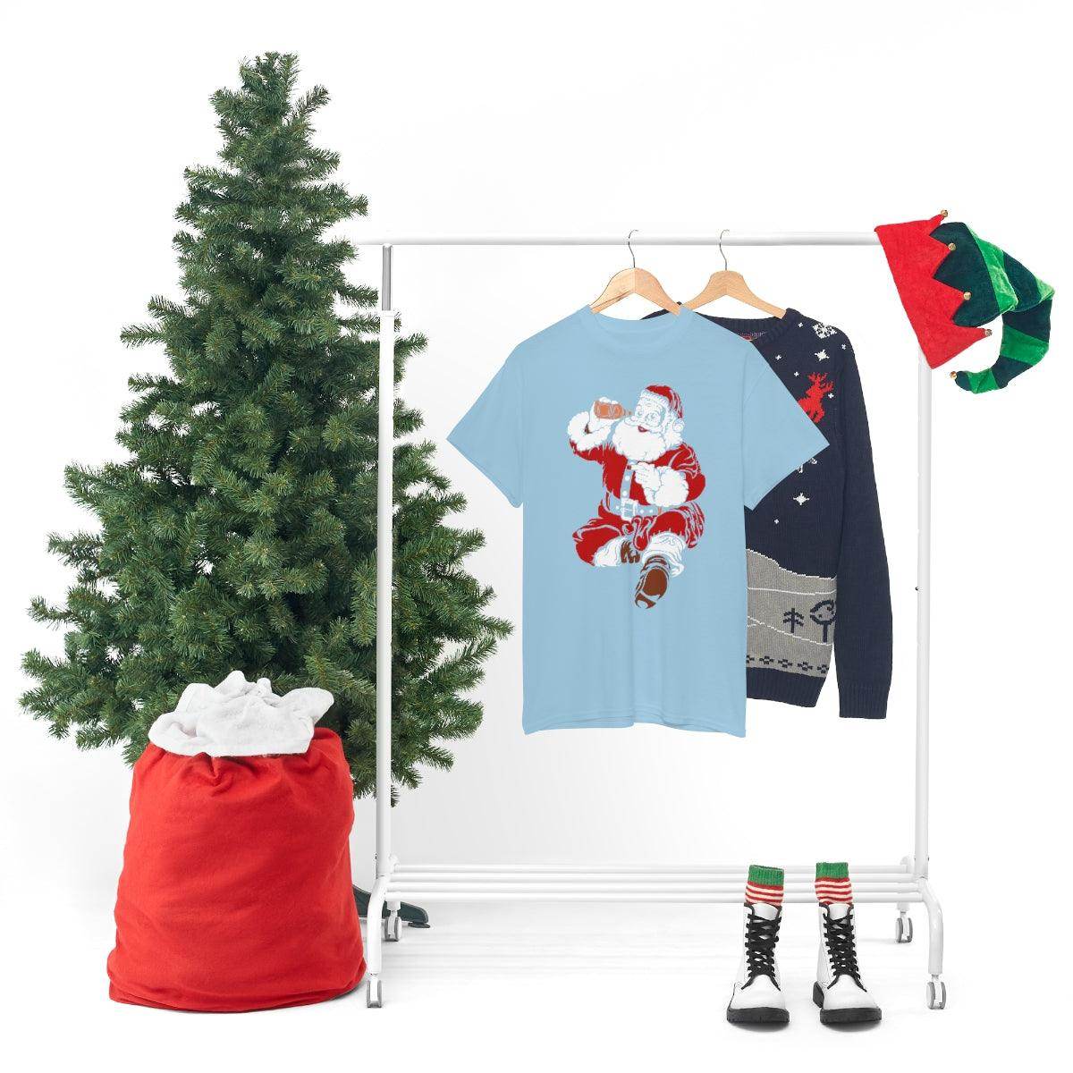 Why settle for a run-of-the-mill holiday outfit when you can have a Santa drinking beer? Make your Christmas celebrations unforgettable with this one-of-a-kind T-shirt. Order yours today and get ready to ho, ho, ho with laughter this holiday season.