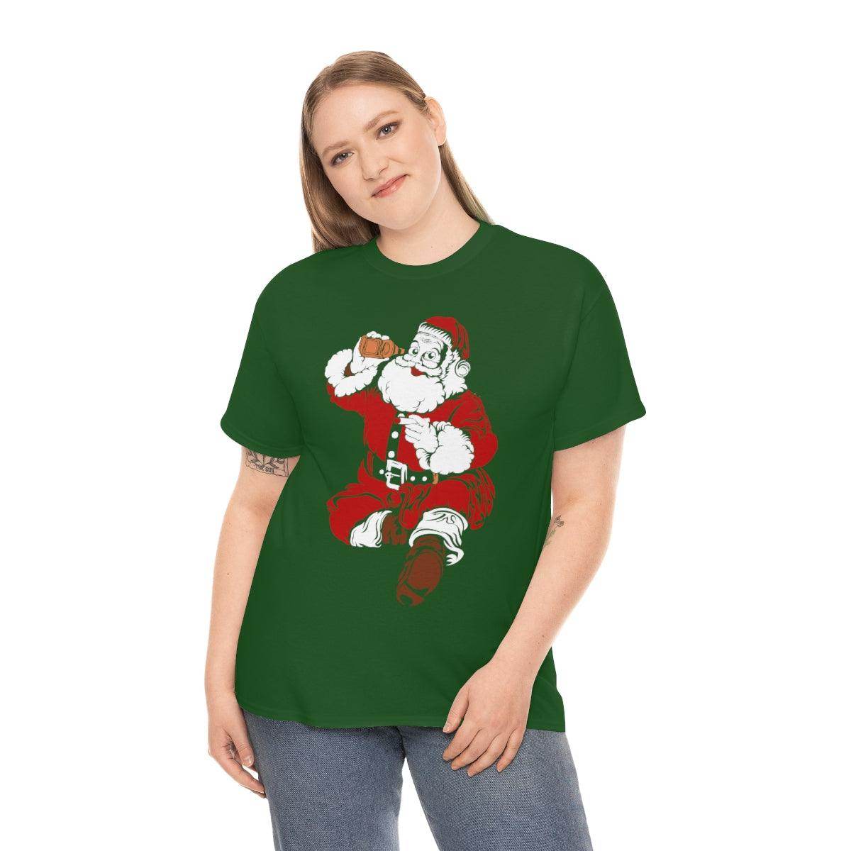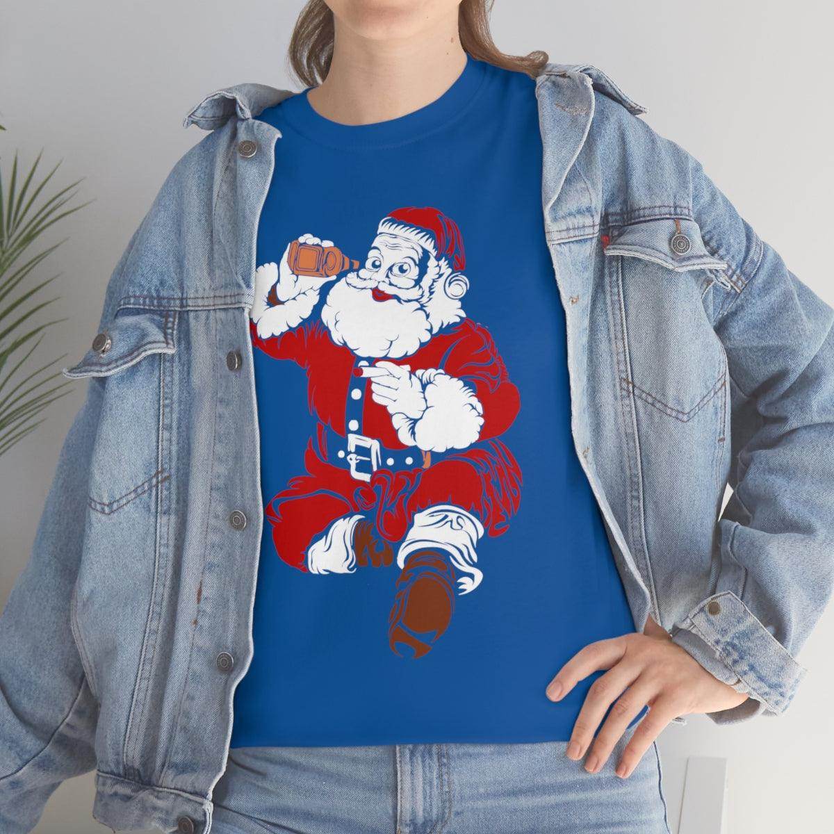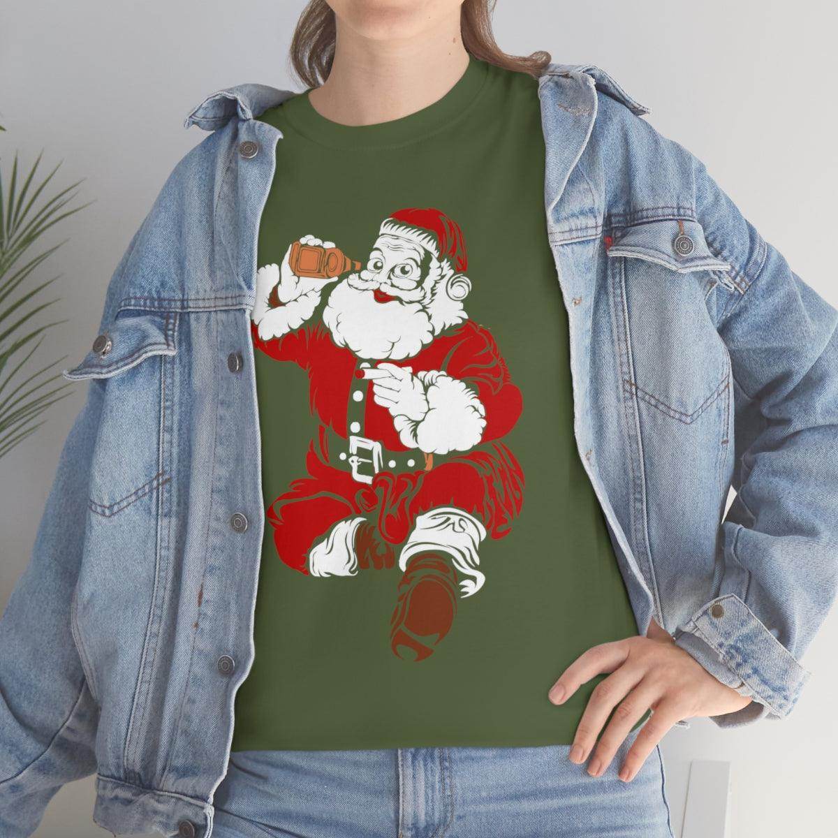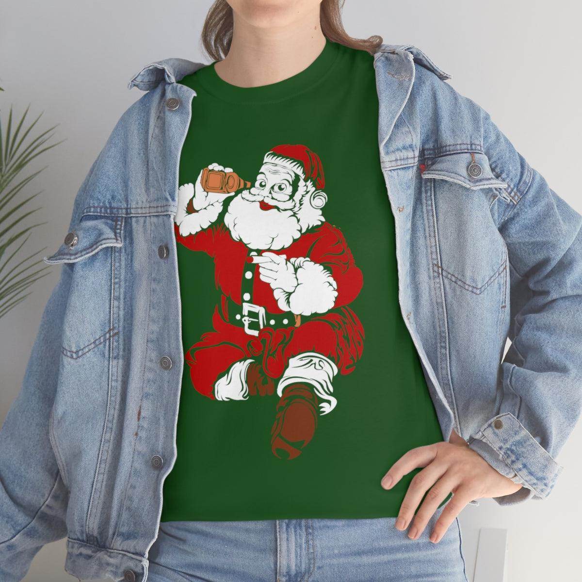 Why settle for a run-of-the-mill holiday outfit when you can have a Santa drinking beer? Make your Christmas celebrations unforgettable with this one-of-a-kind T-shirt. Order yours today and get ready to ho, ho, ho with laughter this holiday season.