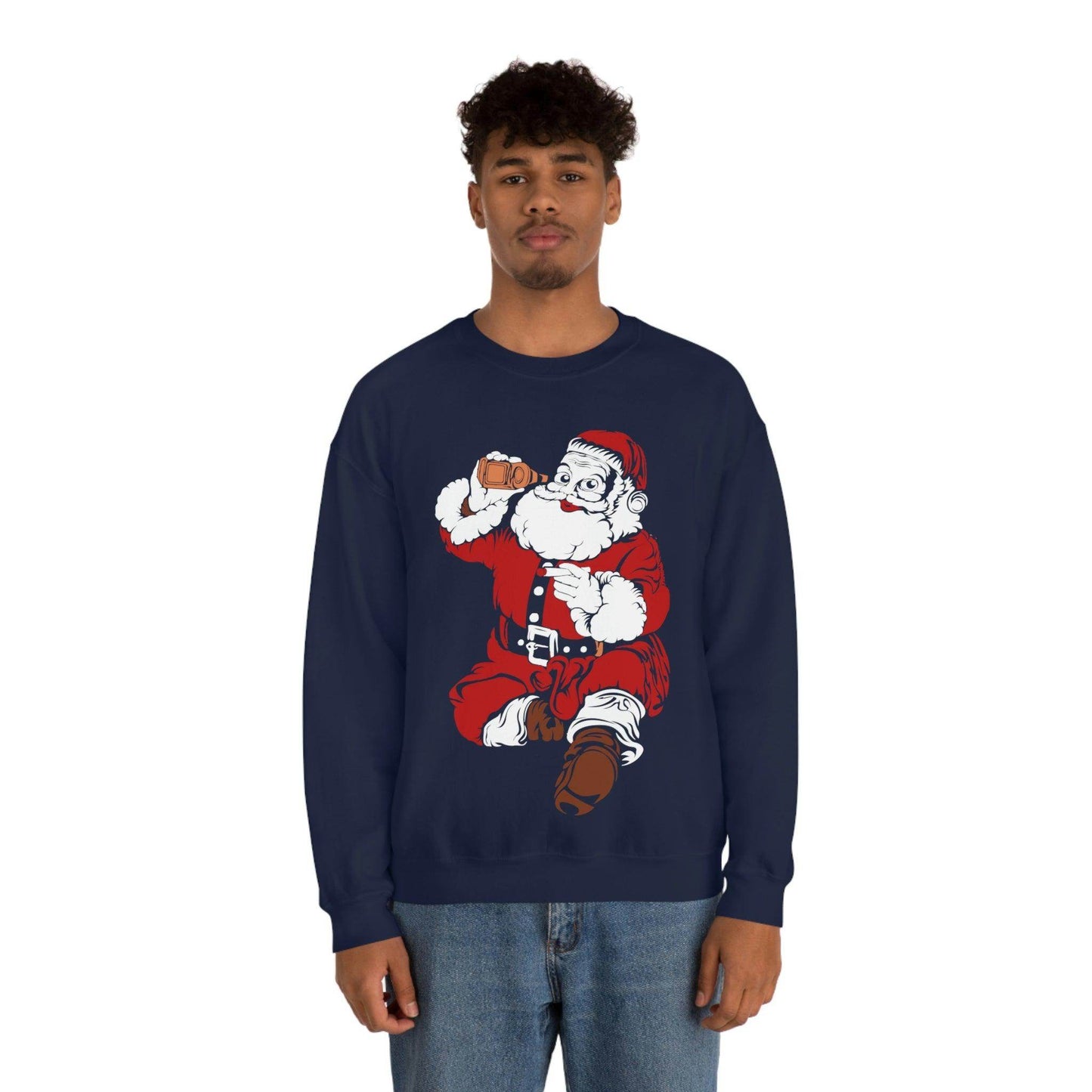 Santa drinking beer Crewneck Sweatshirt, great custom designed gift for christmas lovers. gift for both men or women. Ideal for any situation, a unisex heavy blend crewneck sweatshirt is pure comfort. These garments are made from polyester and cotton. This combination helps designs come out looking fresh and beautiful. The collar is ribbed knit, so it retains its shape even after washing. There are no itchy side seams on these sweaters.