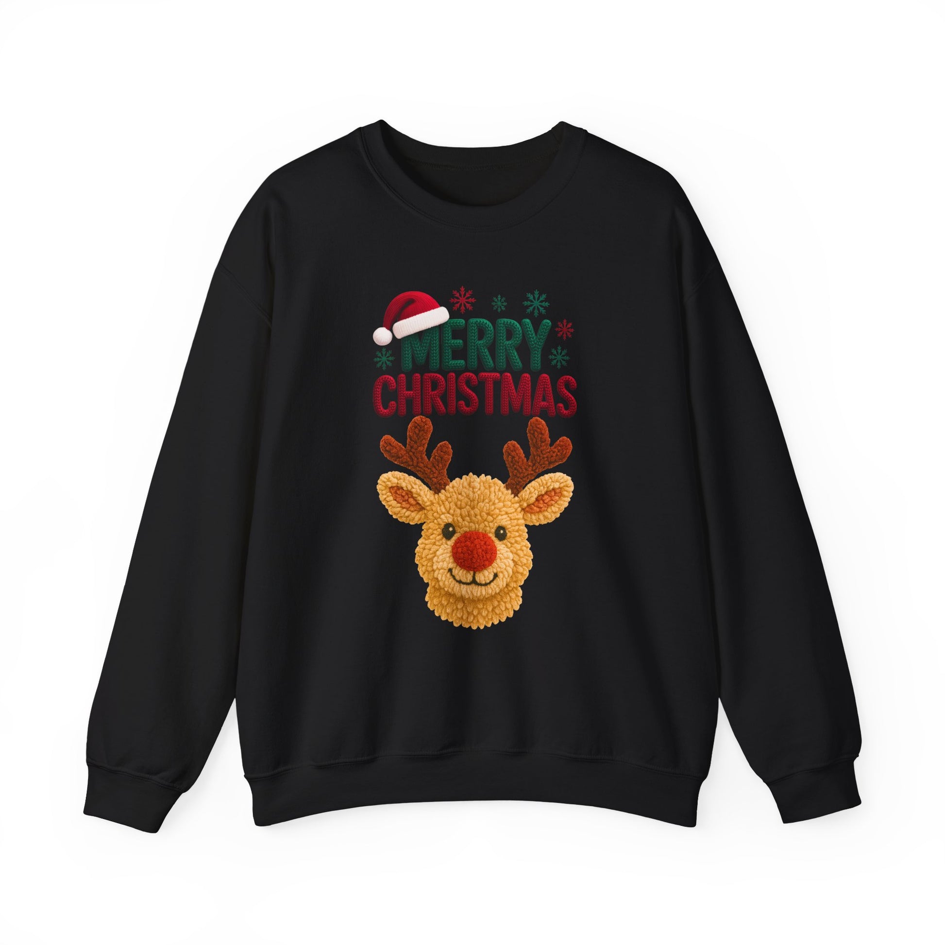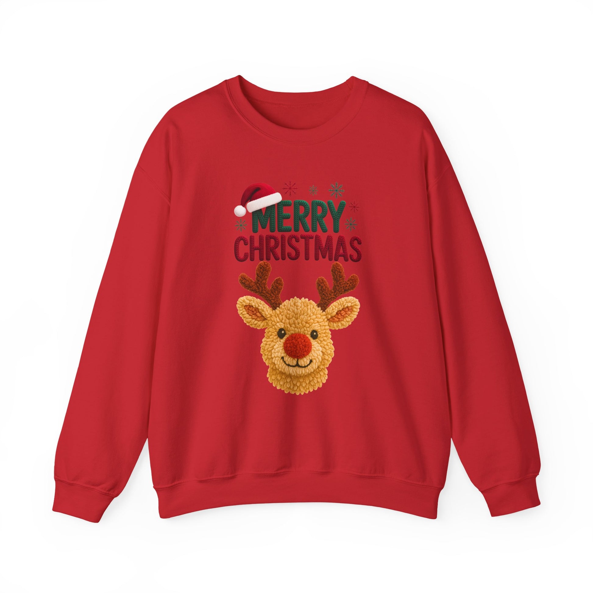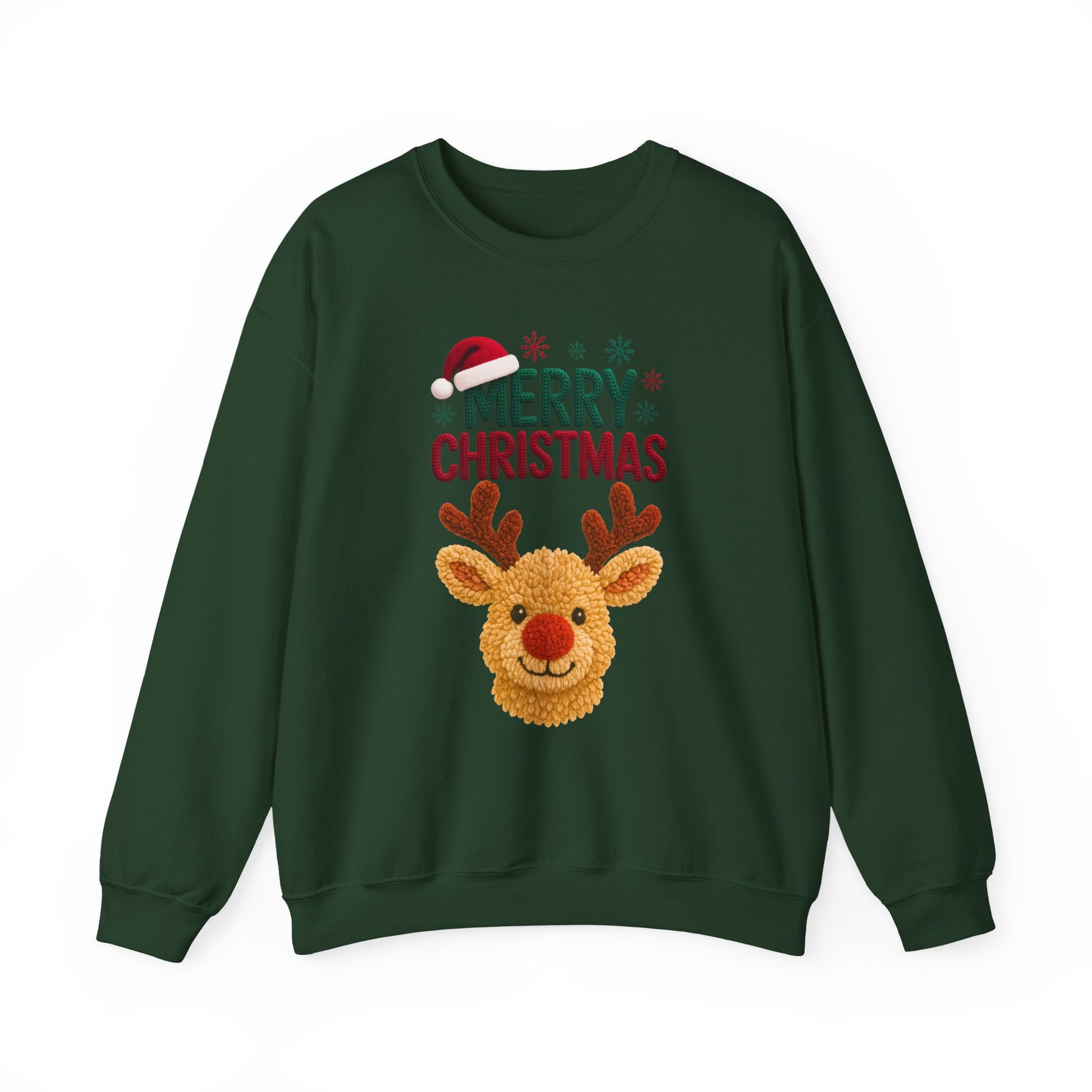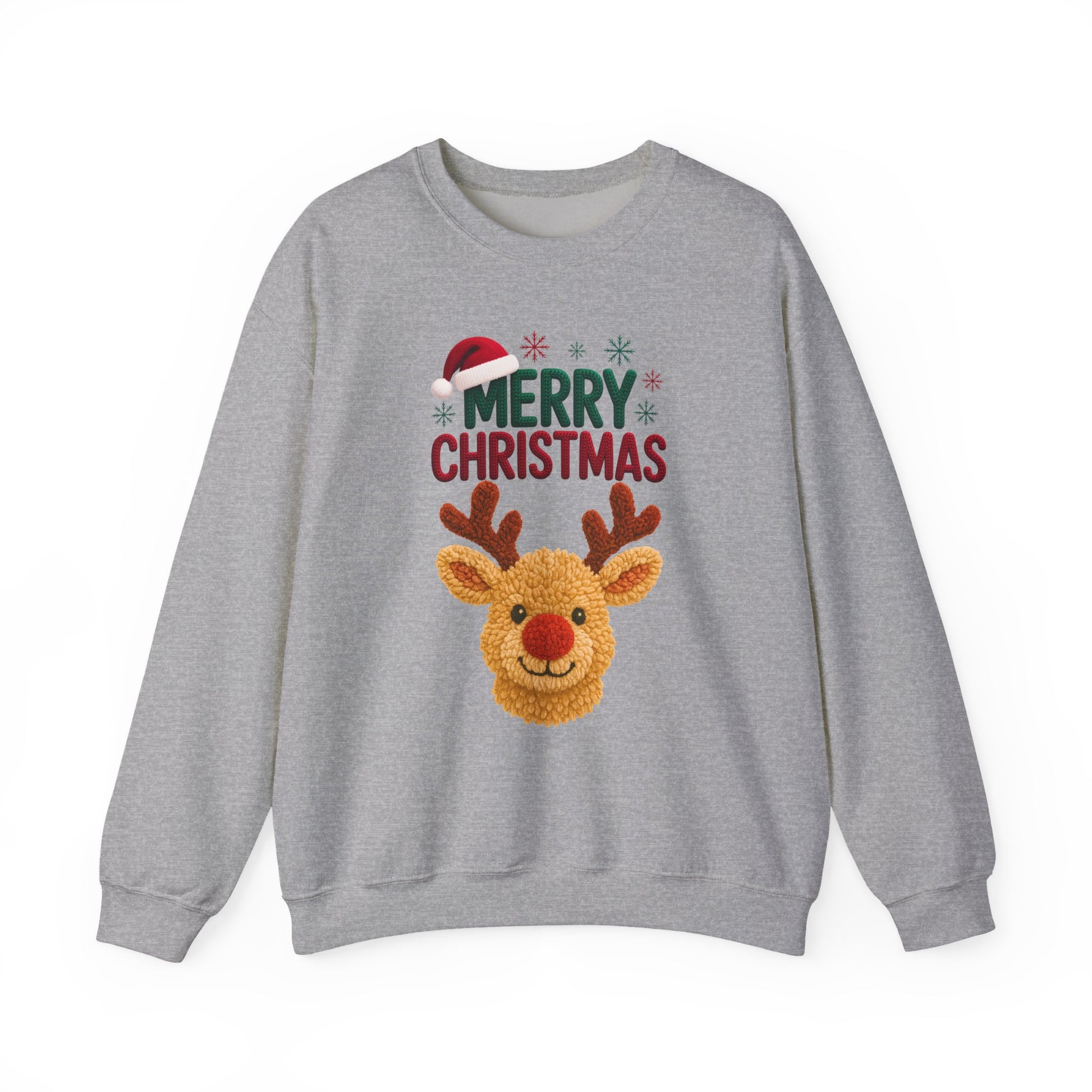 Stay cozy and festive this holiday season with Santa Hat Reindeer Merry Christmas Sweatshirt. Perfect for adults looking for a comfy and durable option to wear during Christmas celebrations and winter gatherings.