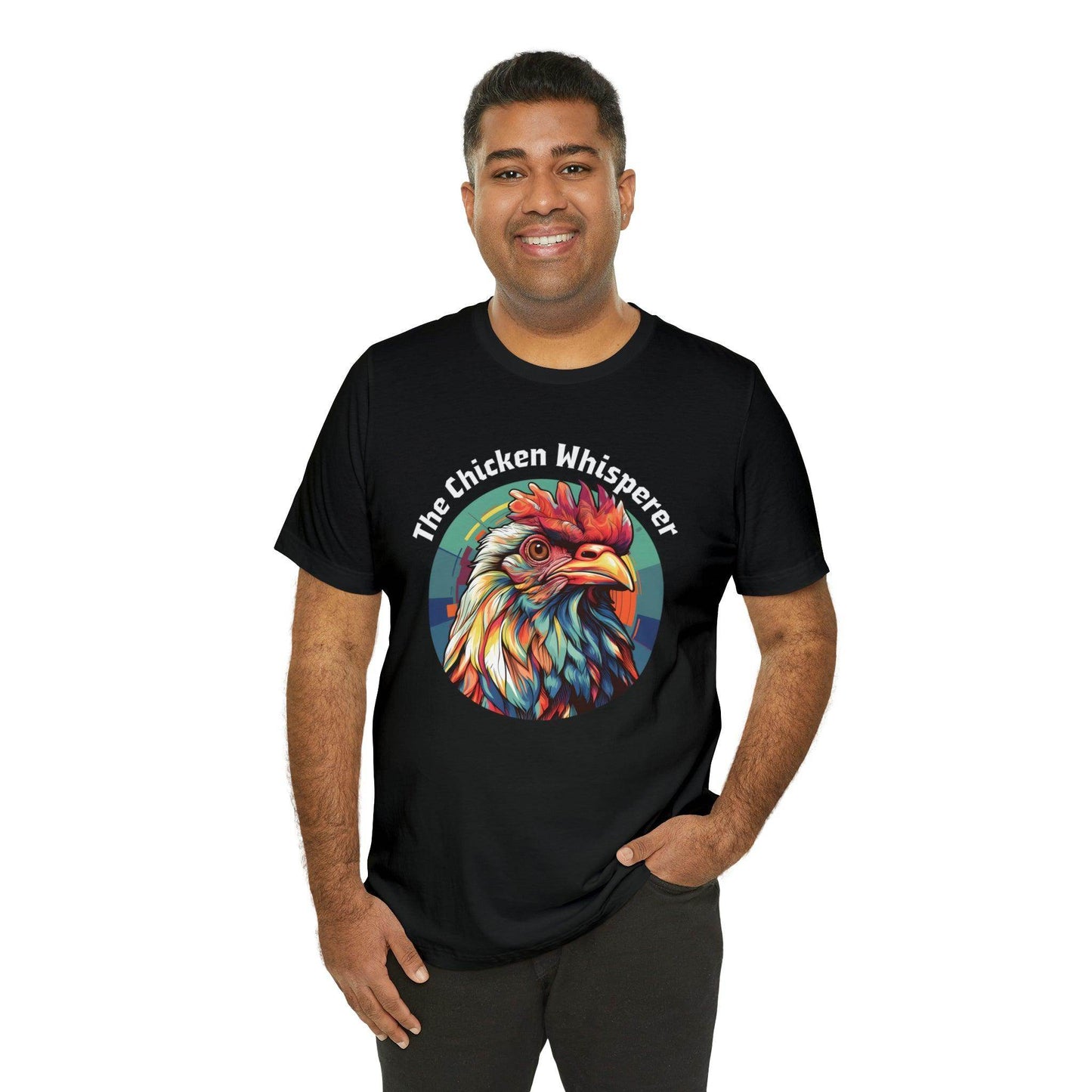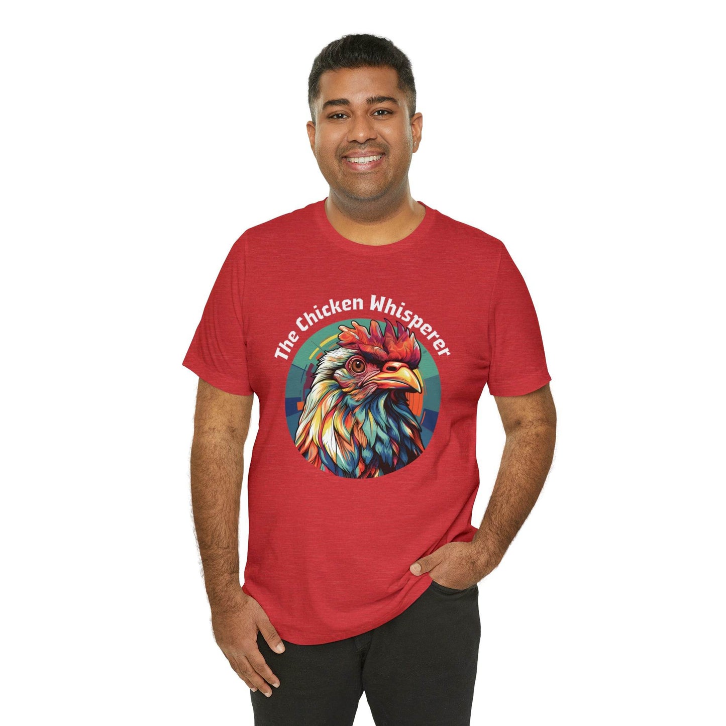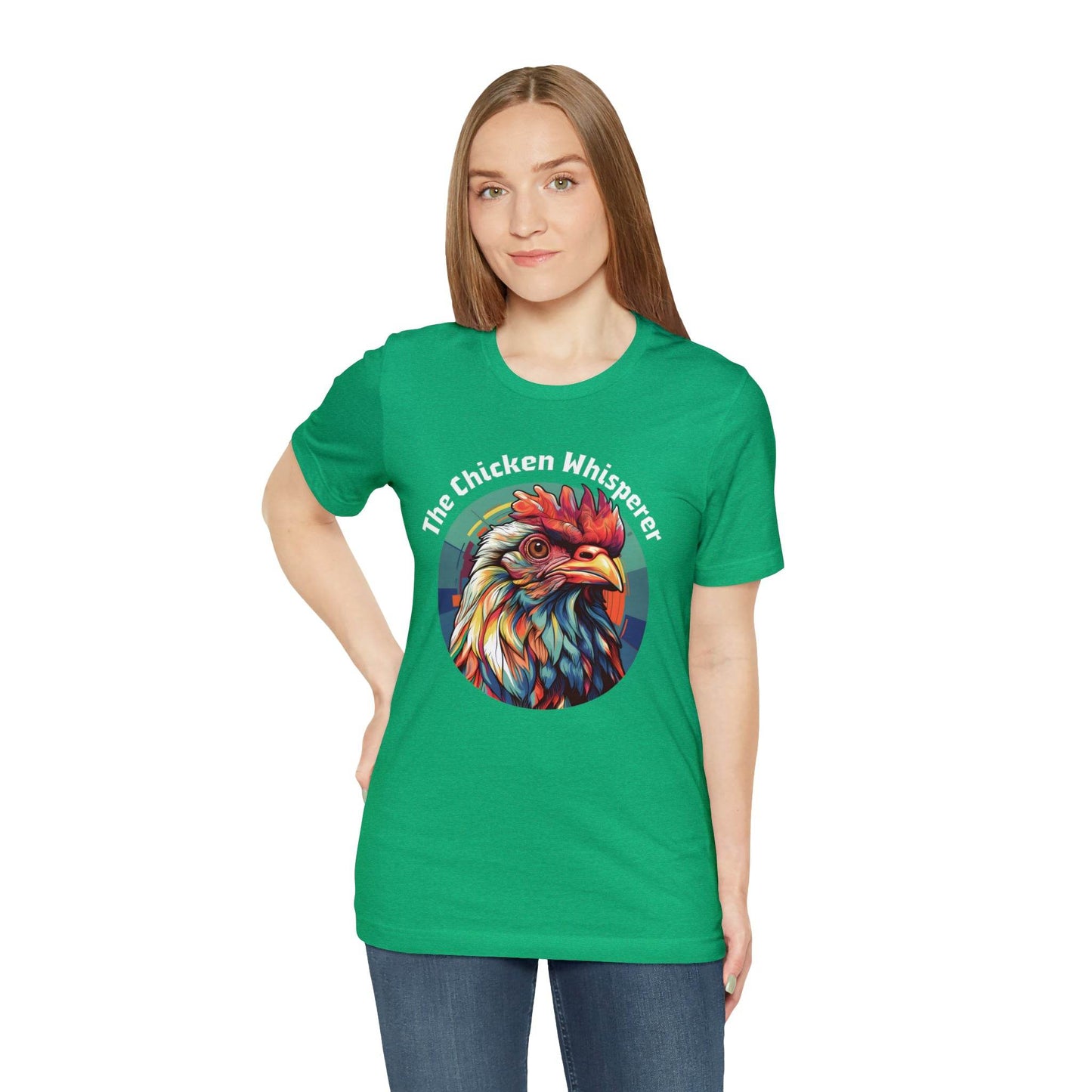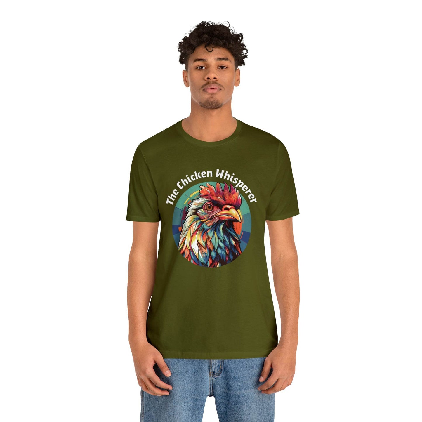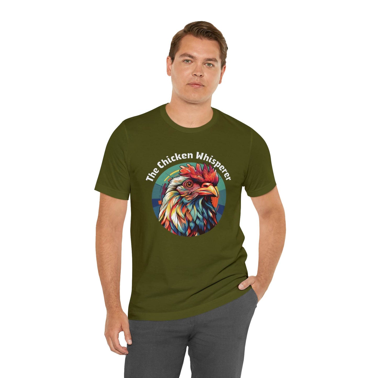 This shirt features a cool, vintage-style illustration of a chicken clucking, along with the text "The Chicken Whisperer". It's made of high-quality, soft cotton and is available in a variety of sizes and colors to fit everyone.
