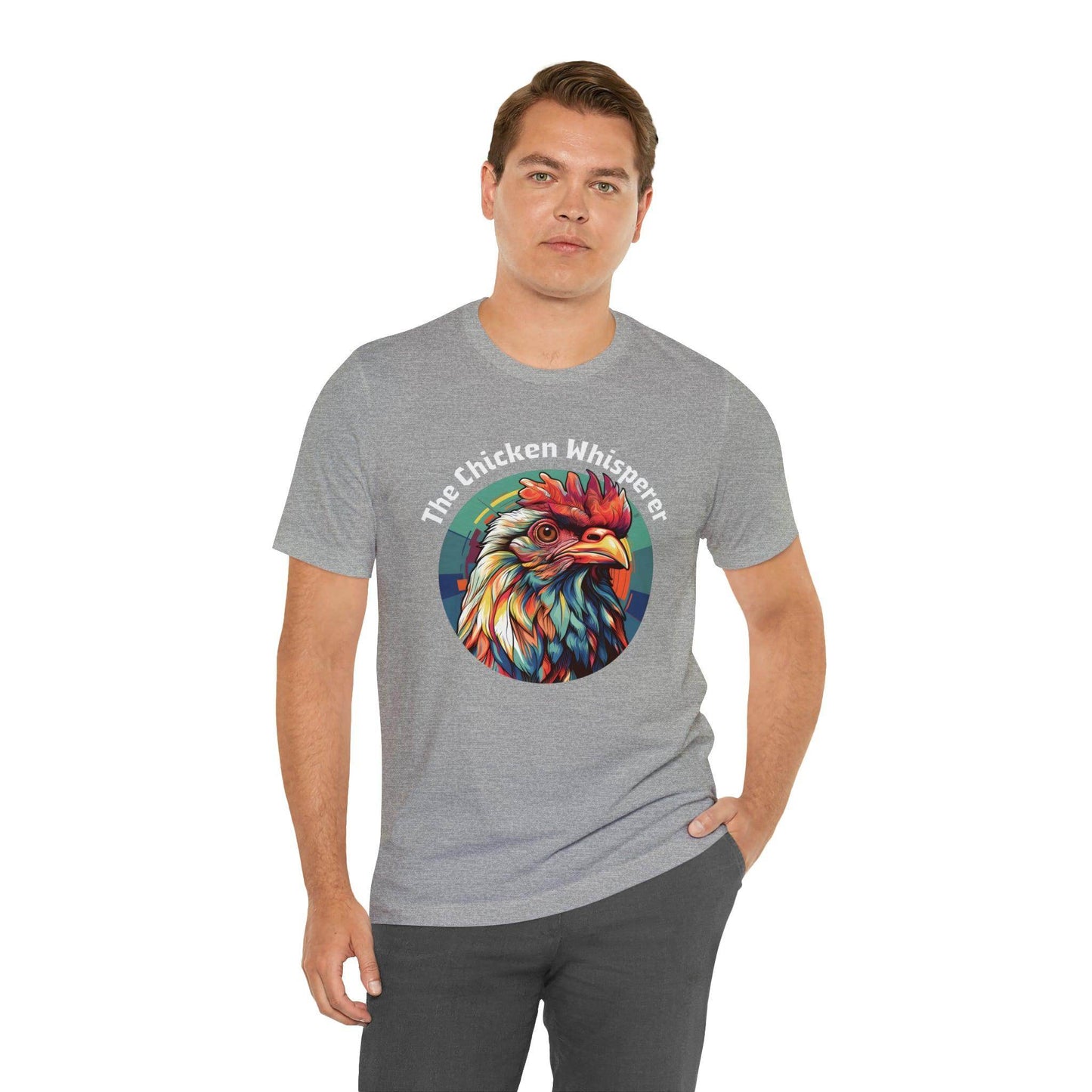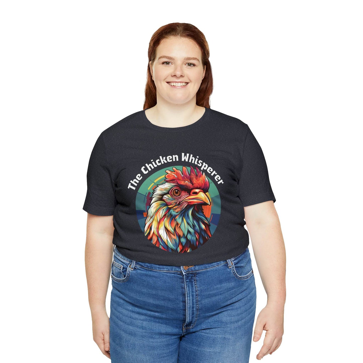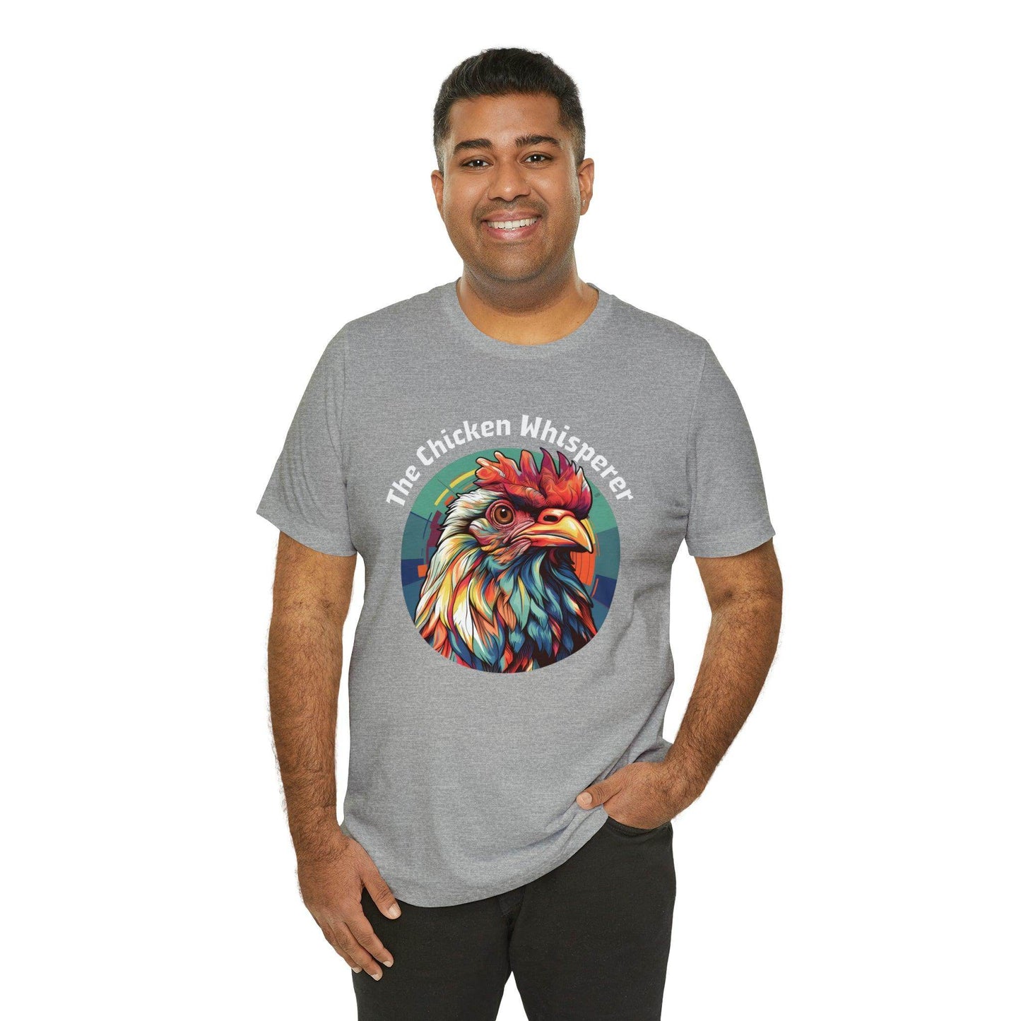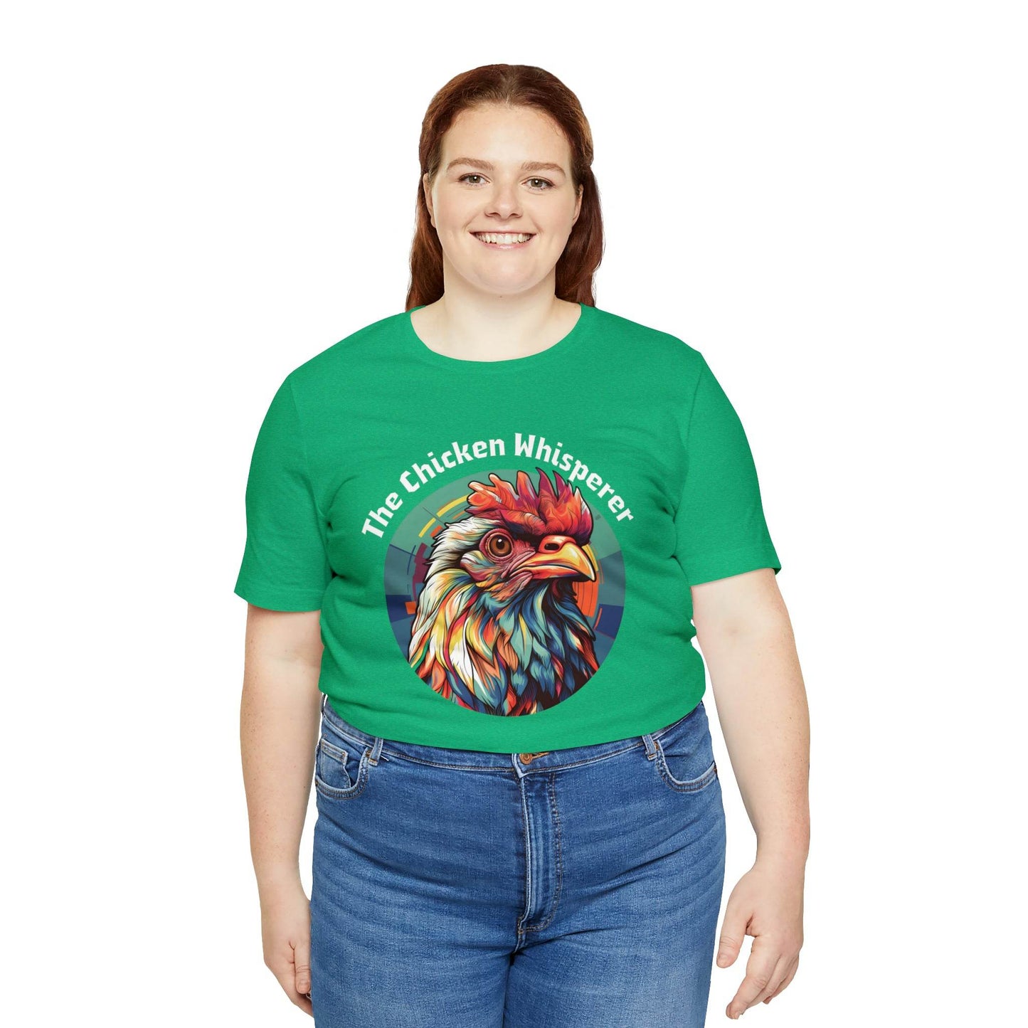 This shirt features a cool, vintage-style illustration of a chicken clucking, along with the text "The Chicken Whisperer". It's made of high-quality, soft cotton and is available in a variety of sizes and colors to fit everyone.