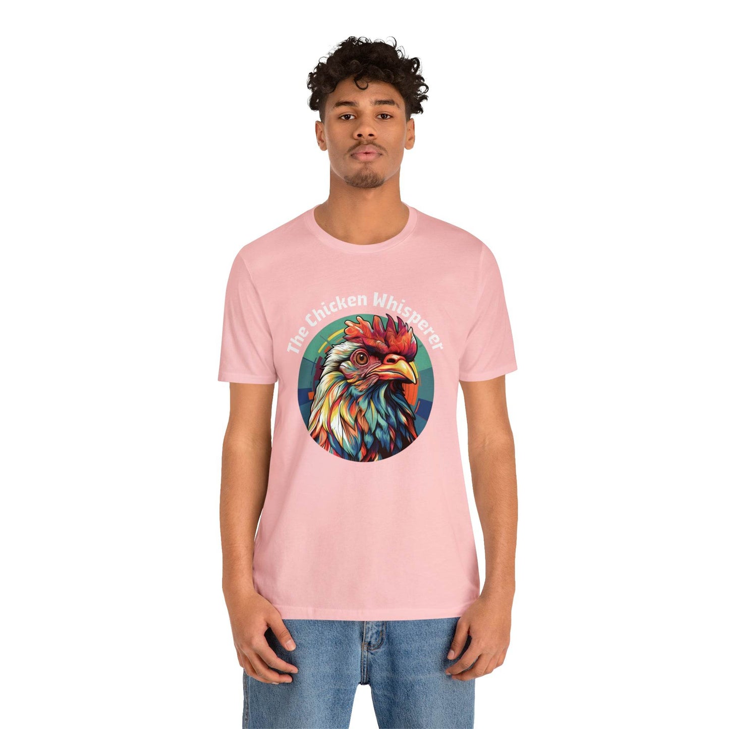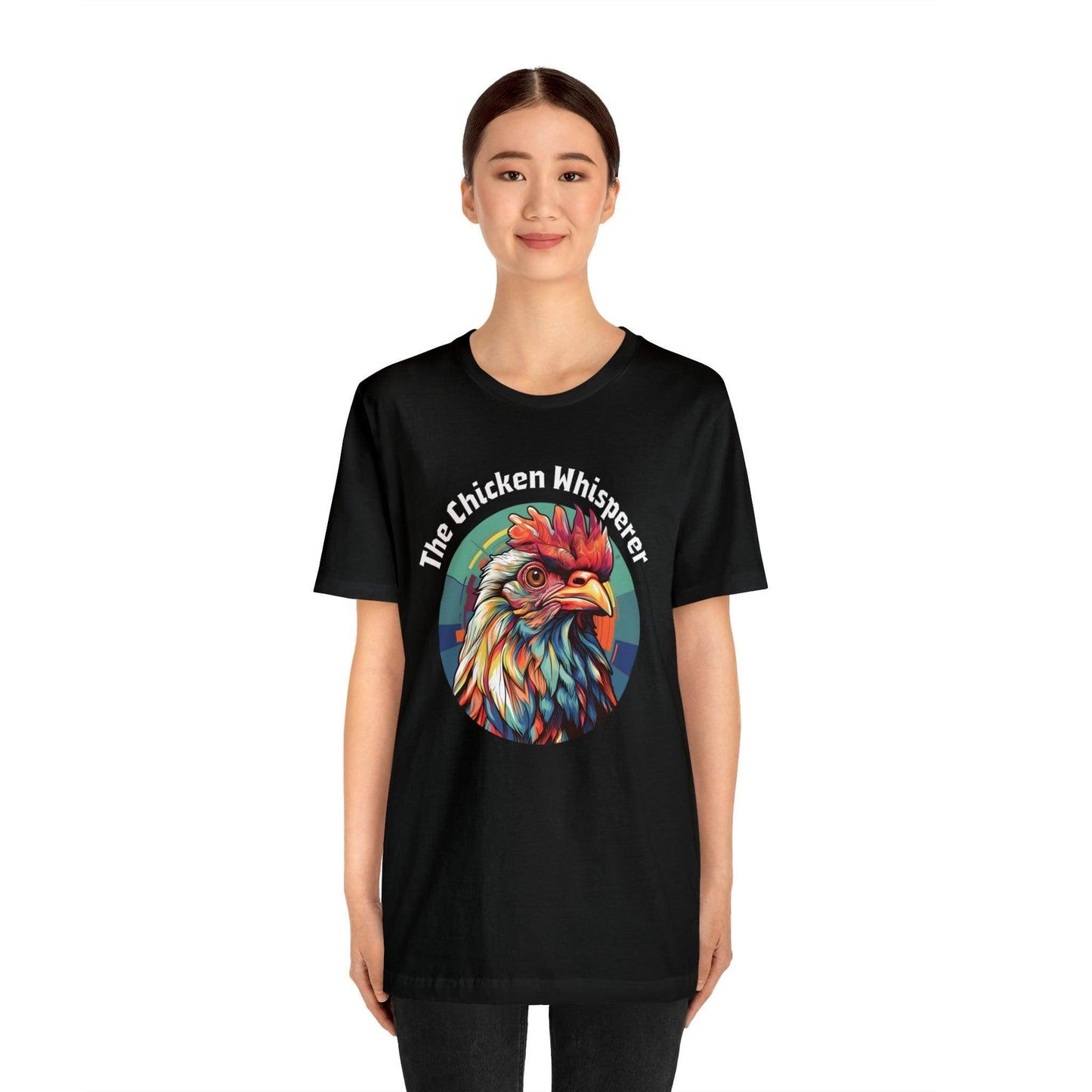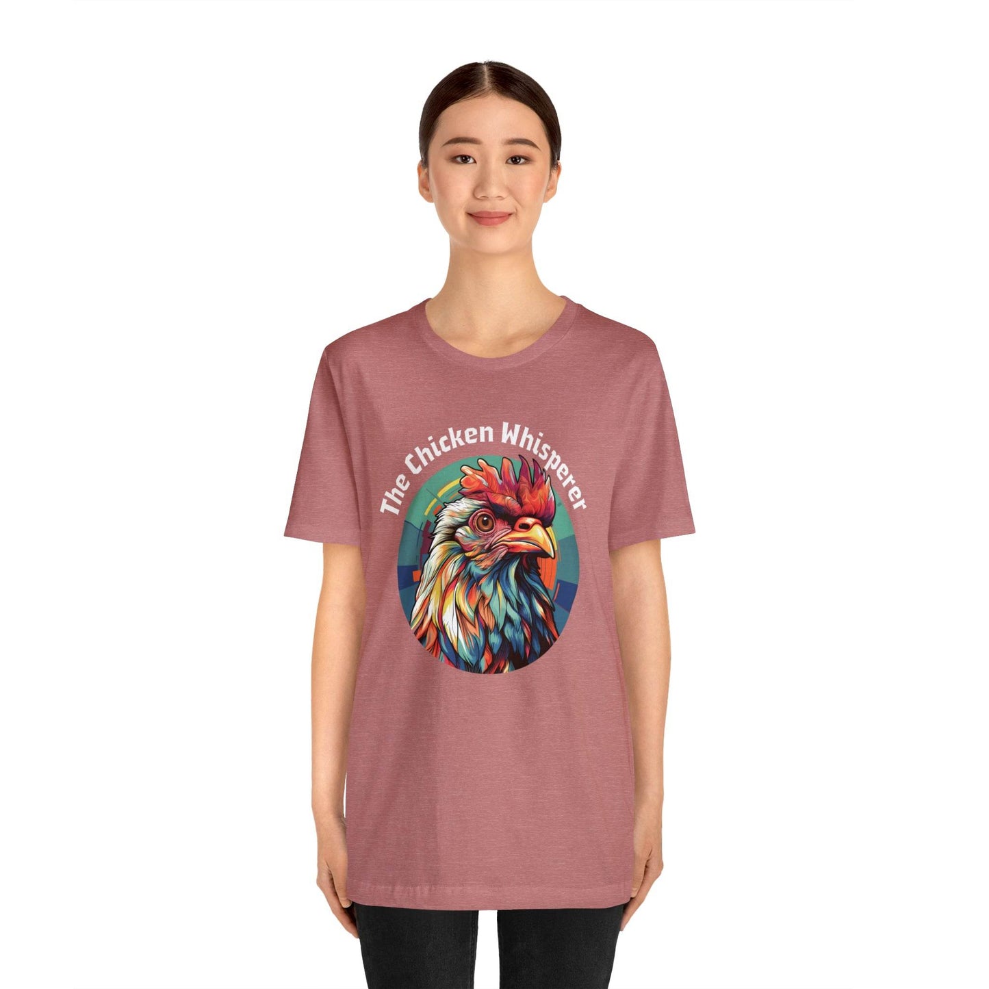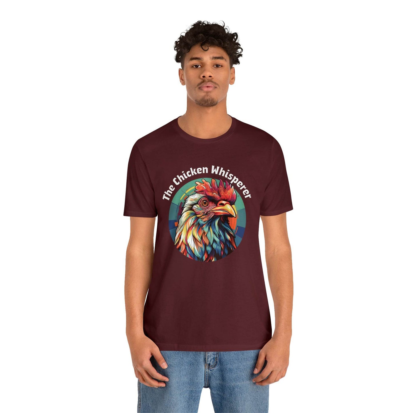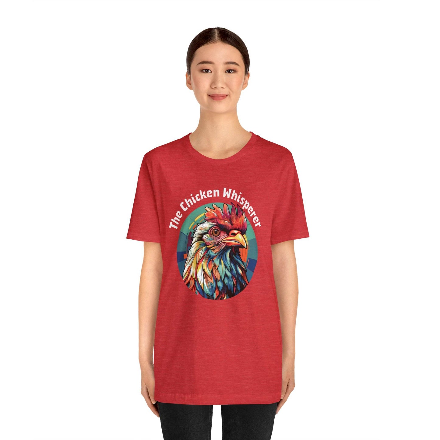 This shirt features a cool, vintage-style illustration of a chicken clucking, along with the text "The Chicken Whisperer". It's made of high-quality, soft cotton and is available in a variety of sizes and colors to fit everyone.