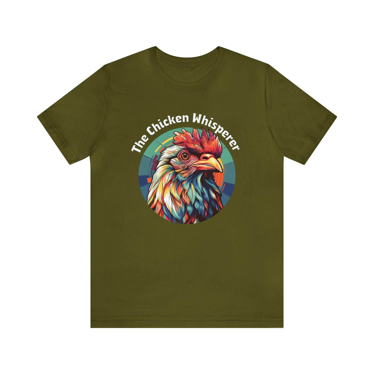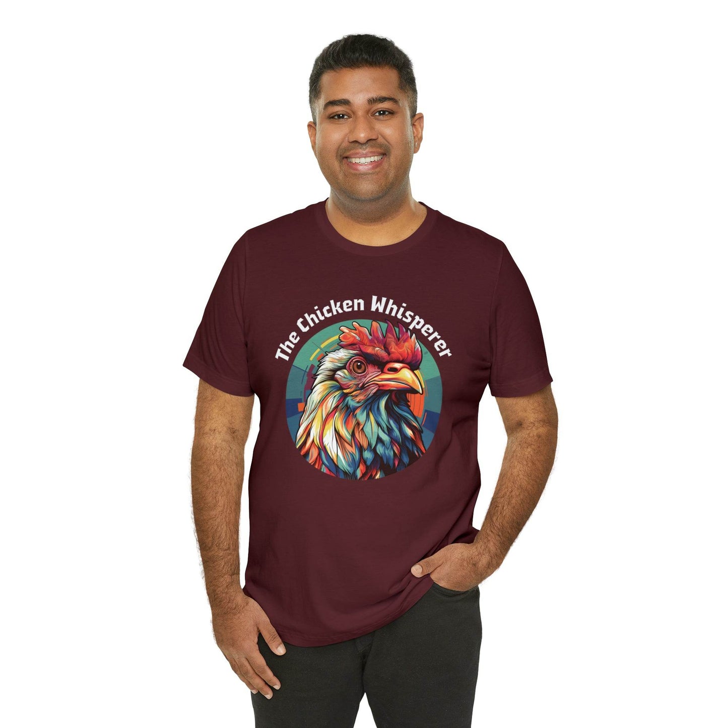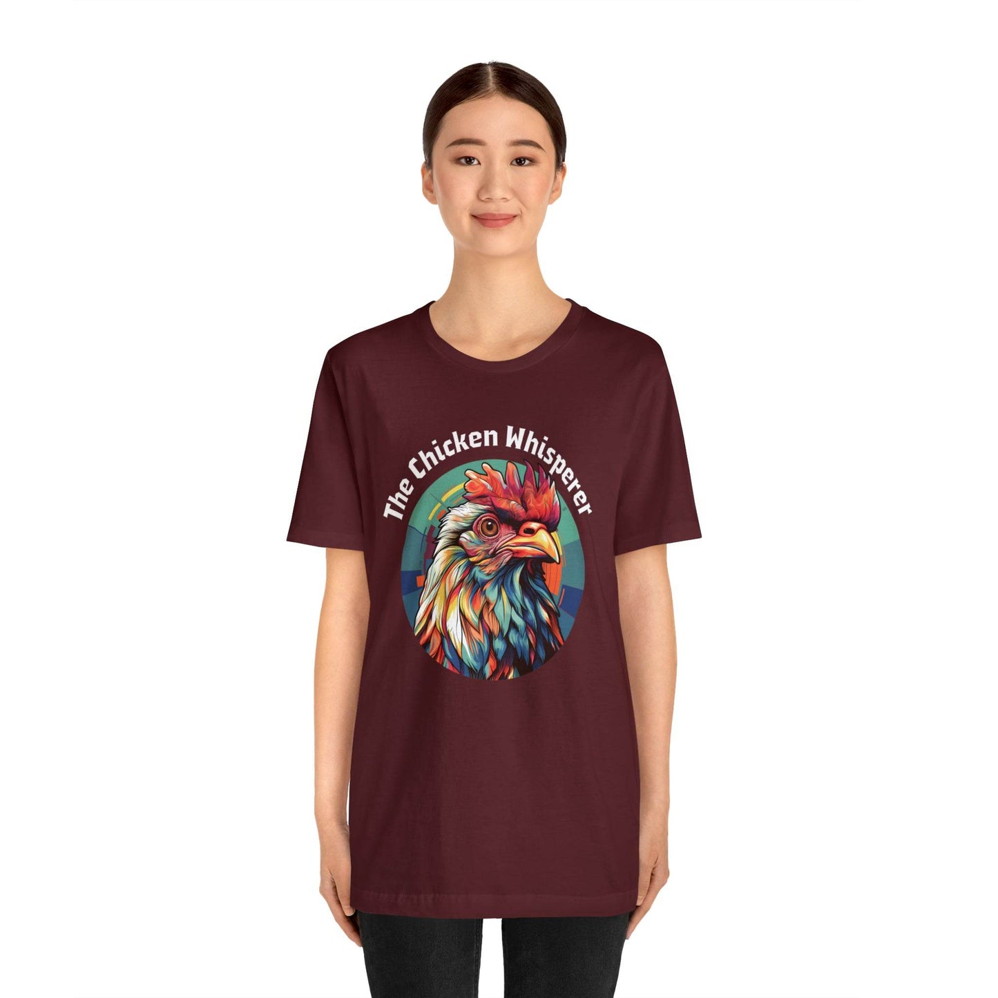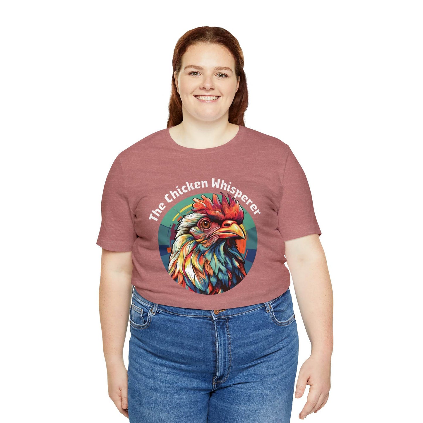 This shirt features a cool, vintage-style illustration of a chicken clucking, along with the text "The Chicken Whisperer". It's made of high-quality, soft cotton and is available in a variety of sizes and colors to fit everyone.