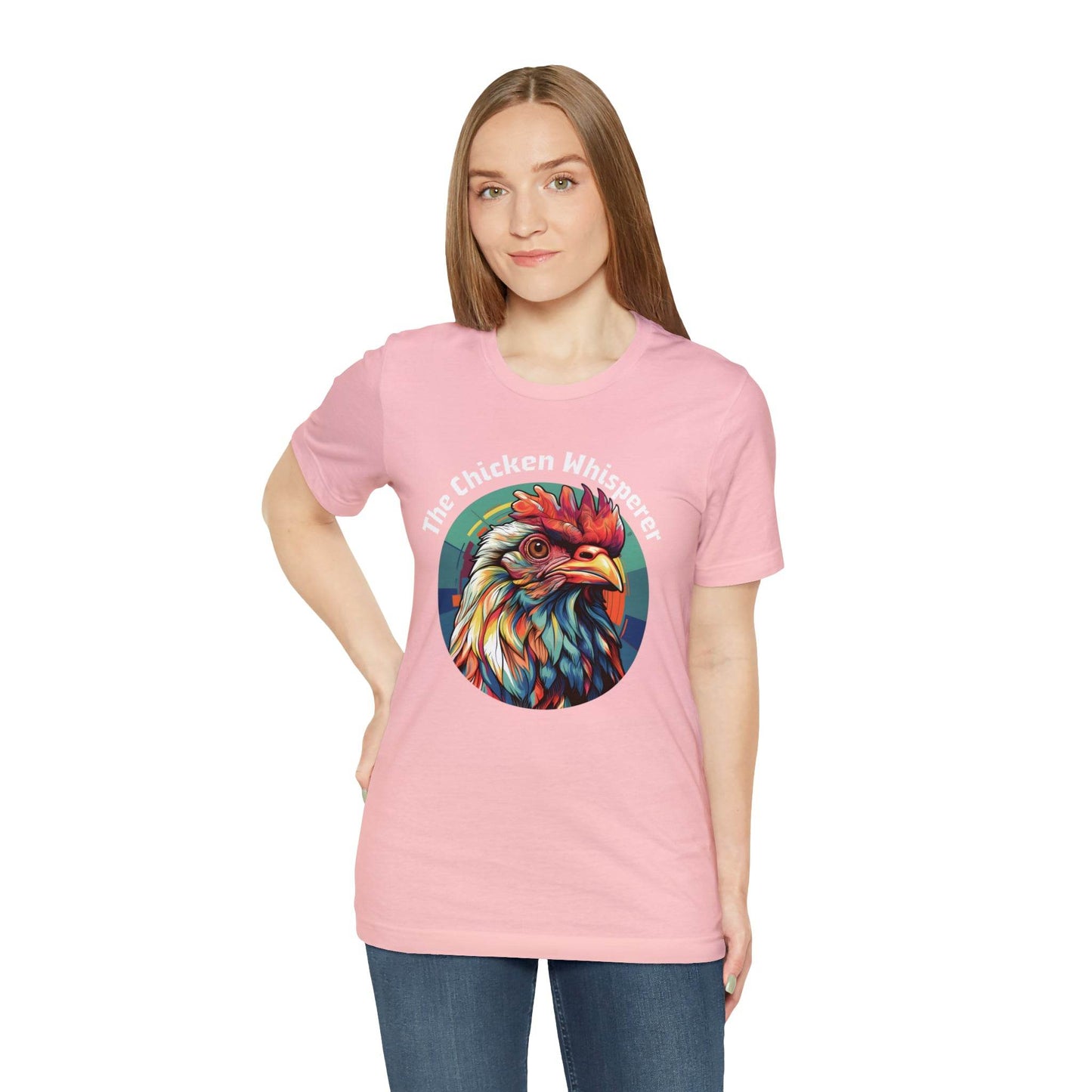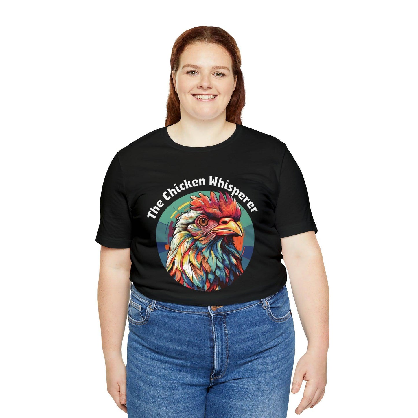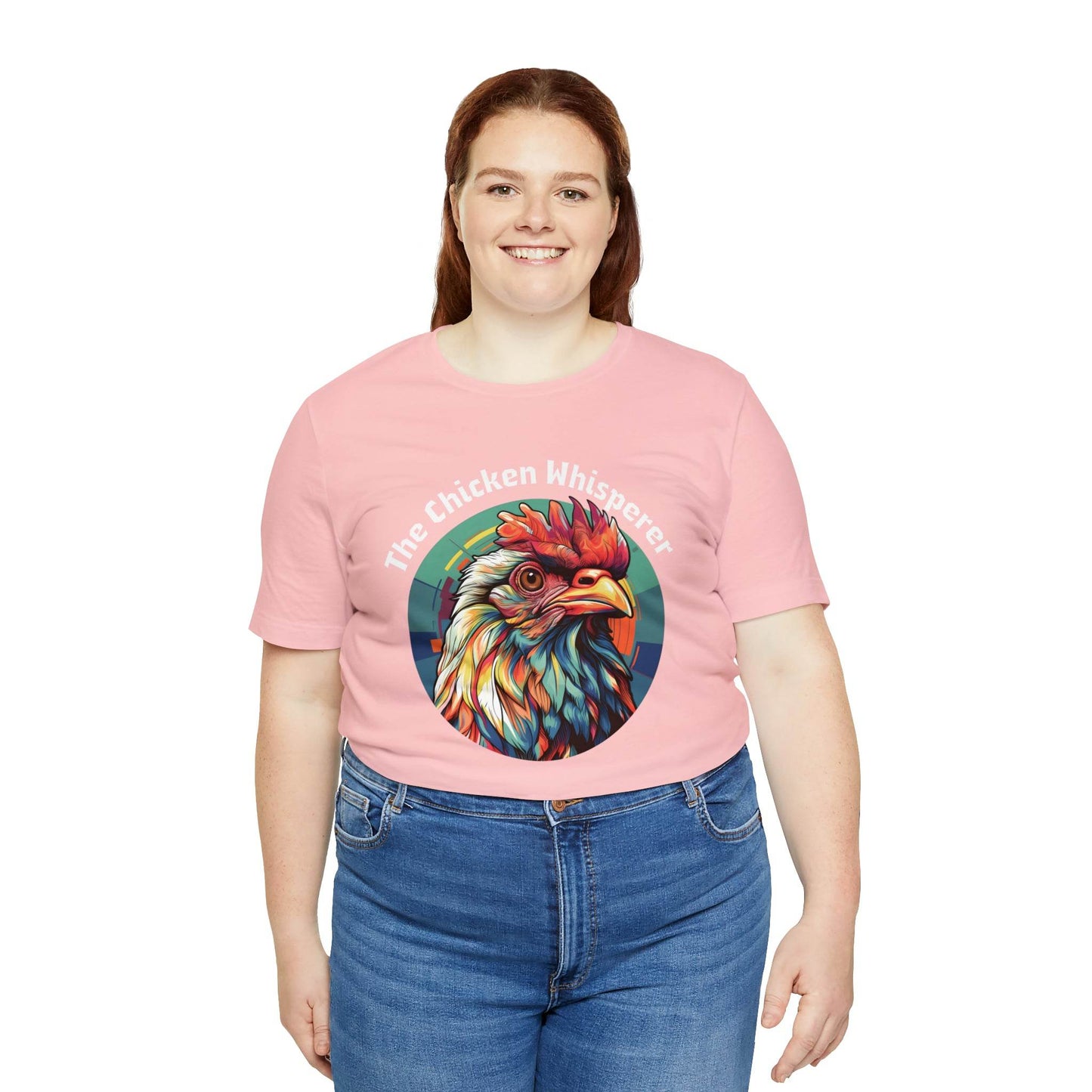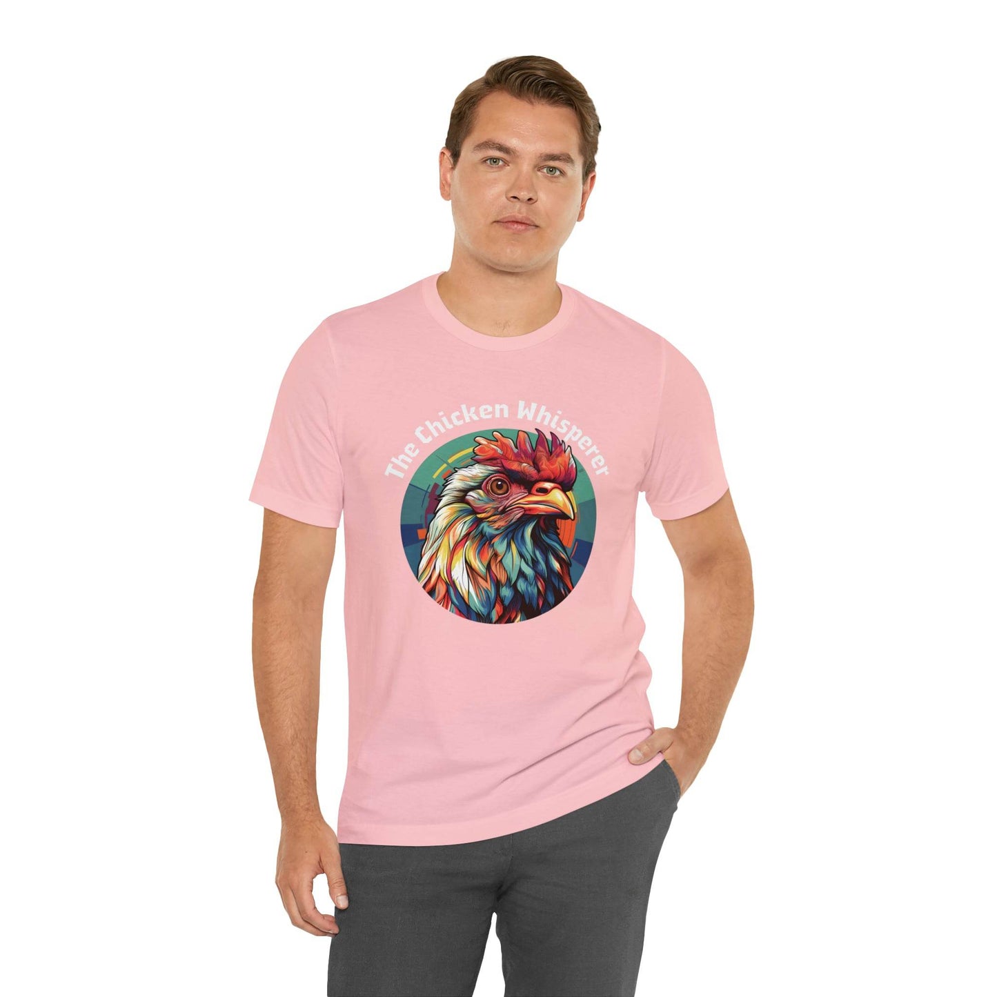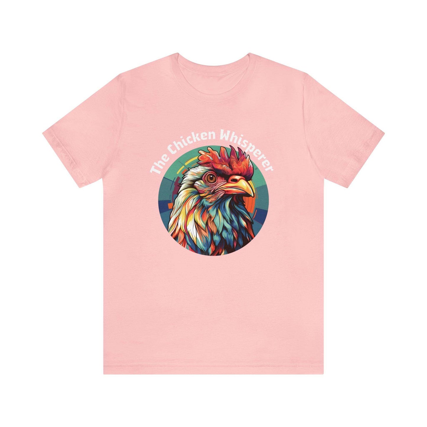 This shirt features a cool, vintage-style illustration of a chicken clucking, along with the text "The Chicken Whisperer". It's made of high-quality, soft cotton and is available in a variety of sizes and colors to fit everyone.