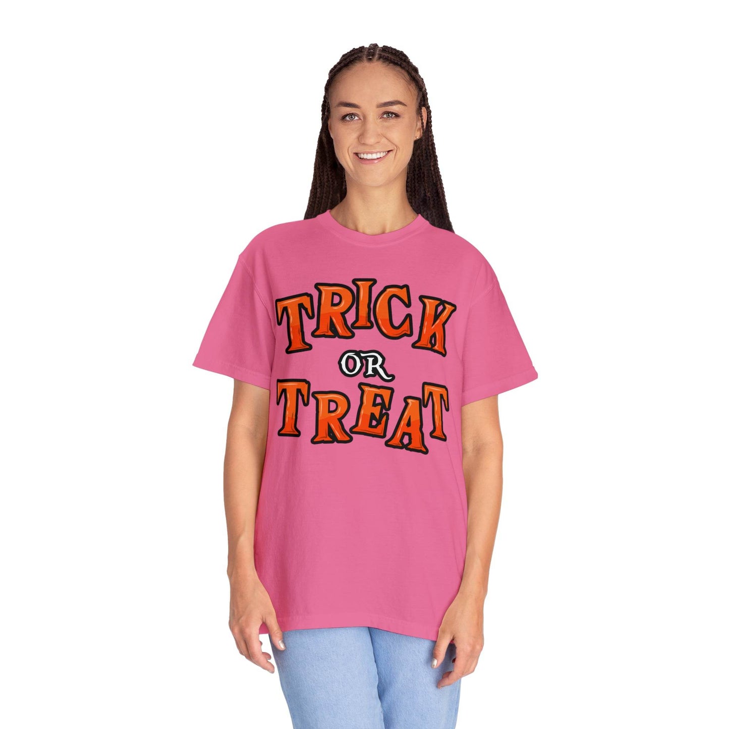Join in the Halloween fun with our Trick or Treat Shirt and embrace the magic of the season. It's the perfect way to celebrate all things spooky and sweet. Get yours today and get ready for a hauntingly good time!