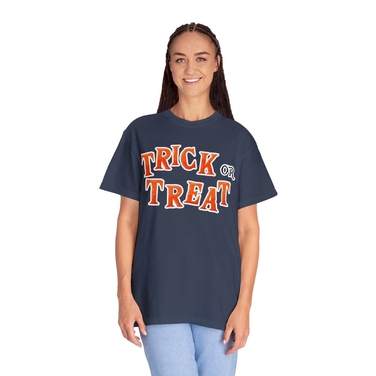 Unveiling our "Trick or Treat Shirt" - the perfect attire to embrace the enchantment of Halloween. Whether you're accompanying little goblins on their candy quest or seeking thrills of your own, this shirt is your passport to the spooky season.