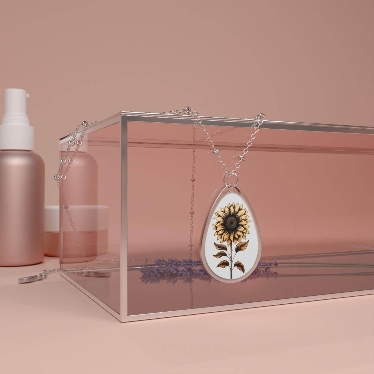 SunFlower Oval Necklace Flower Necklace - Unique Gift For Her Birthday Christmas Flower Necklace Flower Jewelry Nature Jewelry Floral Jewelry